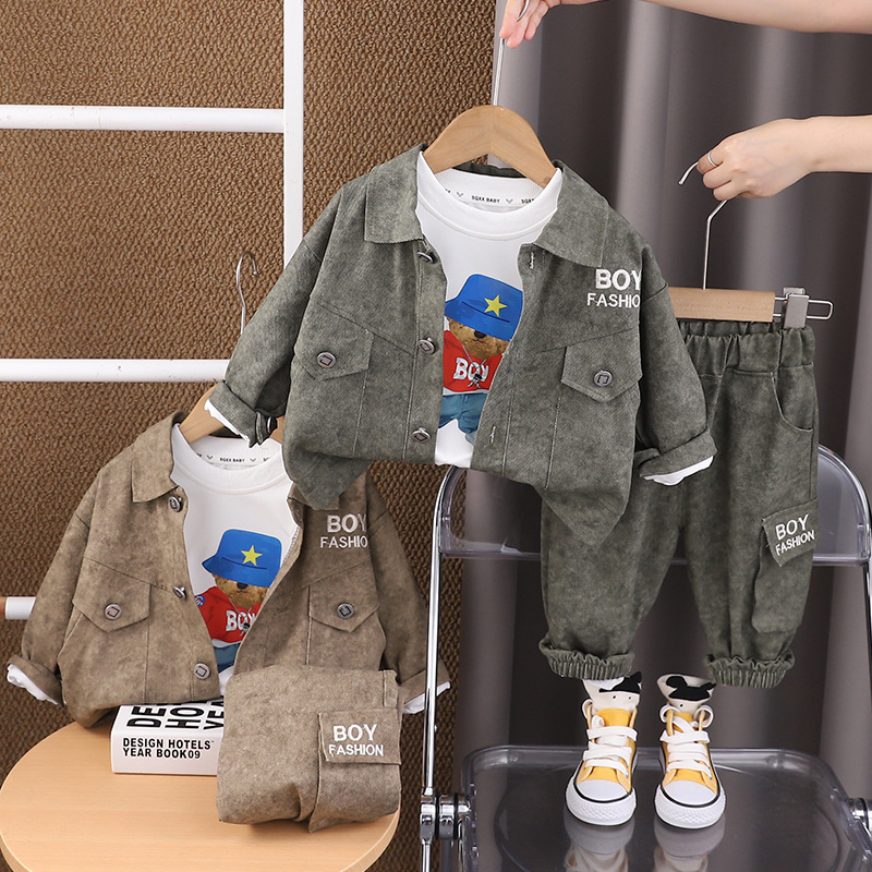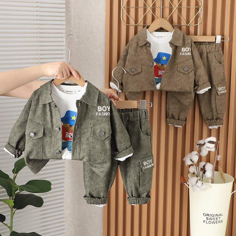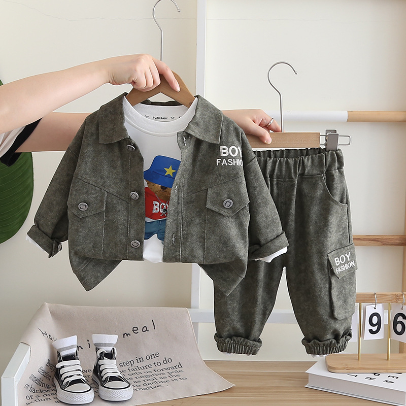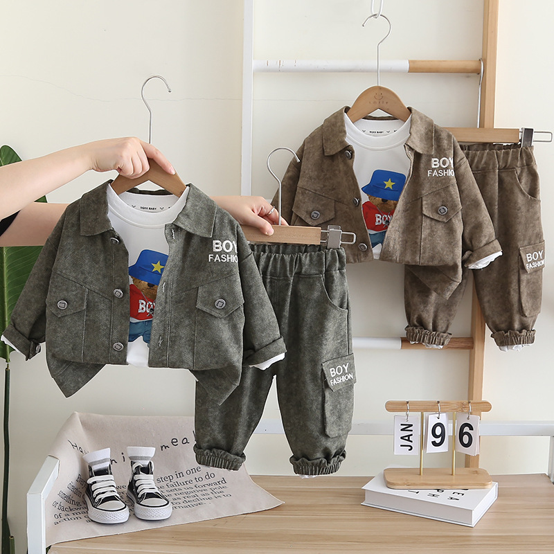 남아 가을 의류, 베이비 캐주얼 슈트, 신생아 봄, 가을 작업복, 긴팔 3종 세트, 트렌디한 순면 아우터웨어스토어 가기