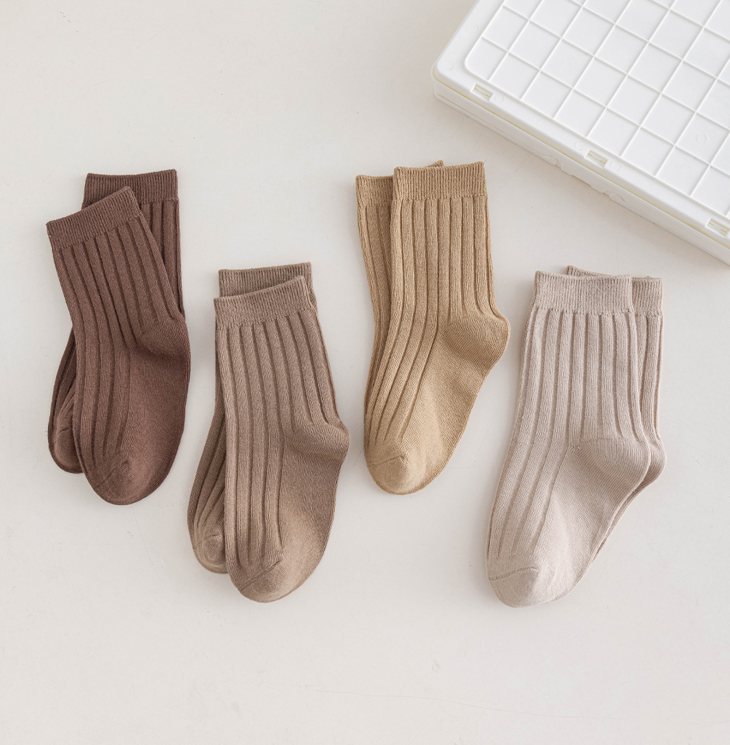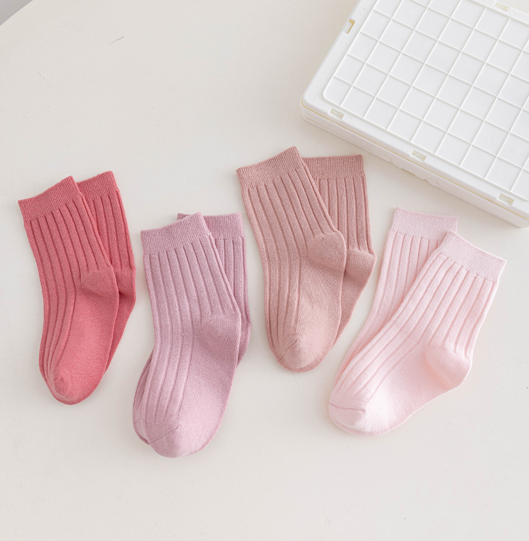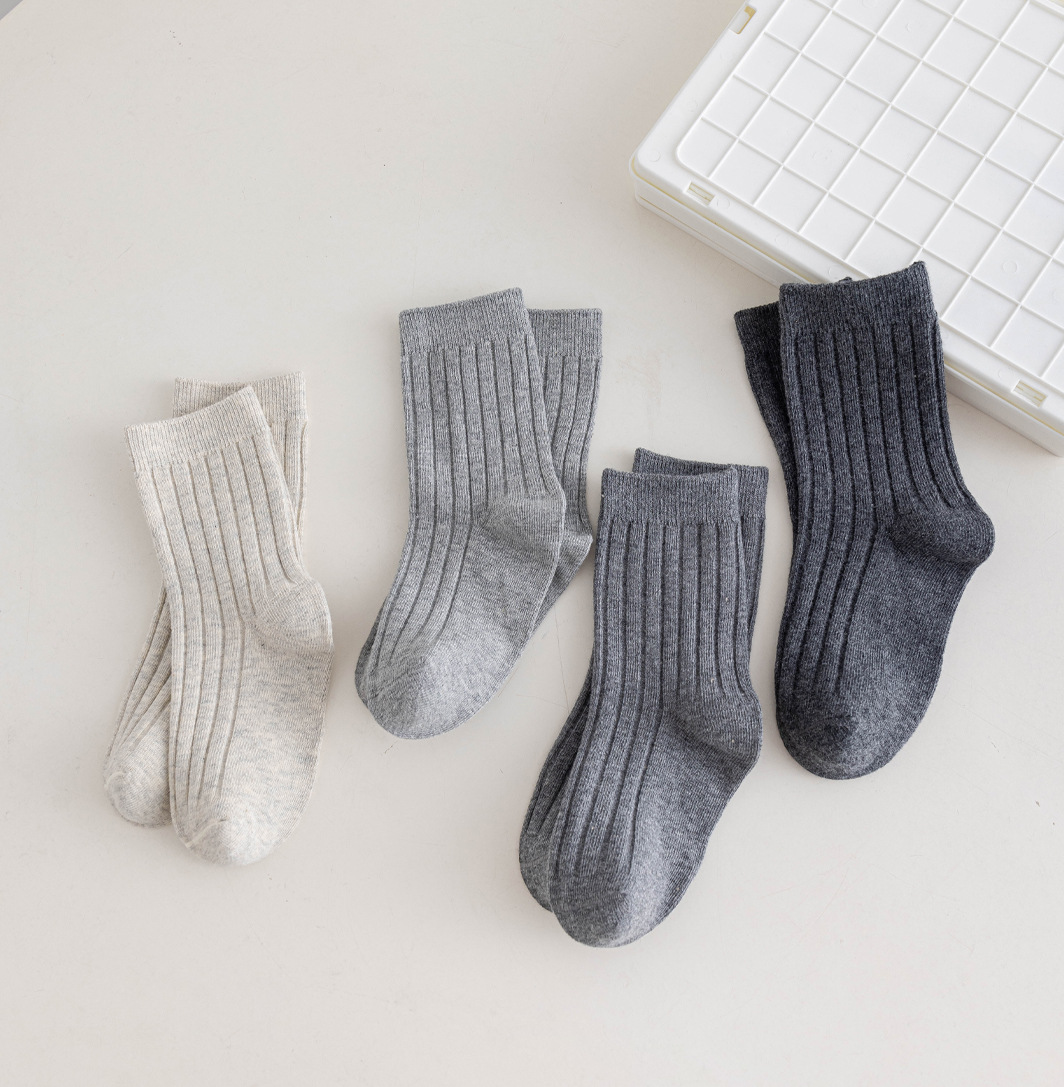 어린이 양말 도매 2024 가을 소년과 소녀 더블 바늘 단색 튜브 양말 학생 작은 흰색 양말 아기면 양말