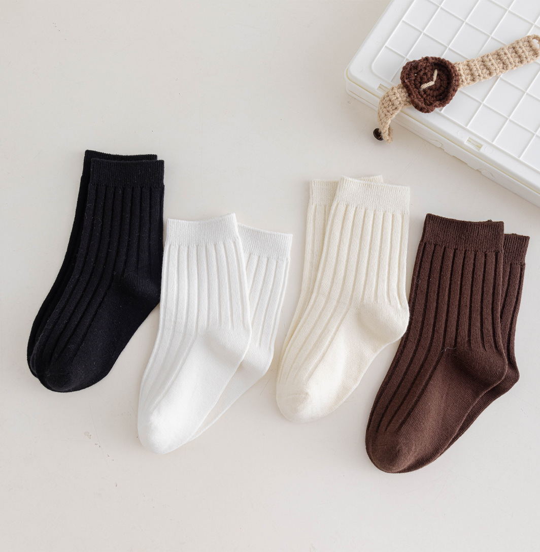 어린이 양말 도매 2024 가을 소년과 소녀 더블 바늘 단색 튜브 양말 학생 작은 흰색 양말 아기면 양말스토어 가기