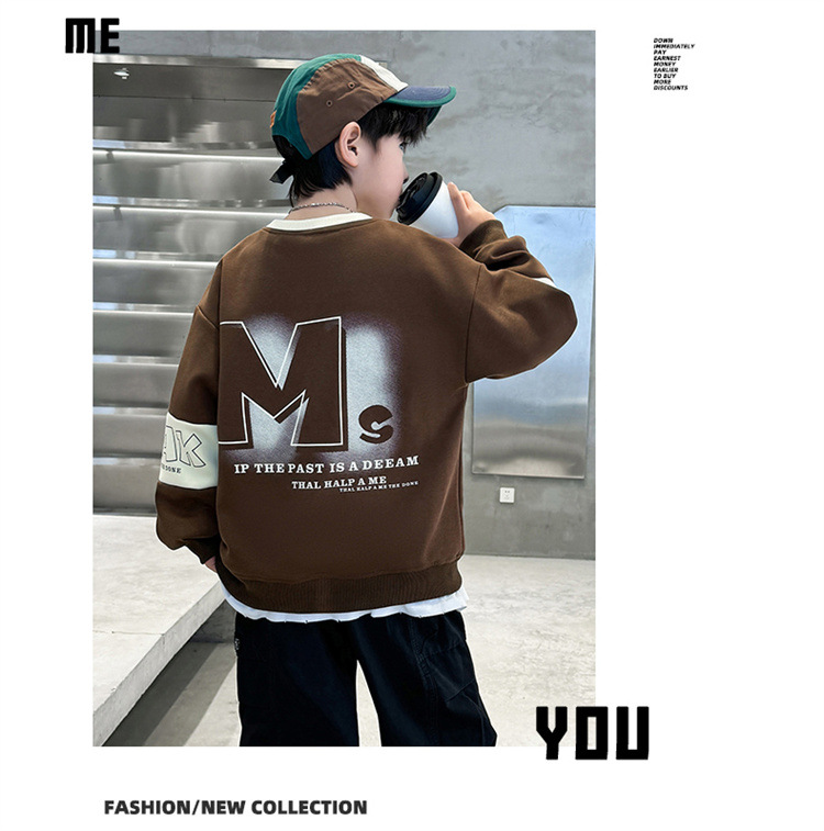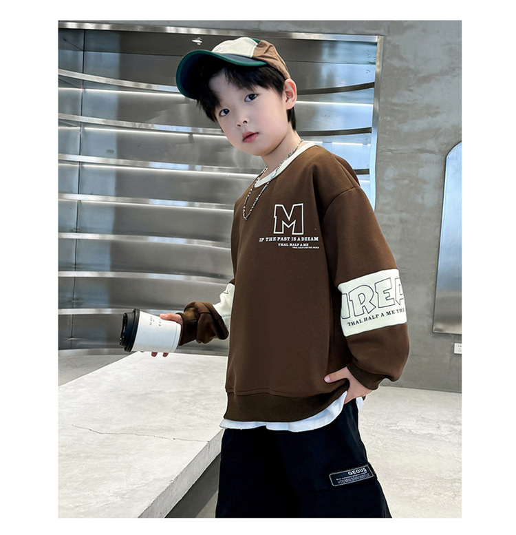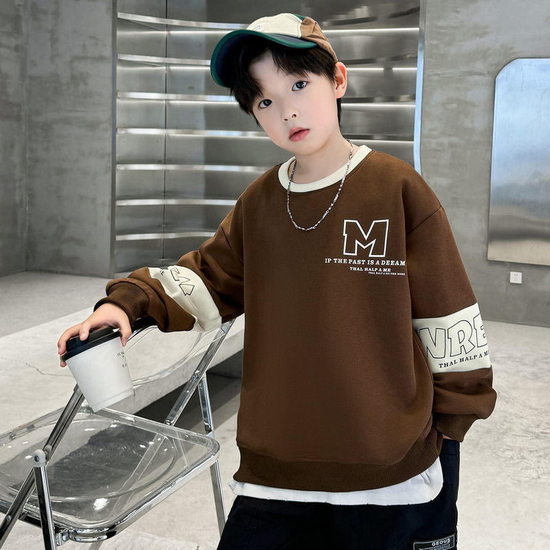 소년 스웨터 봄과 가을 2024 새로운 러피 잘 생긴 튀긴 거리 가을 옷 큰 어린이 옷 가을 소년 코트 조수스토어 가기