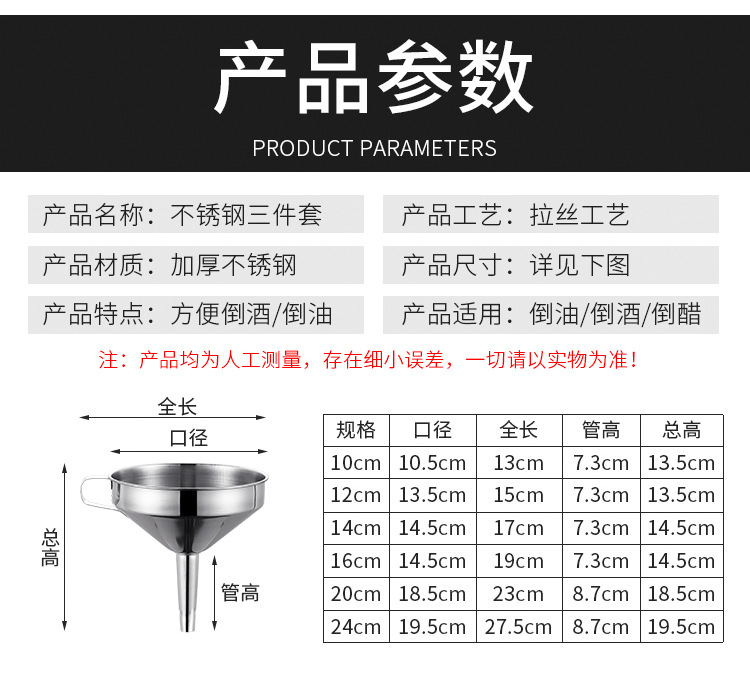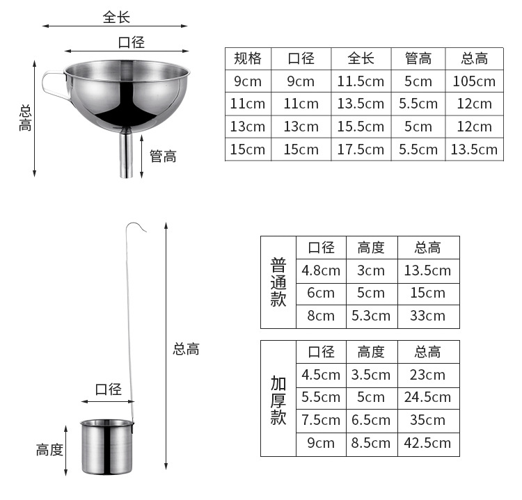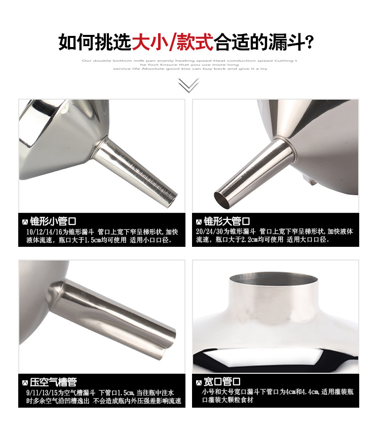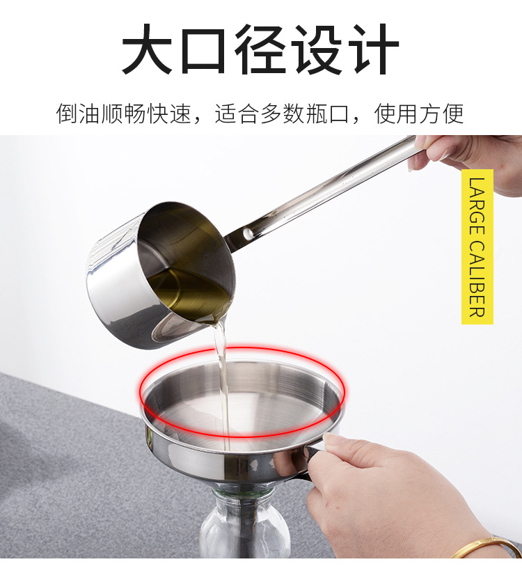 대형 스테인레스 스틸 깔때기 주방 서브 포장 도구 오일 누출 모래 시계 콘센트 두꺼운 필터 비 자기 소형