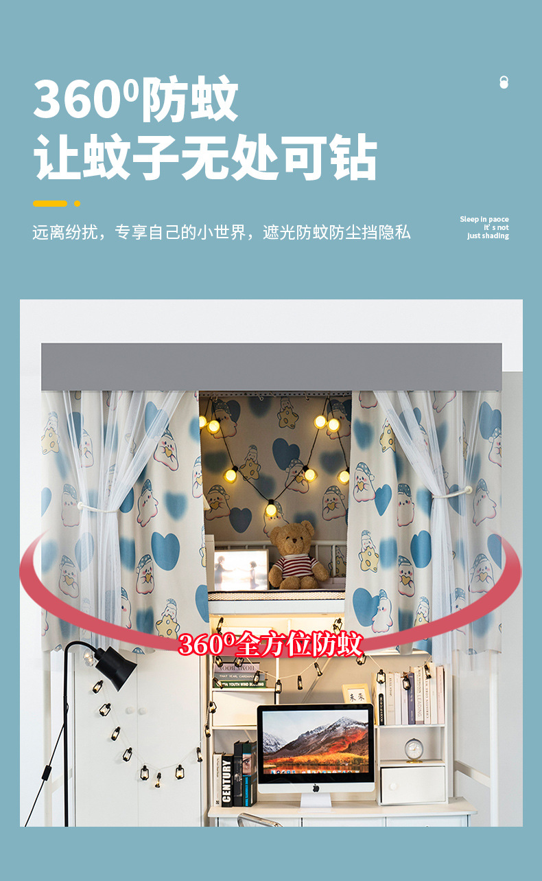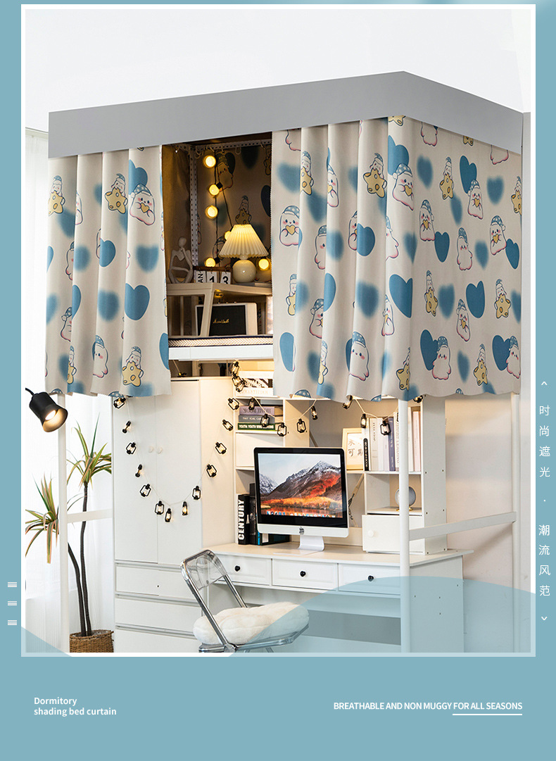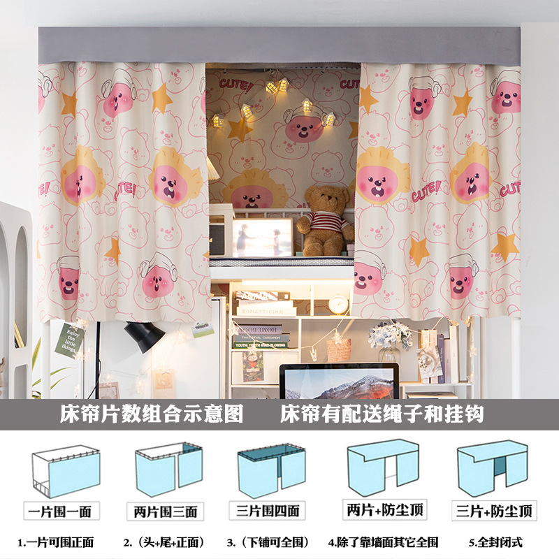 물리적 인 강한 음영 침대 커튼 학생 기숙사 상부 벙크 하부 벙크 침대 클로징 천 여성 기숙사 만화 음영 커튼 커튼스토어 가기