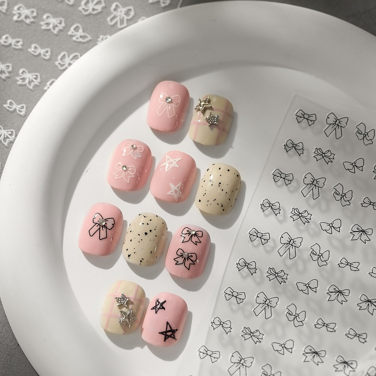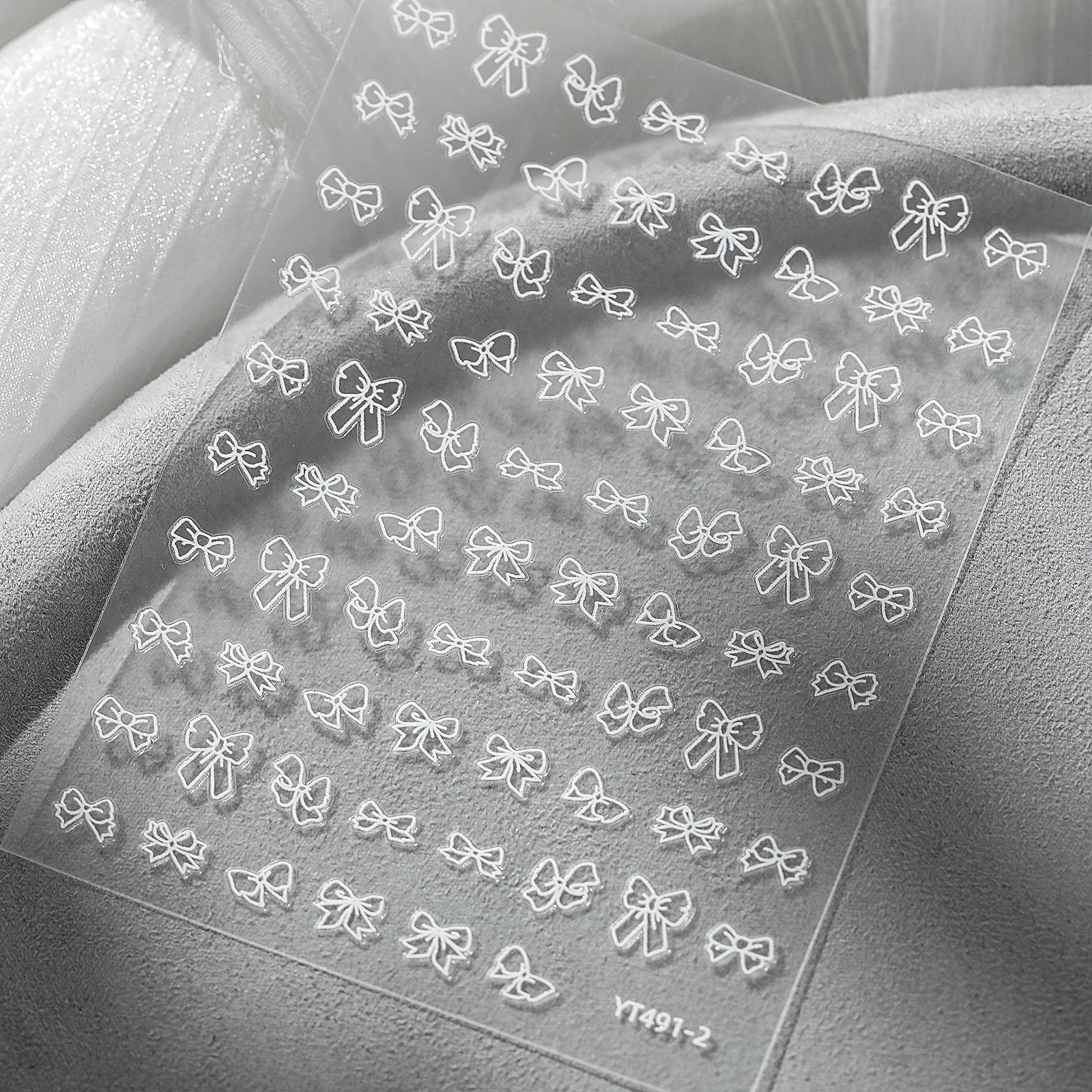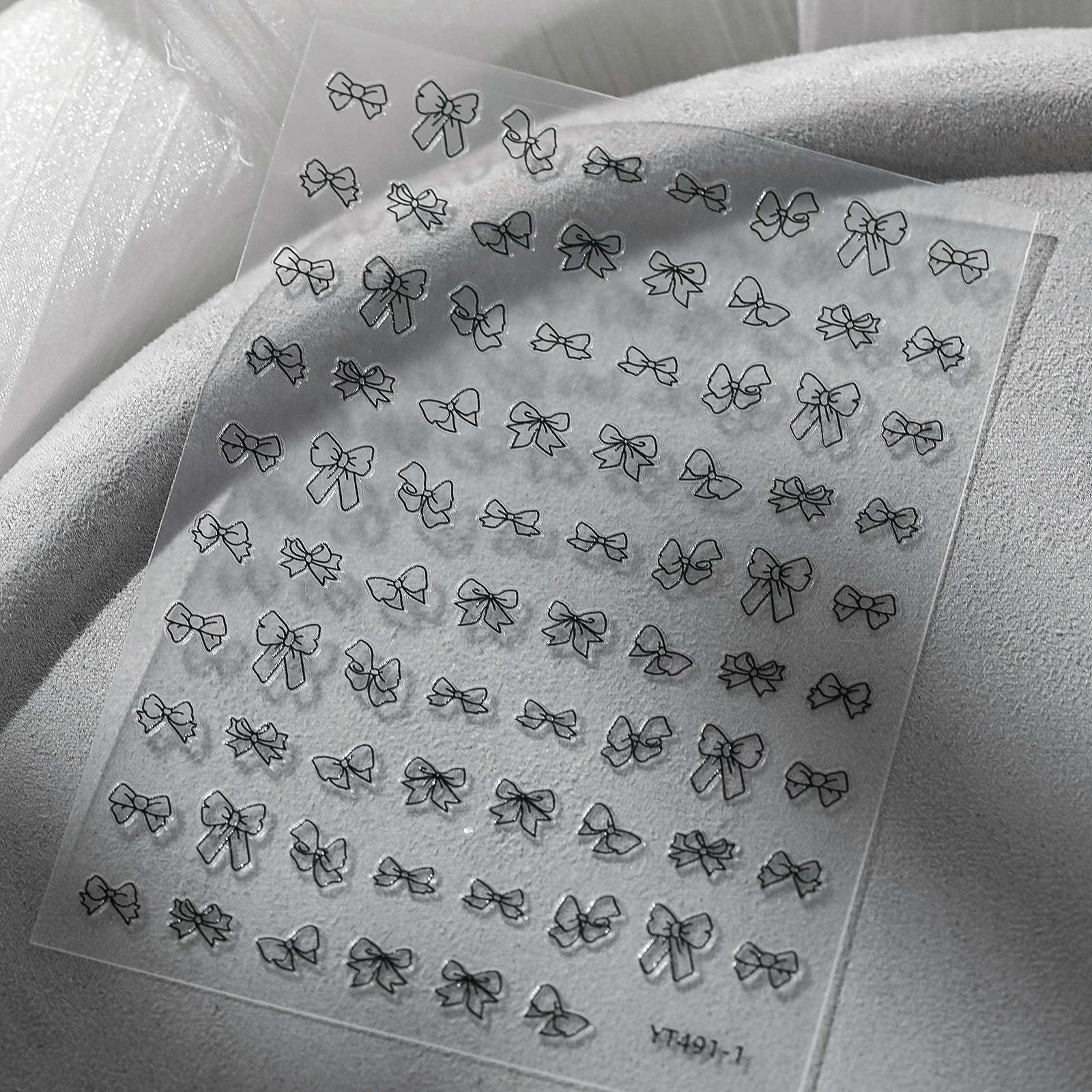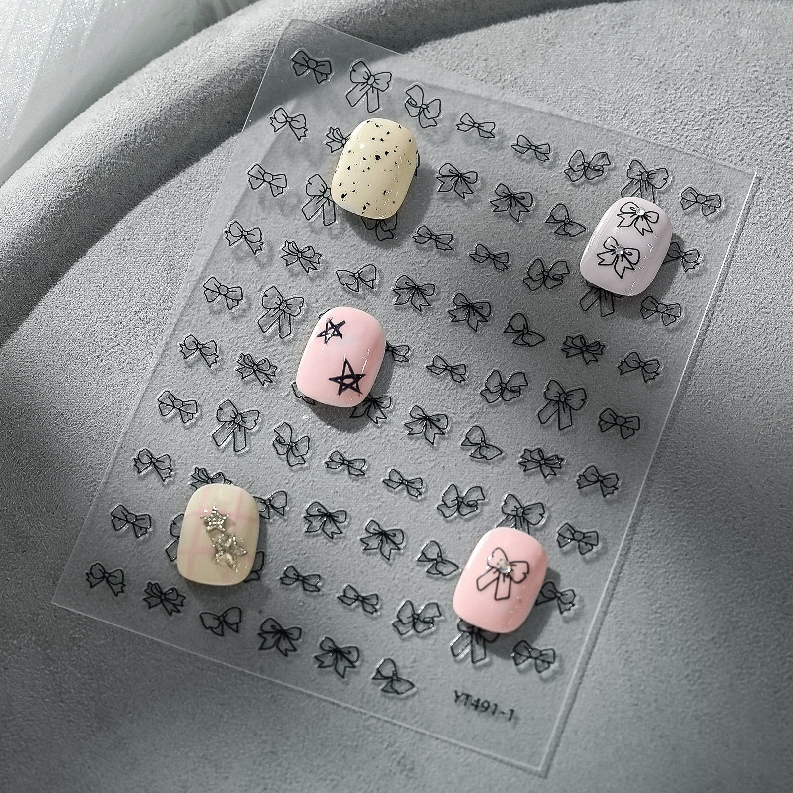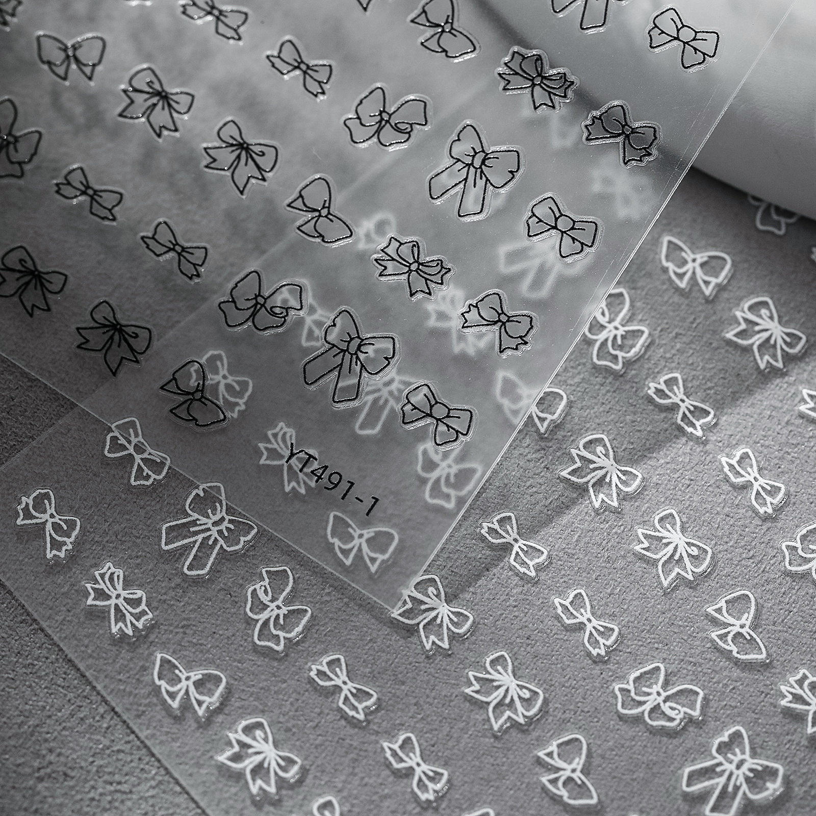 개미 그림 YITU 새로운 라인 흑백 활 네일 아트 스티커 패브릭 리본 시리즈 활 스티커 YT491