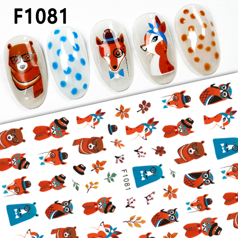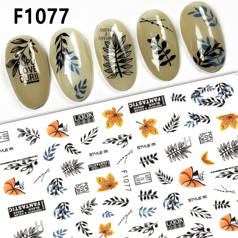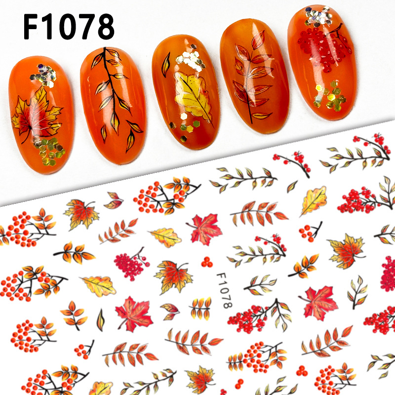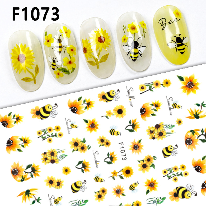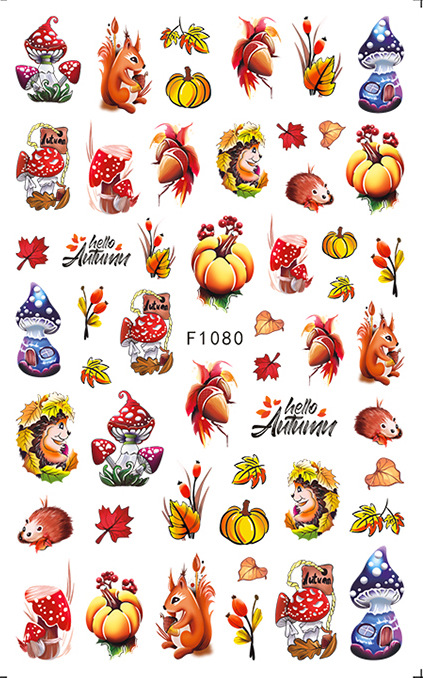 2024 국경 네일 아트 새로운 스티커 가을 시리즈 해바라기 꿀벌 컬러 나비 곤충 메이플 다람쥐 등