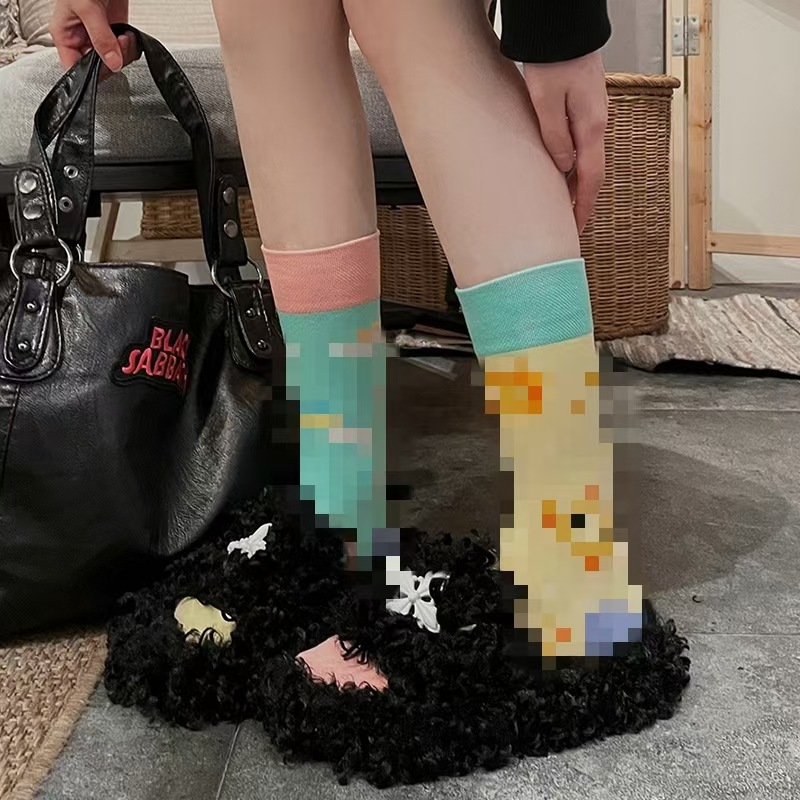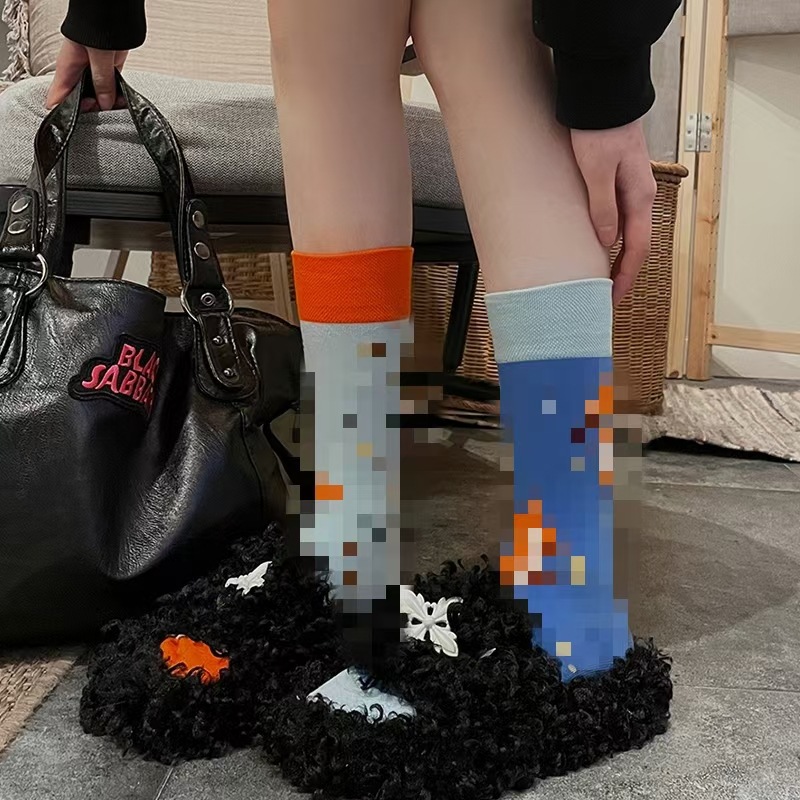 여름 얇은 AB 비대칭 중간 튜브 양말 양말 맞춤형 창조적 인 인터넷-유명한 만다린 오리 양말스토어 가기