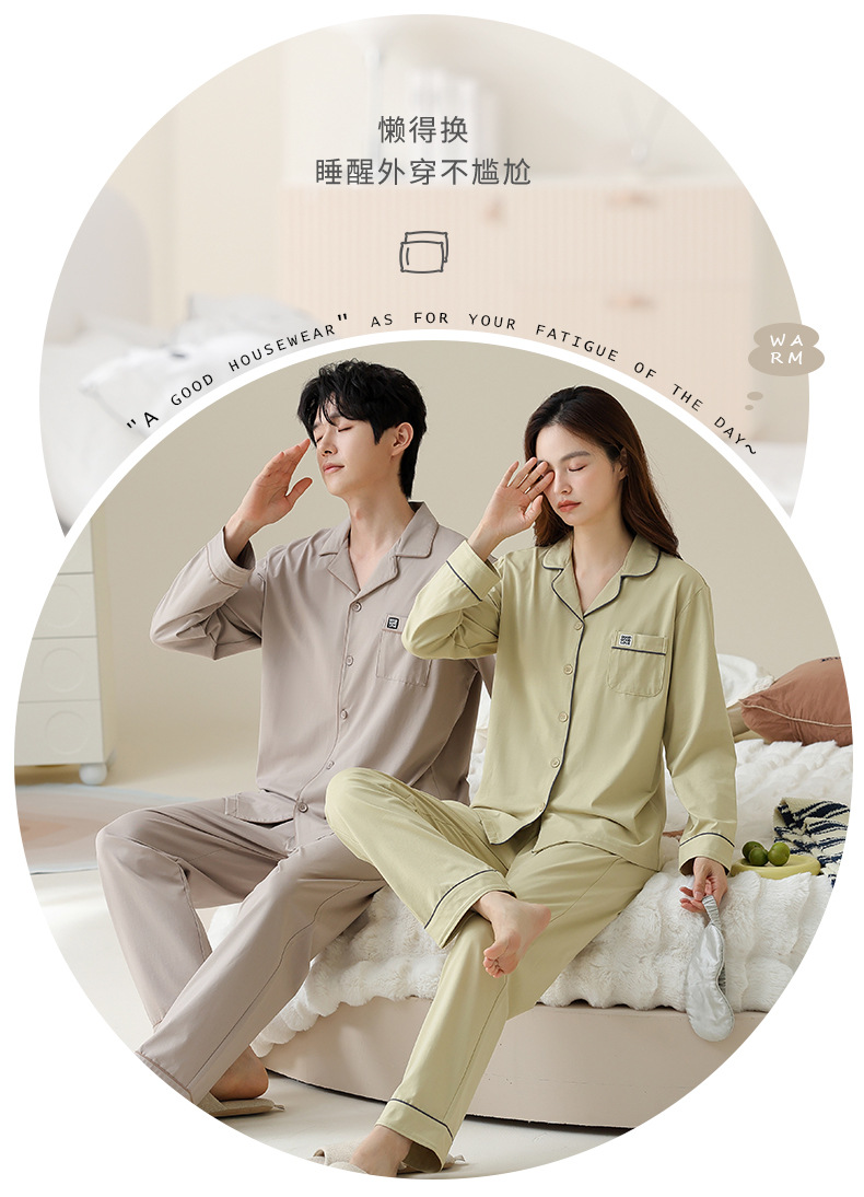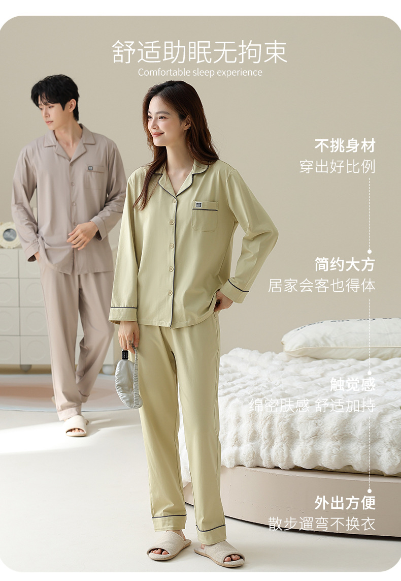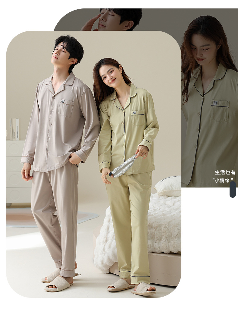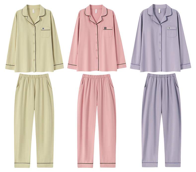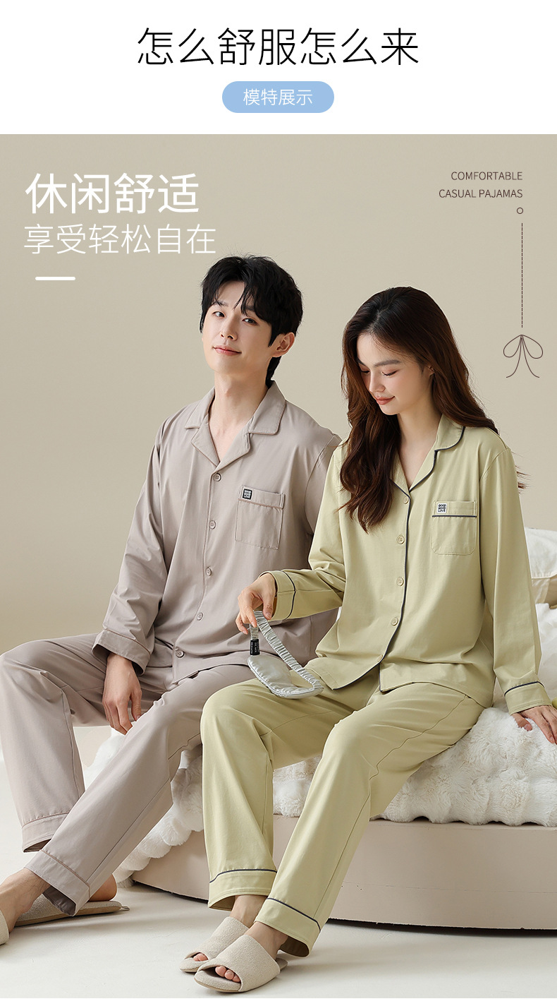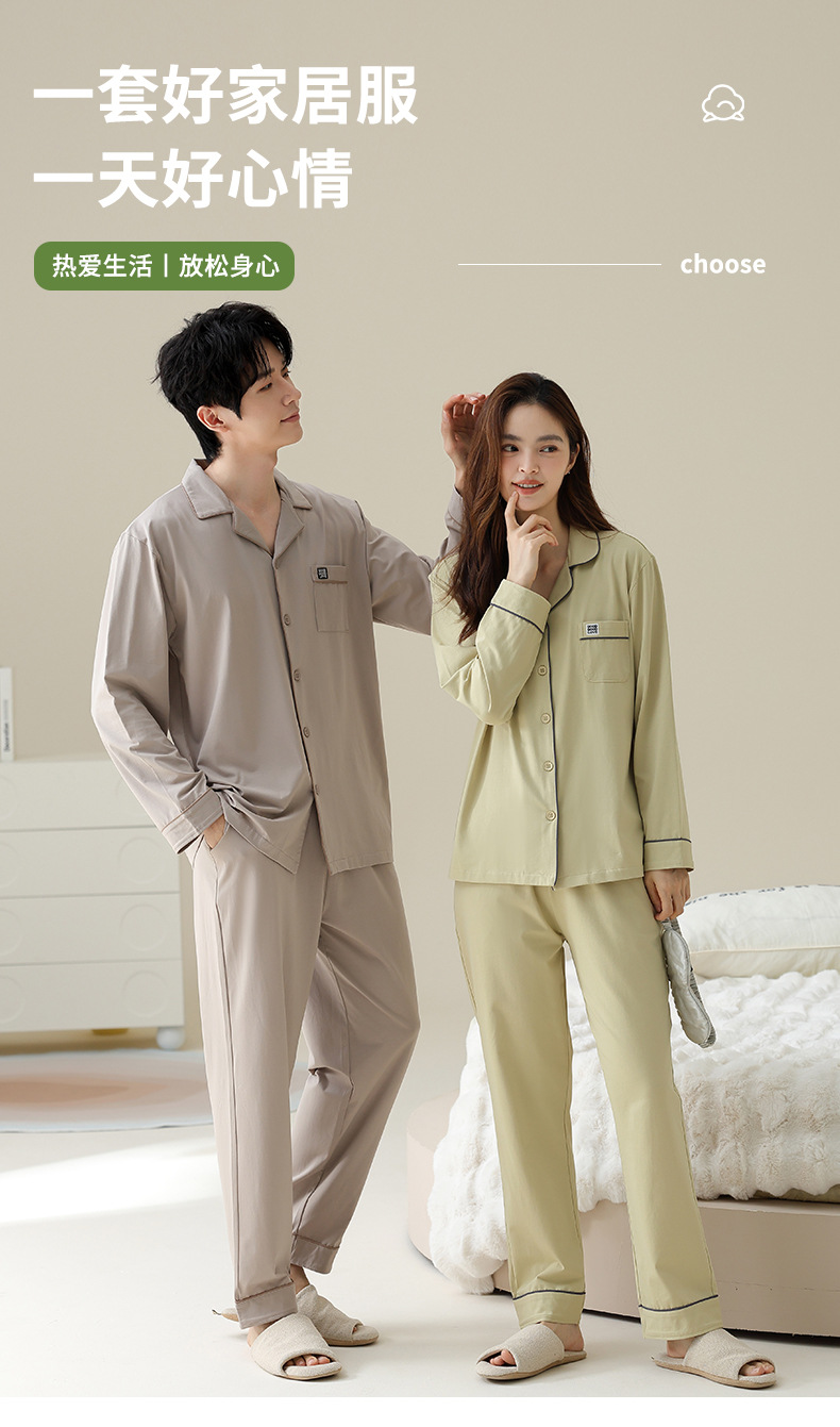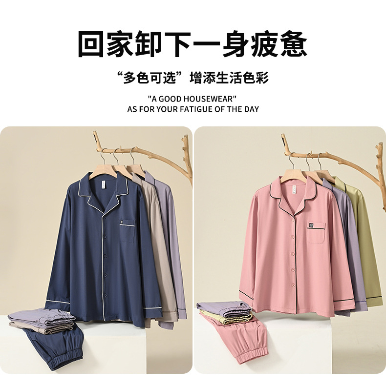 물롱 가족 커플 파자마 가을과 겨울 라이크라 코튼 긴팔 새 남자와 여자의 간단한 캐주얼 순면 홈 옷스토어 가기