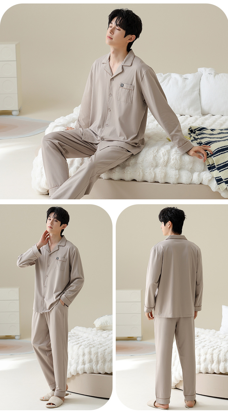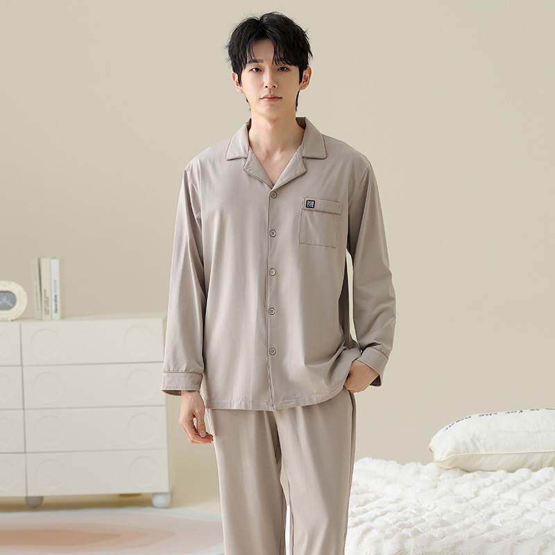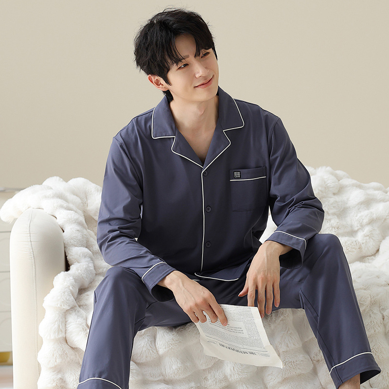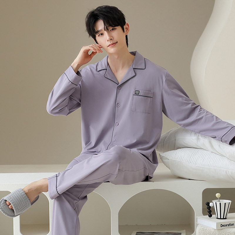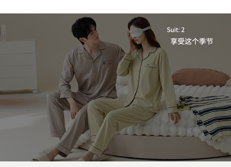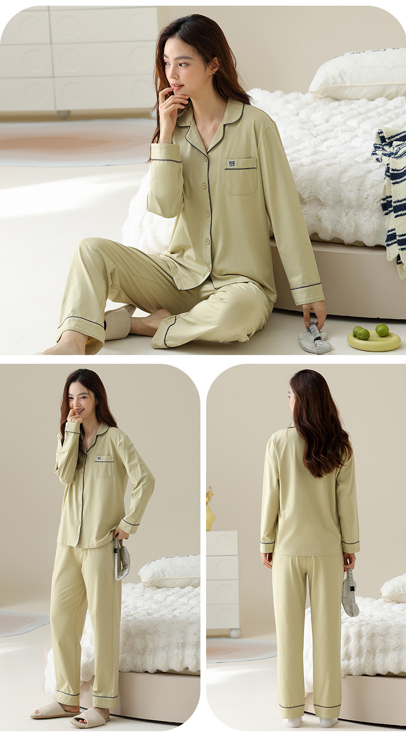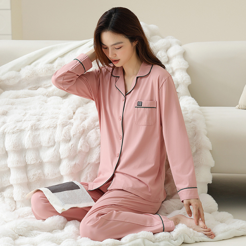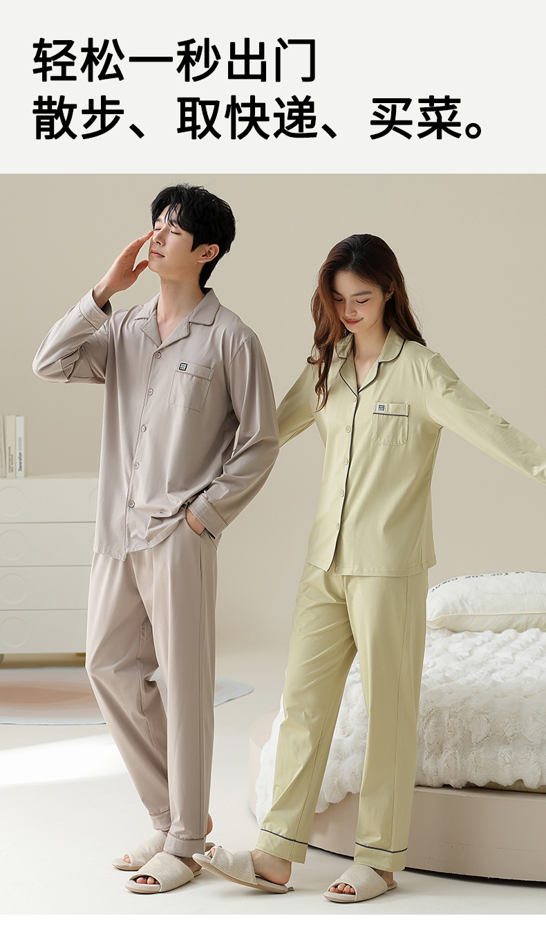 물롱 가족 커플 파자마 가을과 겨울 라이크라 코튼 긴팔 새 남자와 여자의 간단한 캐주얼 순면 홈 옷스토어 가기