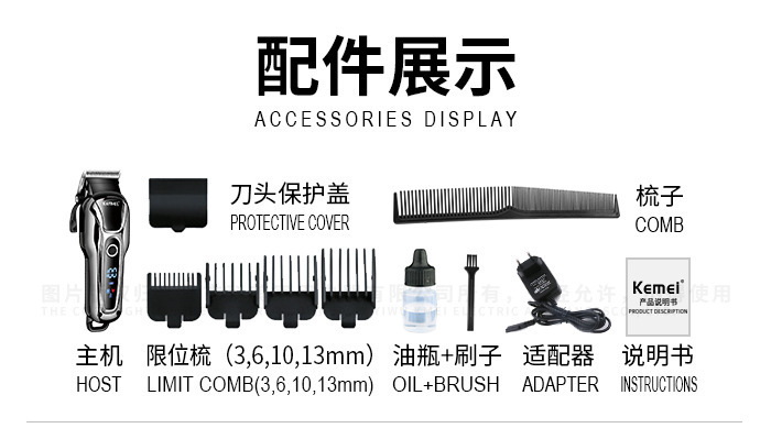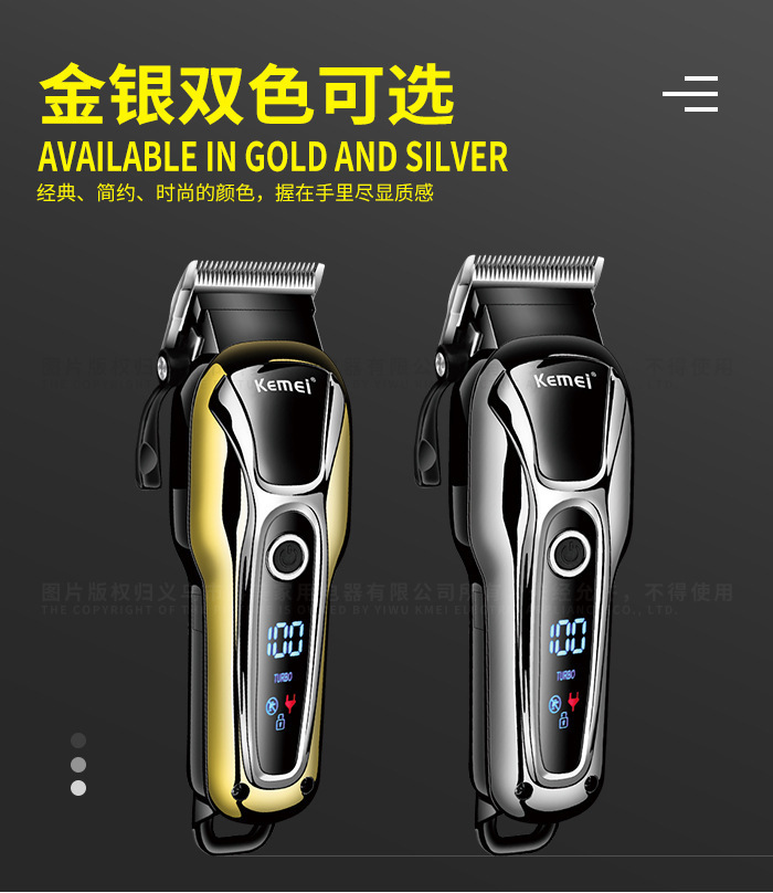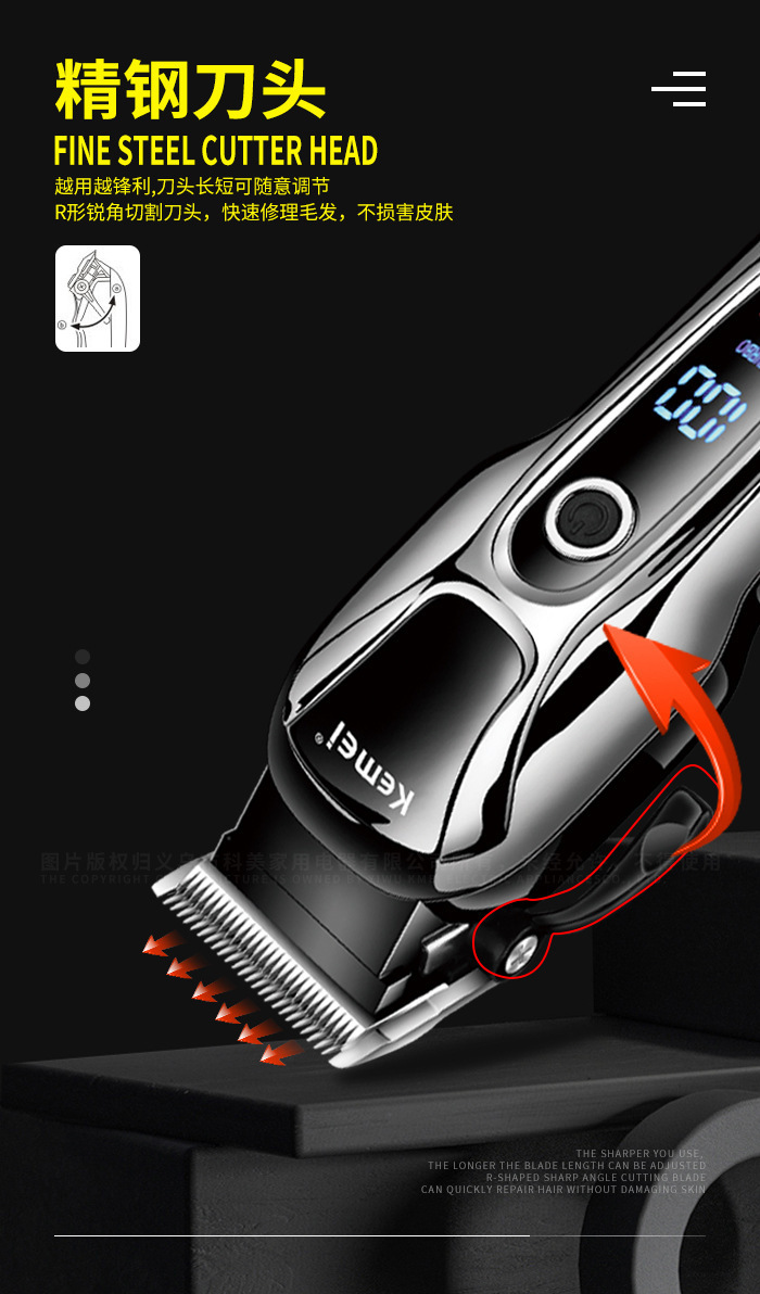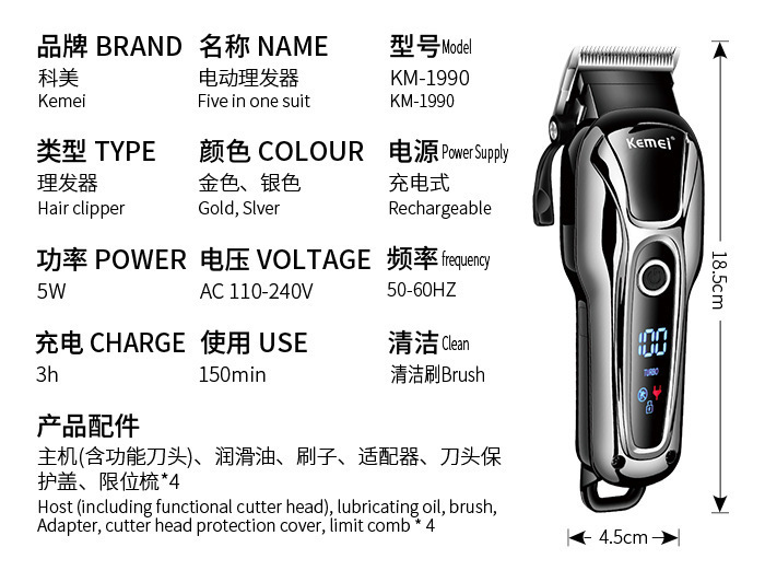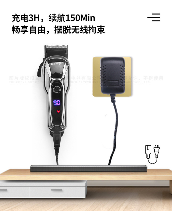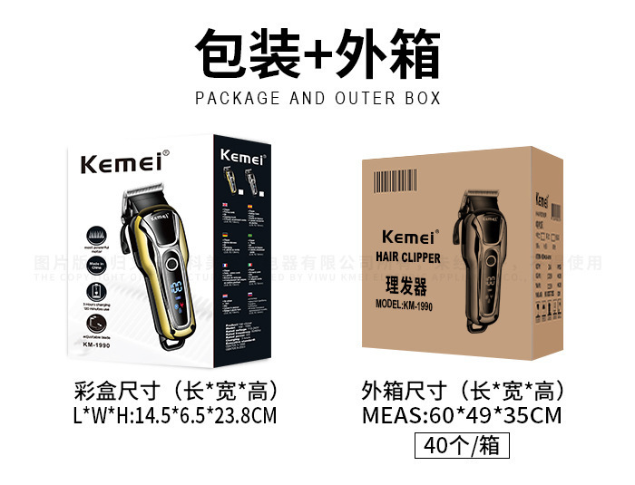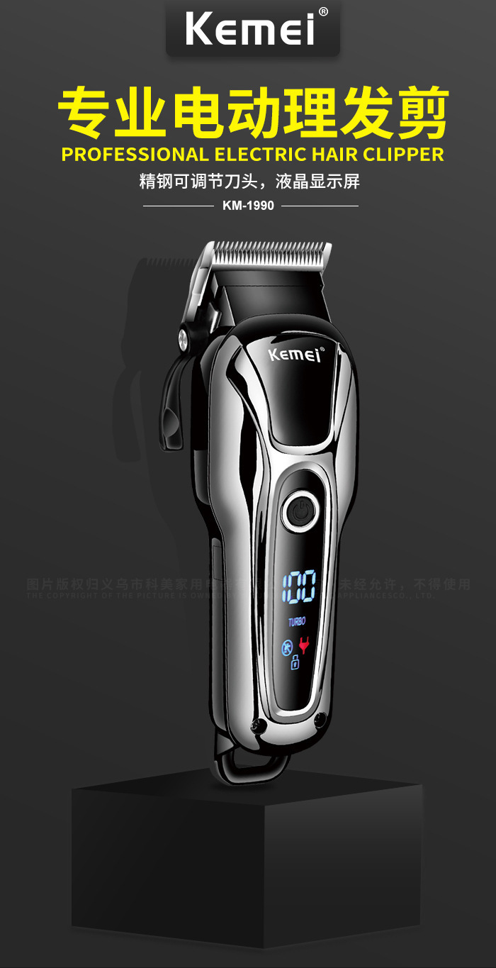 Kemei 고출력 헤어 클리퍼 전기 면도 헤드 KM-1990 LCD 디지털 디스플레이 전기 헤어 클리퍼 헤어 클리퍼의 업그레이드 버전
