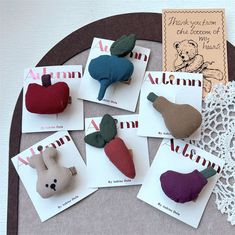 귀여운 빈티지 코튼 당근 야채 과일 헤어핀 어린이 뱅 클립 덕빌 클립 걸스 사이드 클립 헤어핀스토어 가기