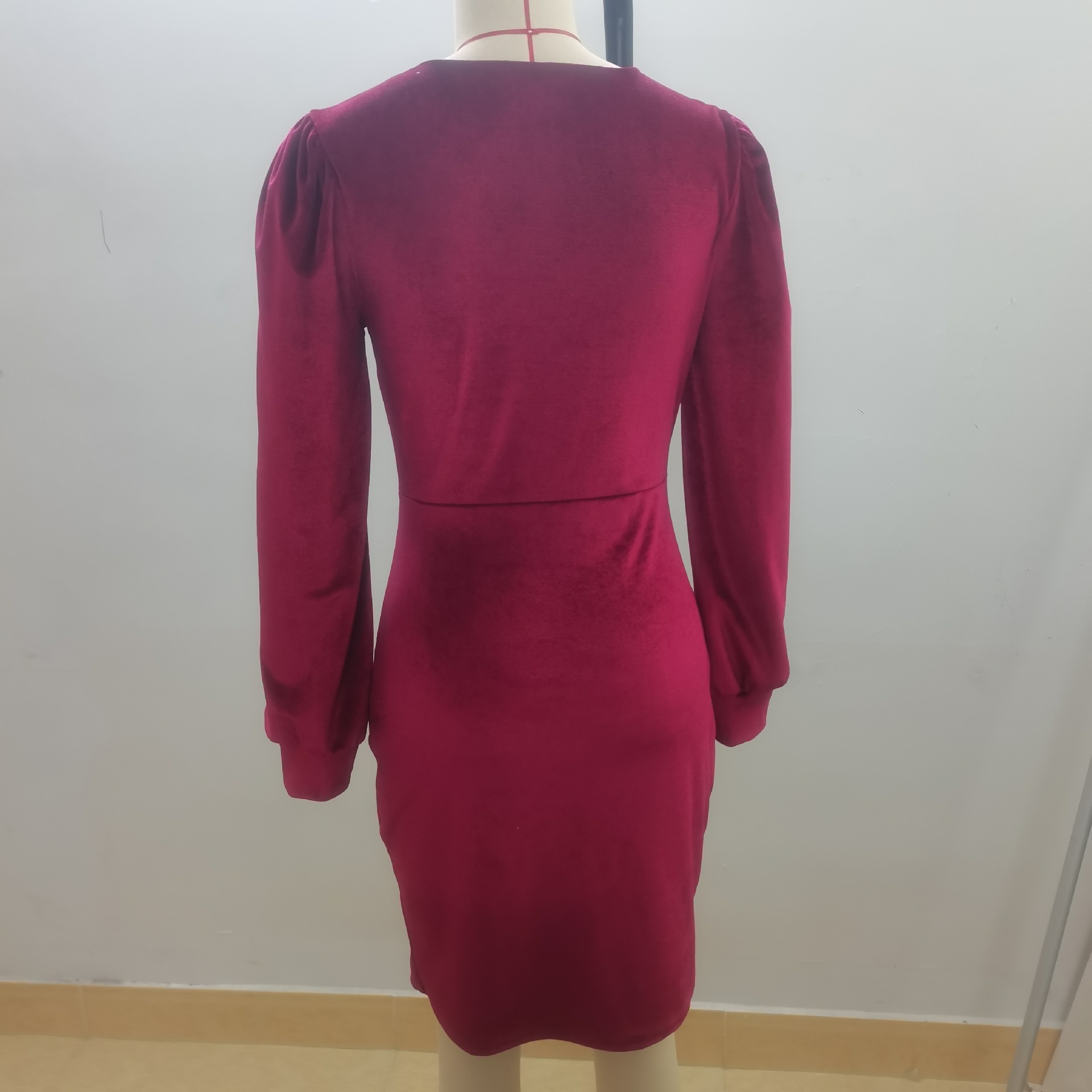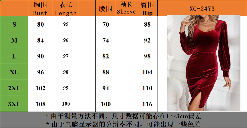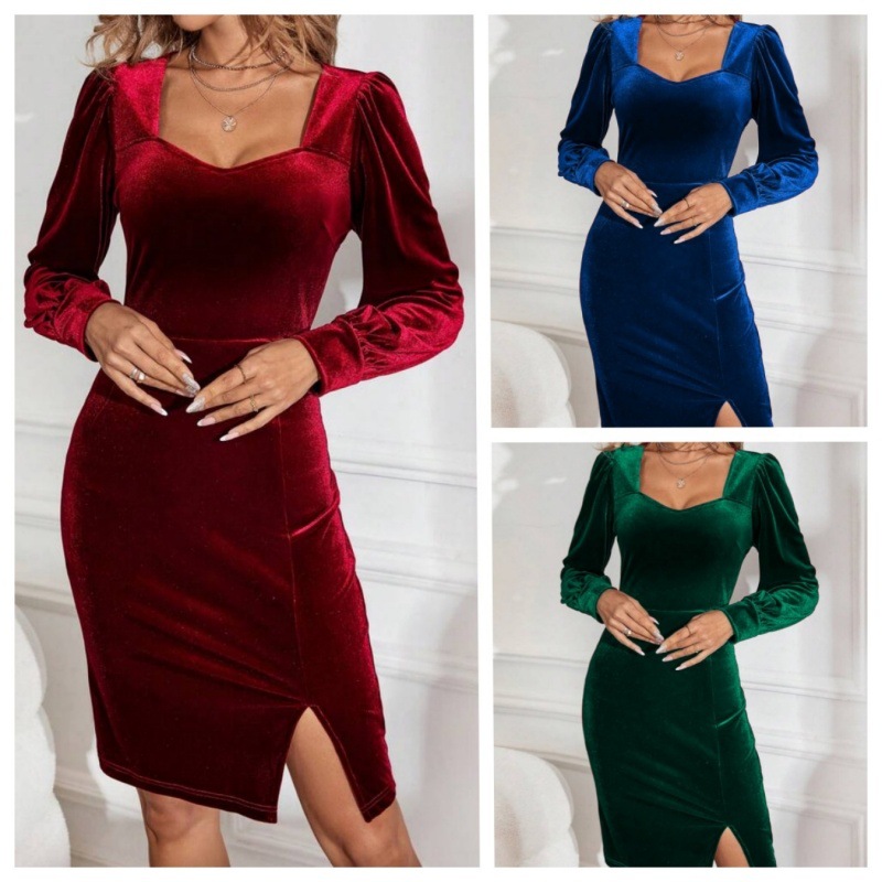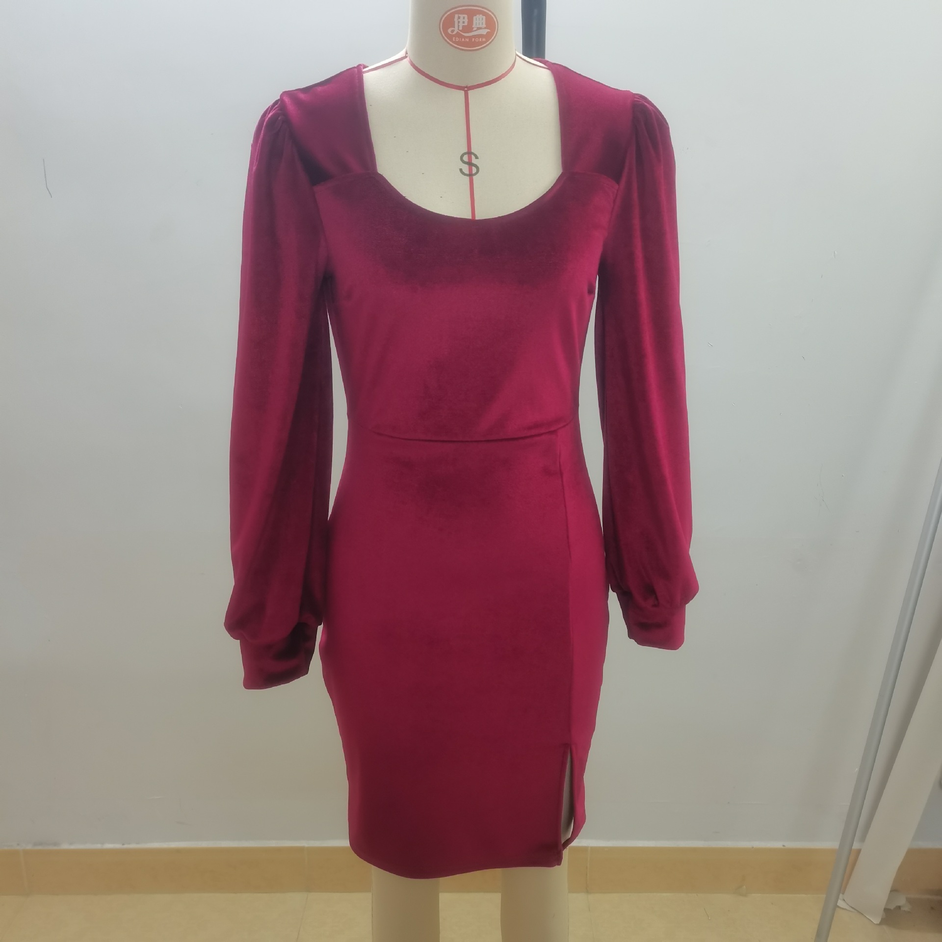 2024 국경을 넘는 유럽과 미국 가을과 겨울 새로운 슬림 양고기 다리 소매 사각 칼라 우아한 벨벳 긴 소매 원피스스토어 가기