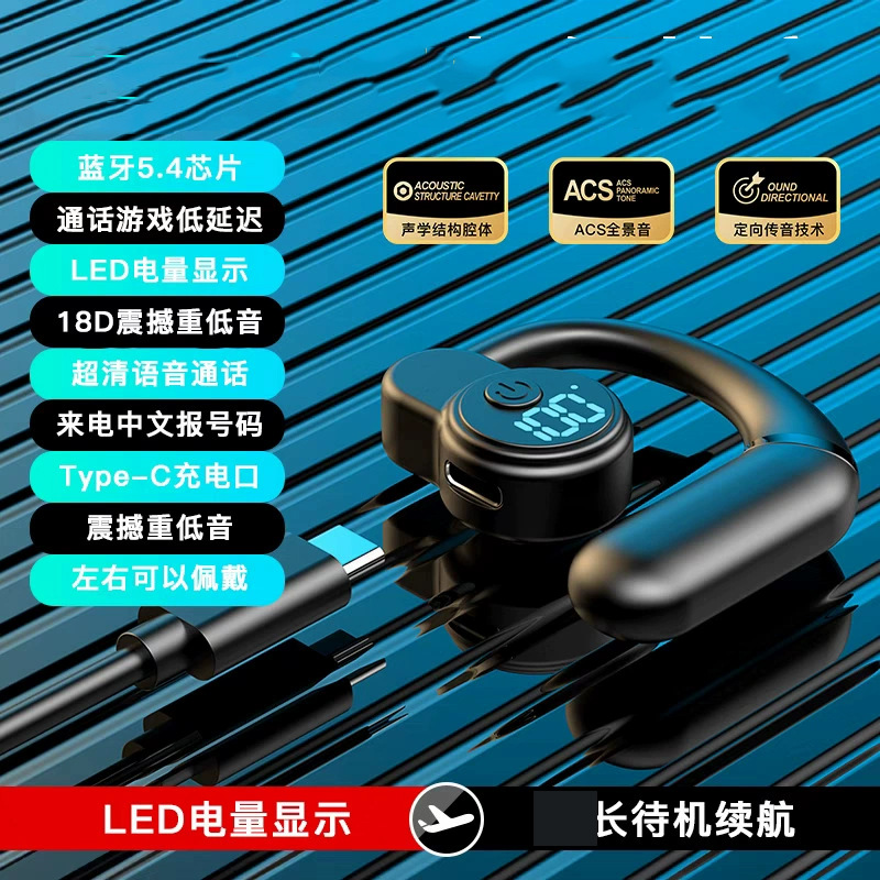 디지털 디스플레이 무선 블루투스 이어폰, 귀걸이형 게임 및 스포츠용, 긴 배터리 수명, 듀얼 이어폰, 초장시간 배터리 수명