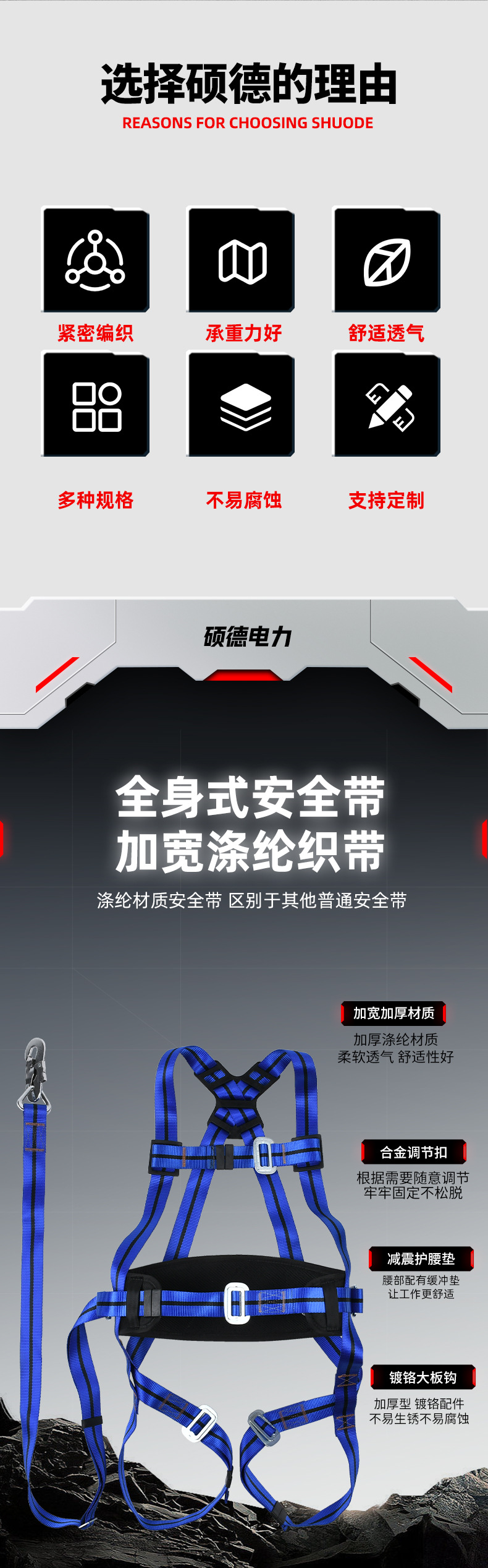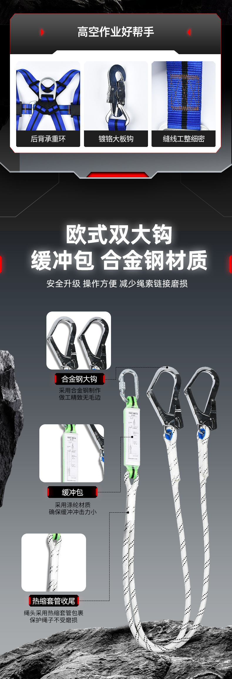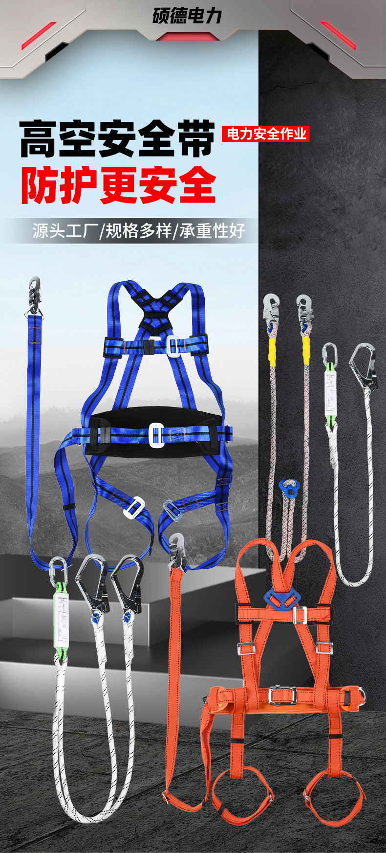 5점식 3점식 안전벨트, 버퍼로프, 더블대형후크, 두꺼운 전기공사, 고공작업, 추락방지, 전신안전스토어 가기
