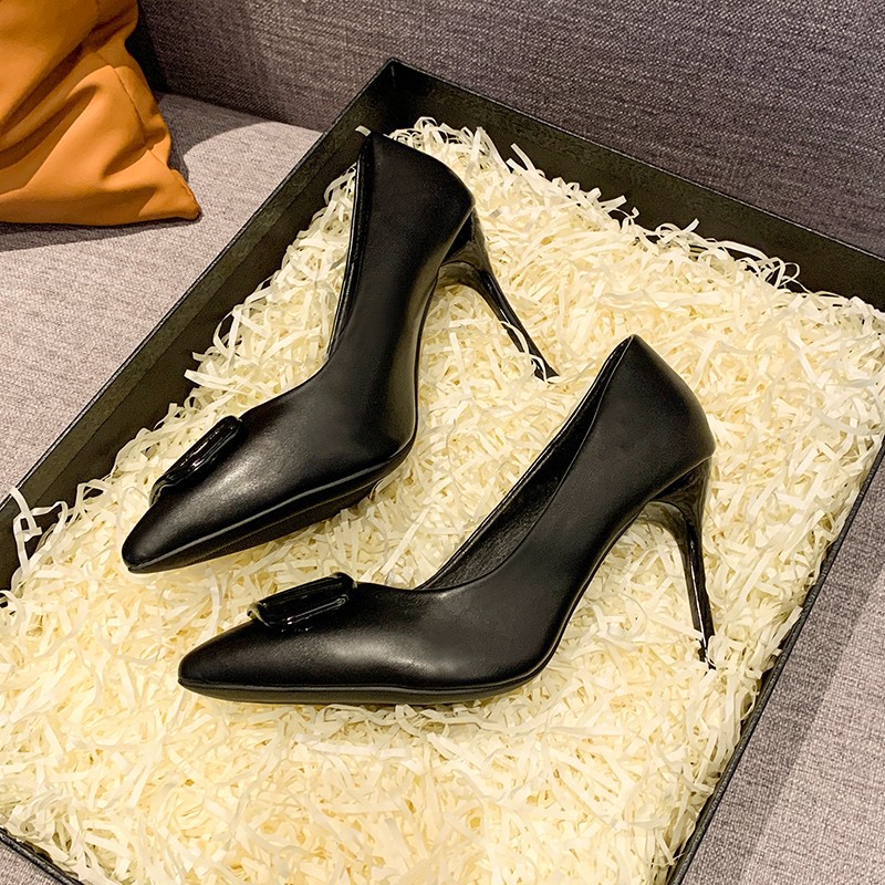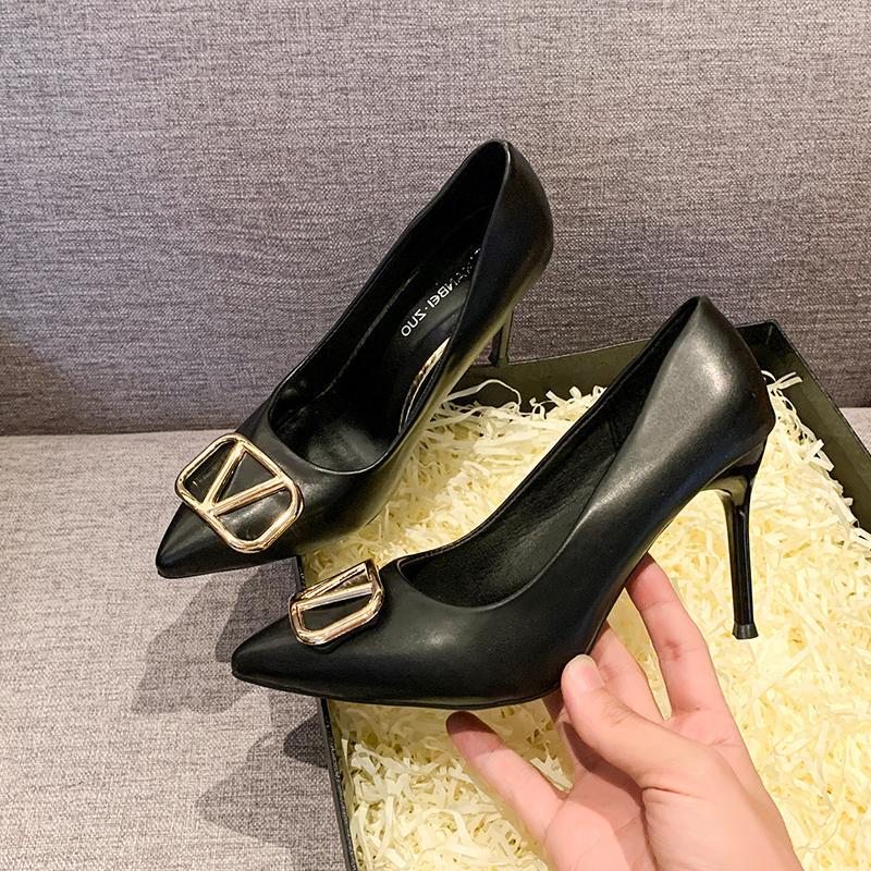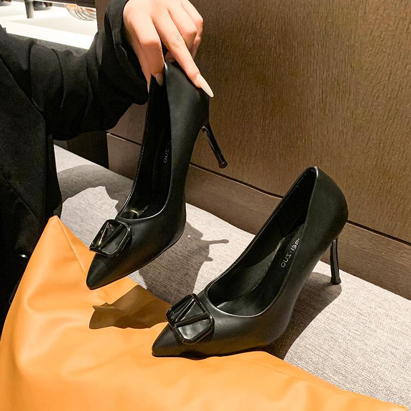 유럽 상품 v 버클 기질 하이힐 2024 새로운 프랑스 뾰족한 섹시한 누드 컬러 신발 플러스 사이즈 도매 여성 신발스토어 가기