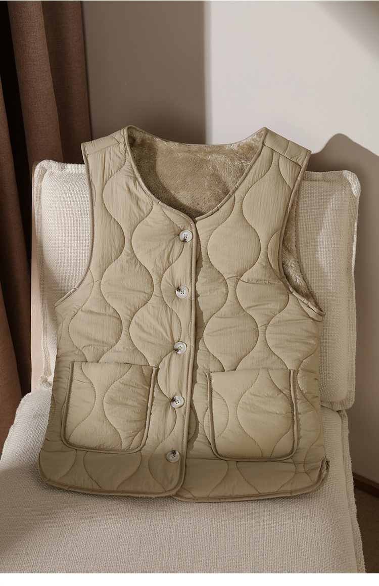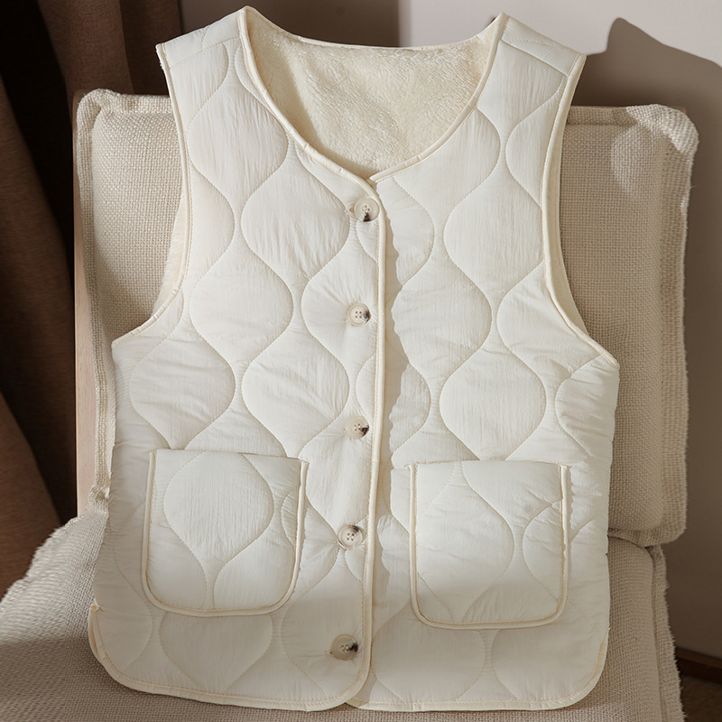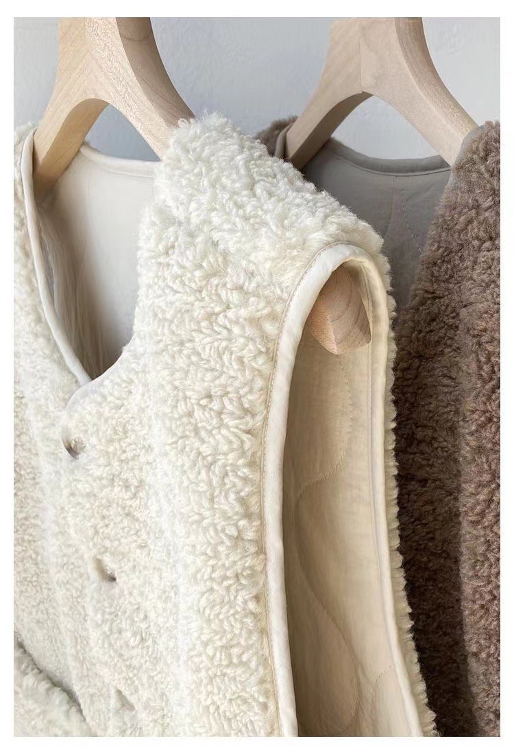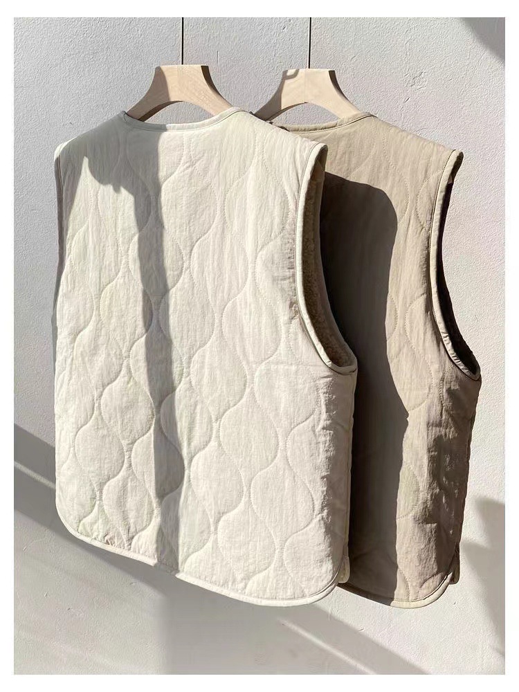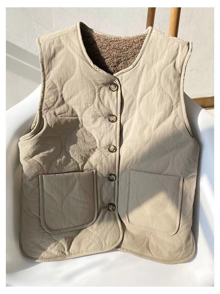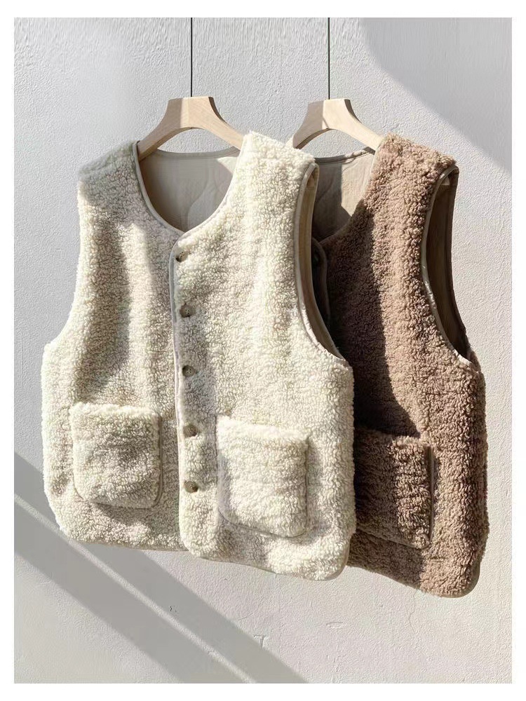 새 겨울 조끼 양모 양면 따뜻한 조끼 포켓 위축 여성 조끼