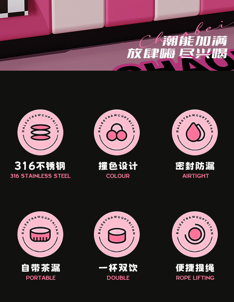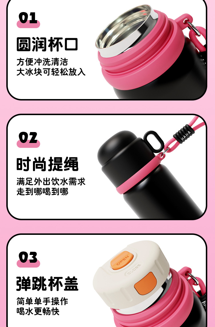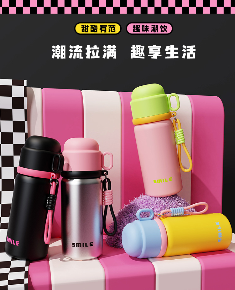 국경을 넘는 간편 보온병, 이중 음용 316 스테인리스 물컵, 학생용 휴대용 점프컵, 어린이용 대용량 물병