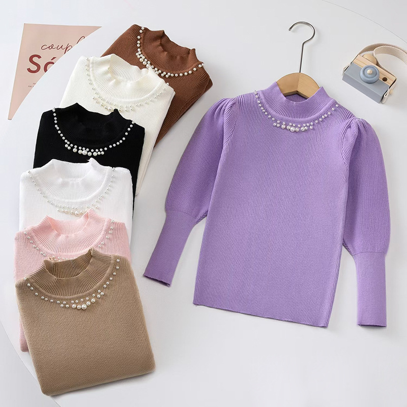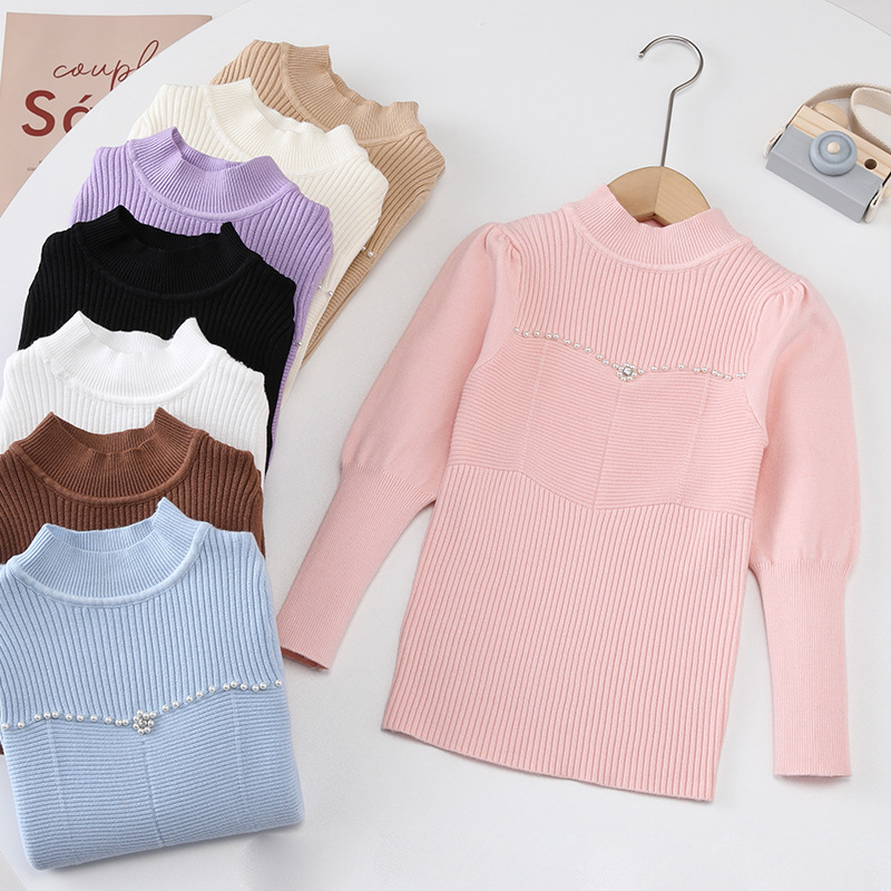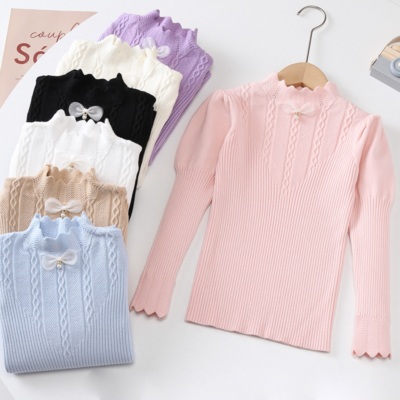 대외 무역 아동복 어린이 스웨터 여성 풀오버 베이스 셔츠 소녀의 가을 겨울 2024 새로운 도착 중 · 소형 어린이 반높이 칼라