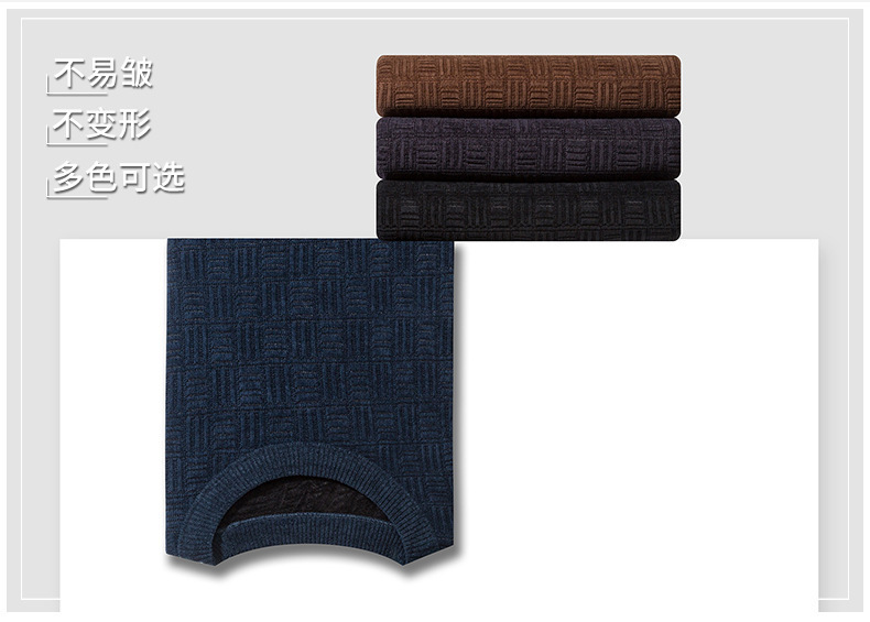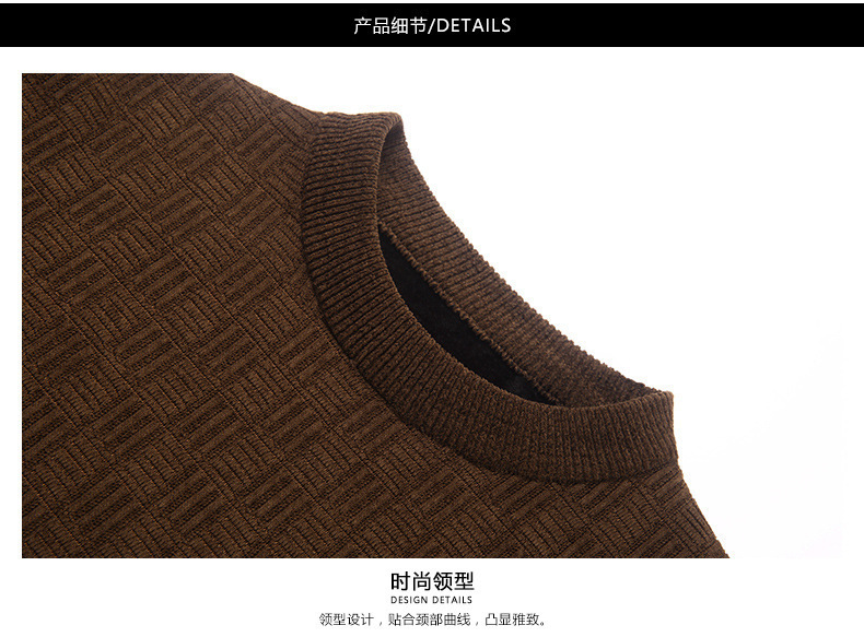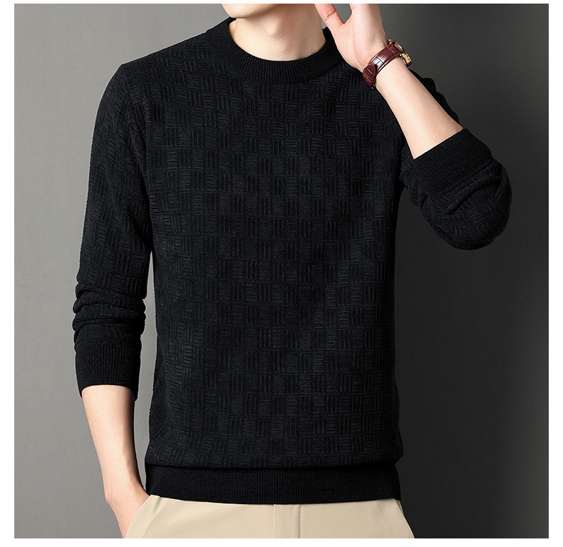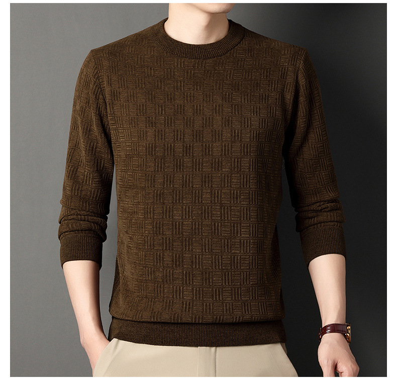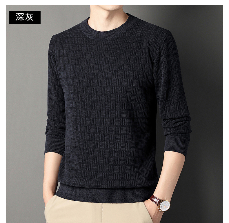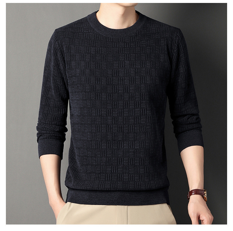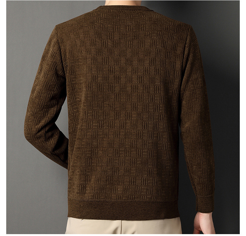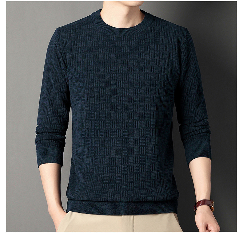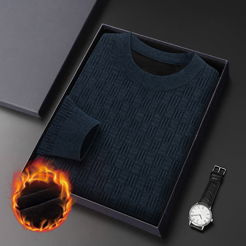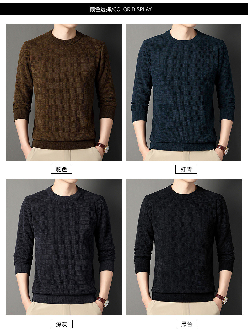 남자 기모 두꺼운 따뜻한 스웨터 겨울 중년 자카드 체커 보드 긴 소매 단색 간단한 마작베이스 셔츠