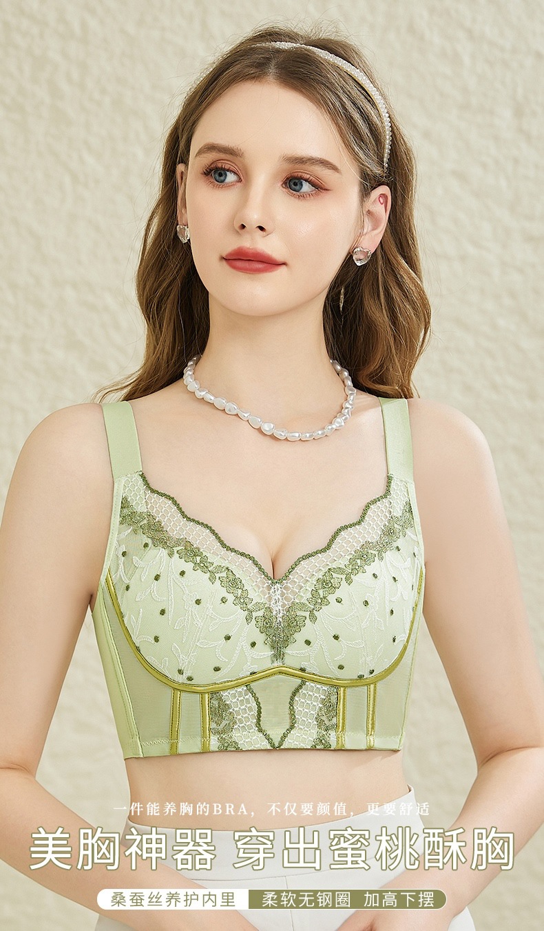 광동 산터우 여성용 속옷 작은 가슴 뭉치 빈 컵이 아닌 뽕나무 실크 자수 비 강철 반지 조정 가능한 브래지어