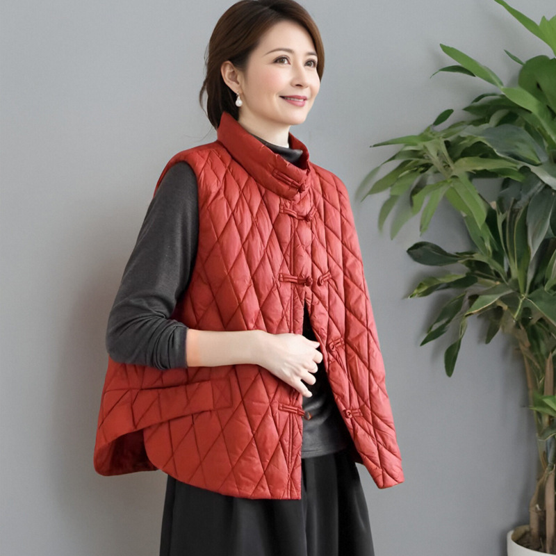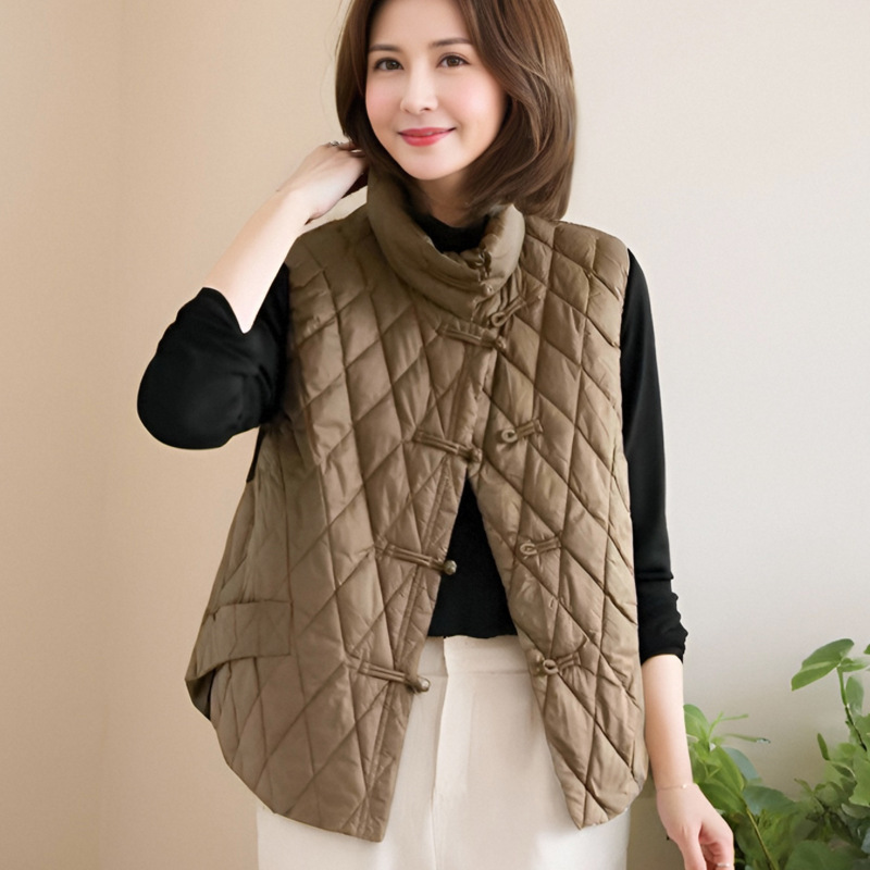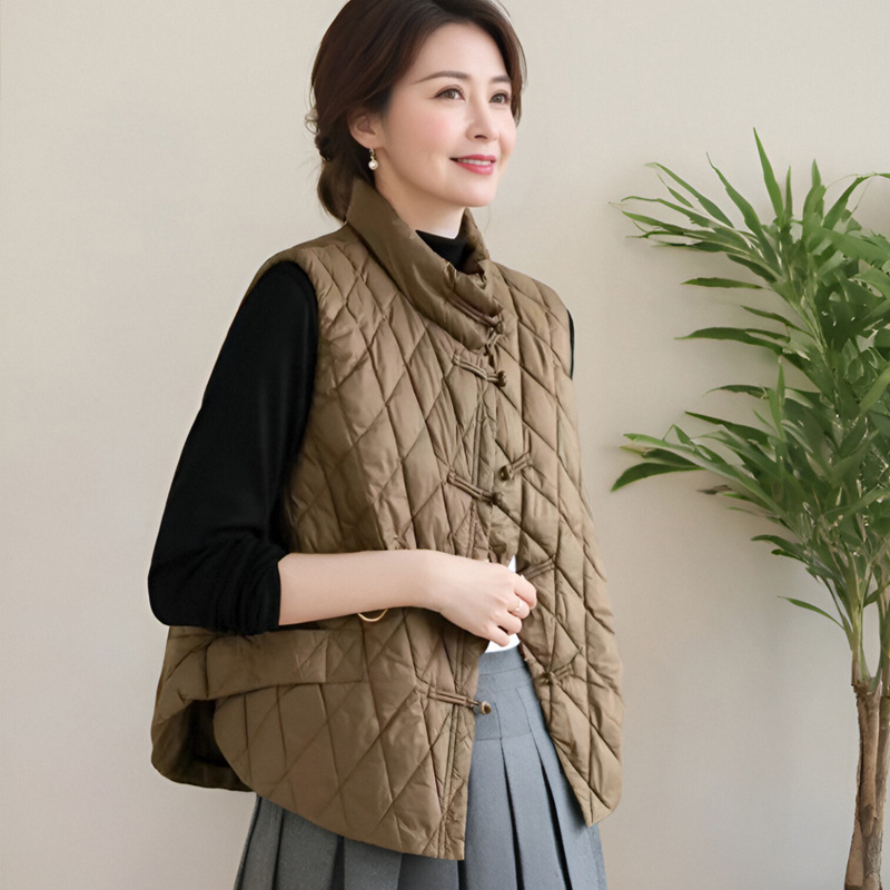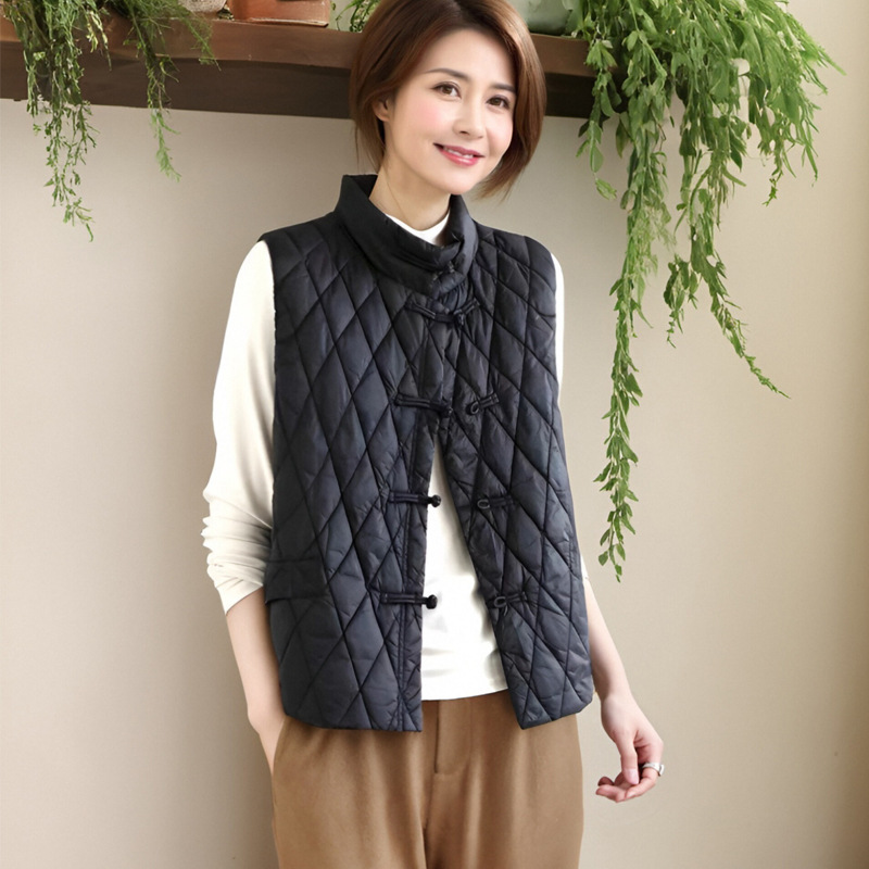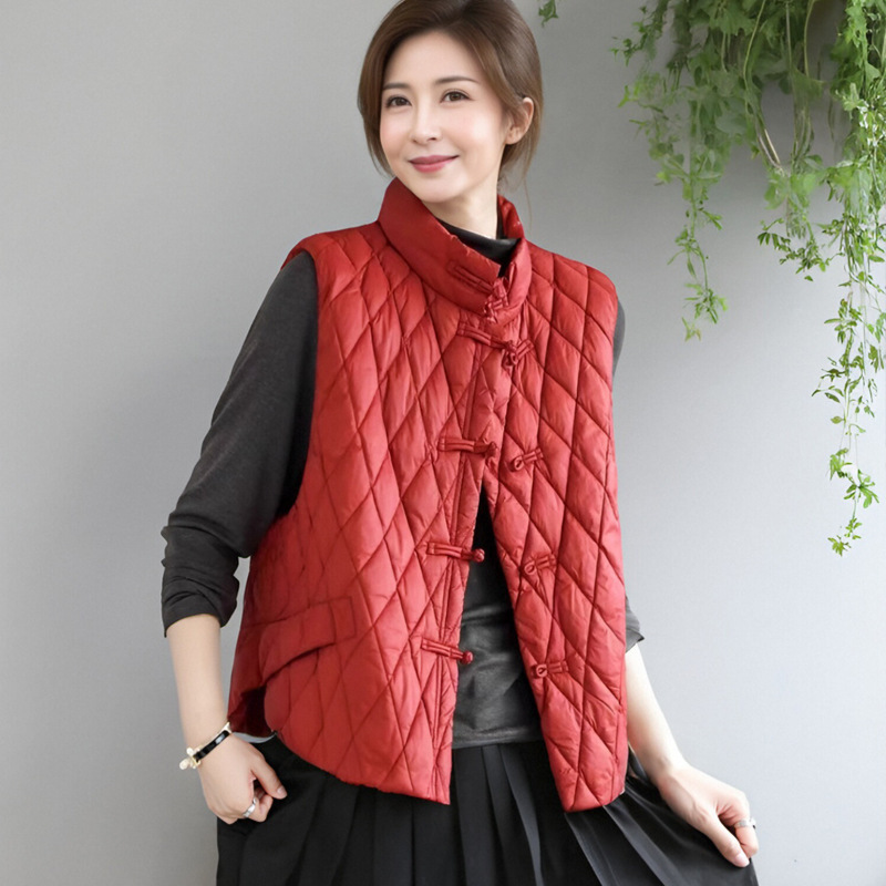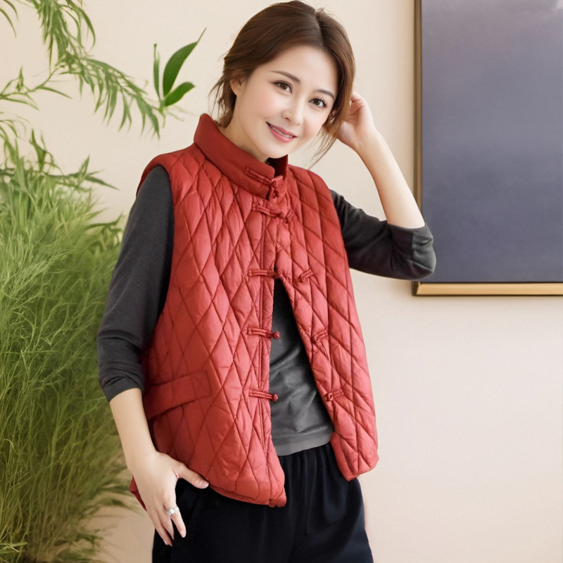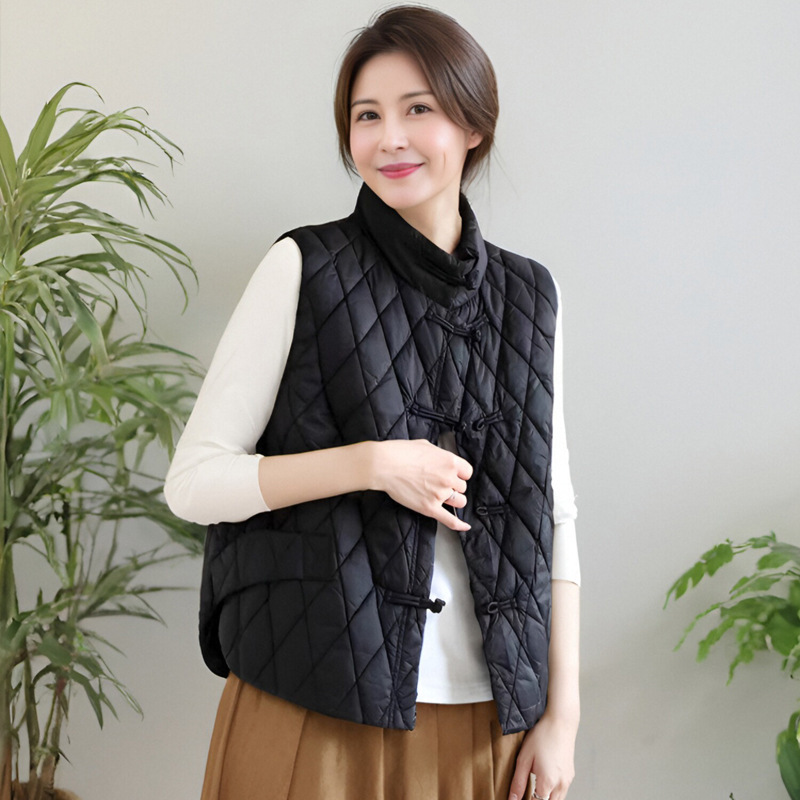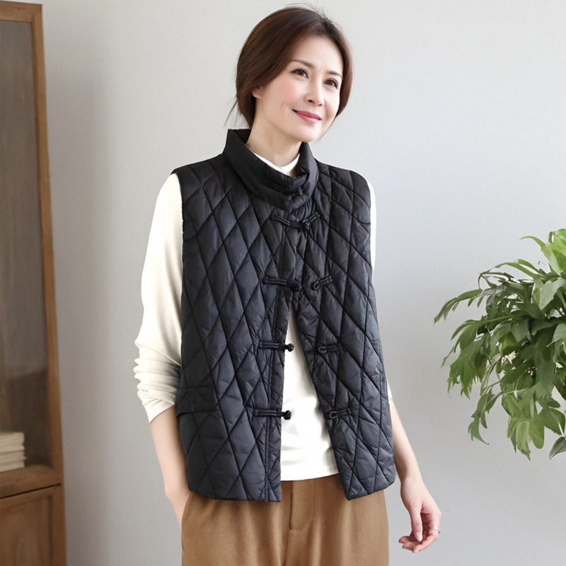 인기 있는 단추 장식 다운 코튼 조끼 여성용 2025년 신상 민족풍 예술적 다용도 얇은 가을 민소매 조끼