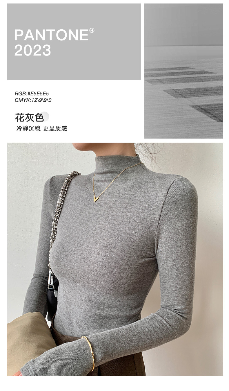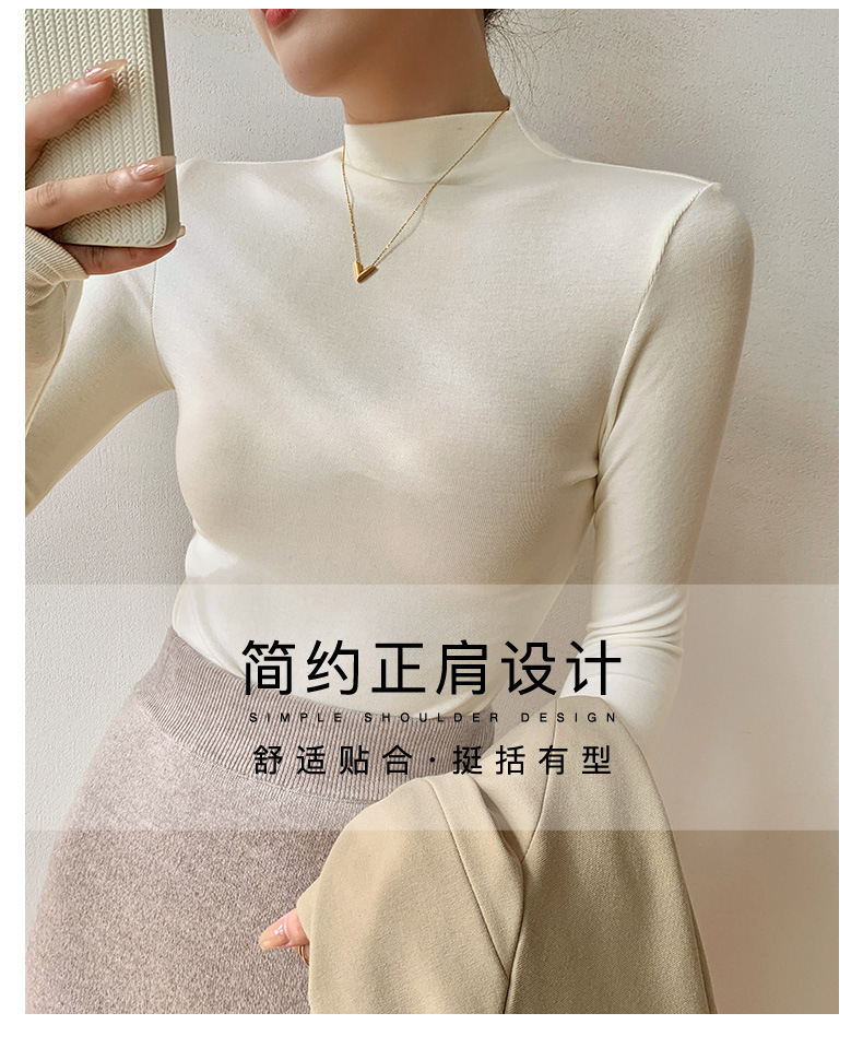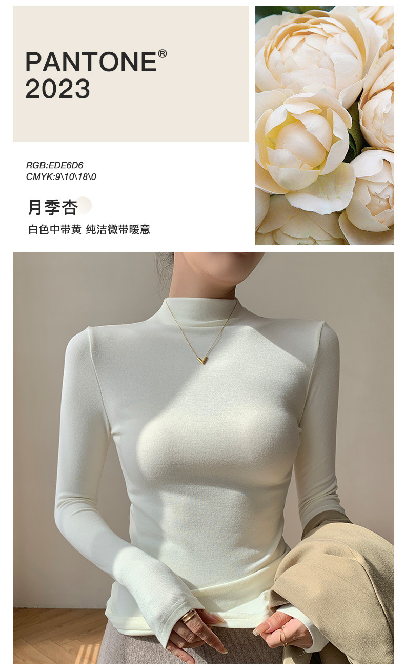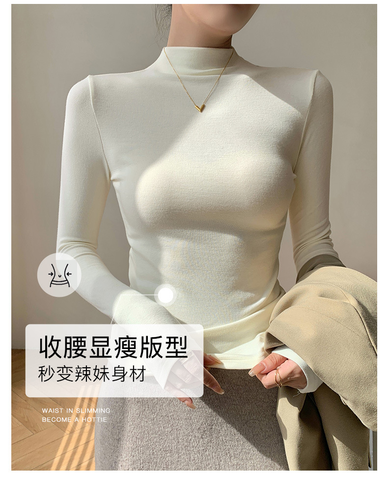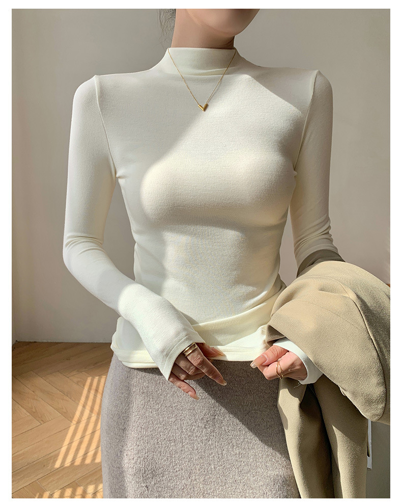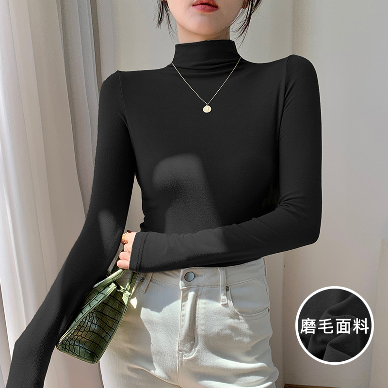 반높이 칼라베이스 셔츠 가을과 겨울 새로운 슬림핏 따뜻한 양털 긴팔 티셔츠 여성용 솔리드 컬러 올매치 탑