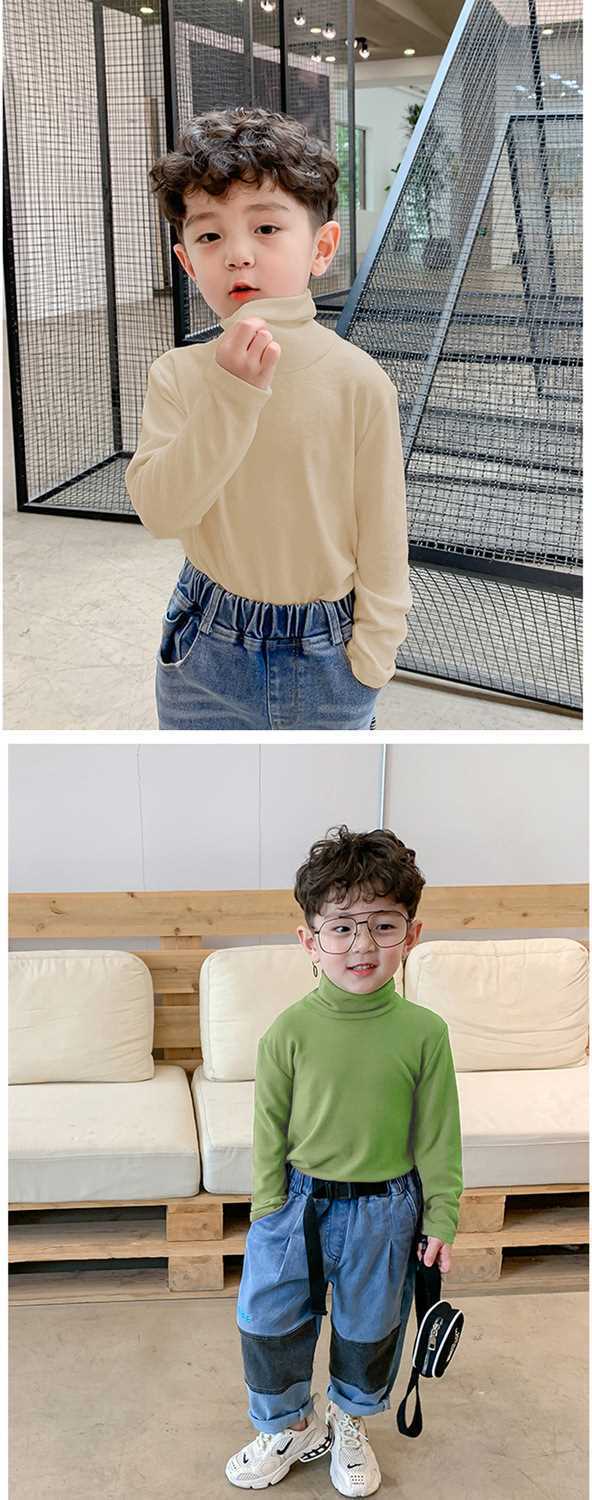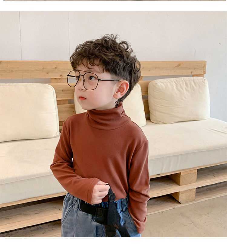 아동복 벨벳 소년 높은 칼라 솔리드 컬러베이스 셔츠 가을과 겨울 새로운 어린이 긴 소매 티셔츠 올 매치 따뜻한 최고 트렌디스토어 가기