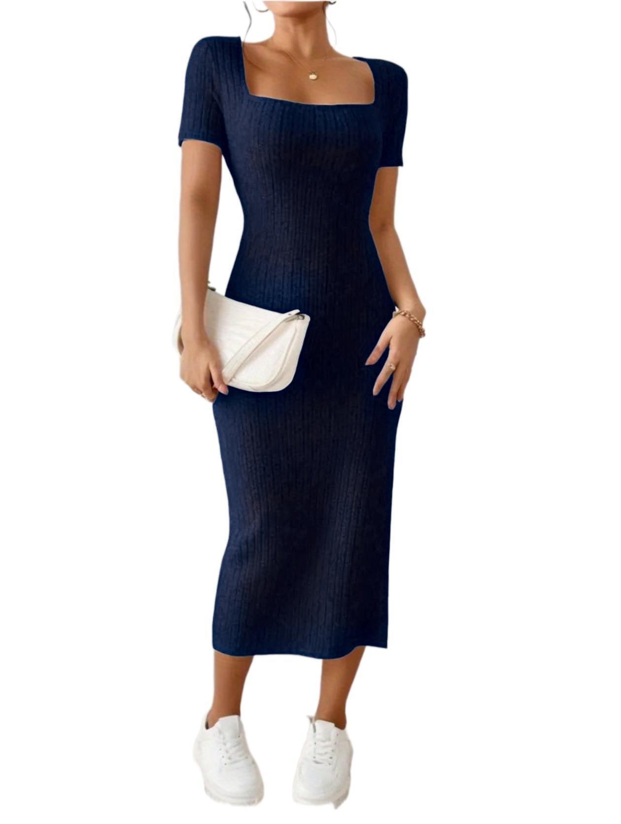 여름 새로운 국경 여성 패션 스퀘어 칼라 섹시한 슬림 핏 스플릿 힙합 원피스 여성 유럽과 미국의 대외 무역 소프트 왁스스토어 가기