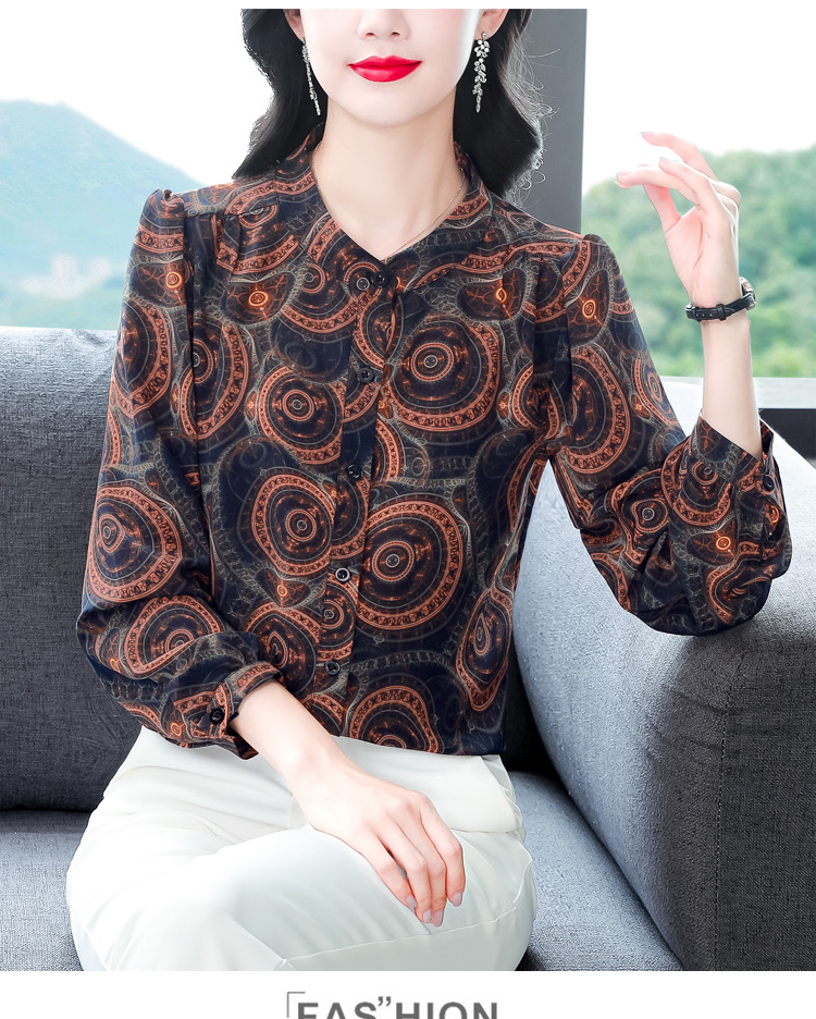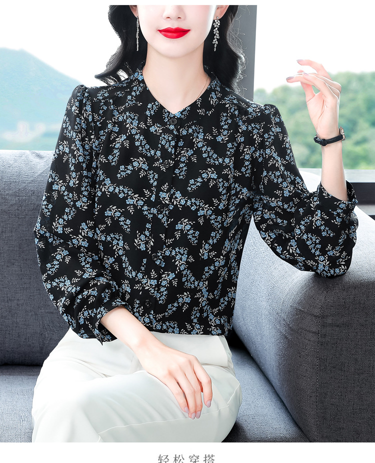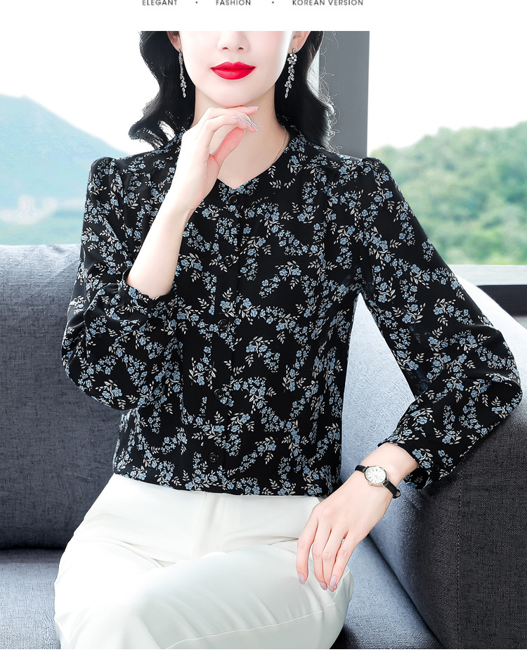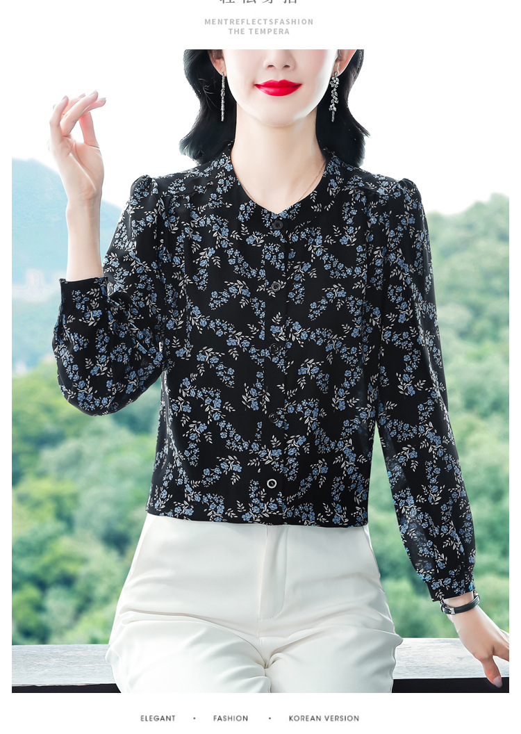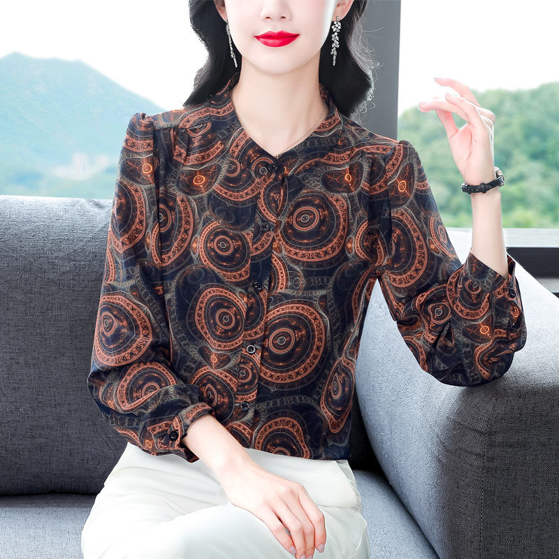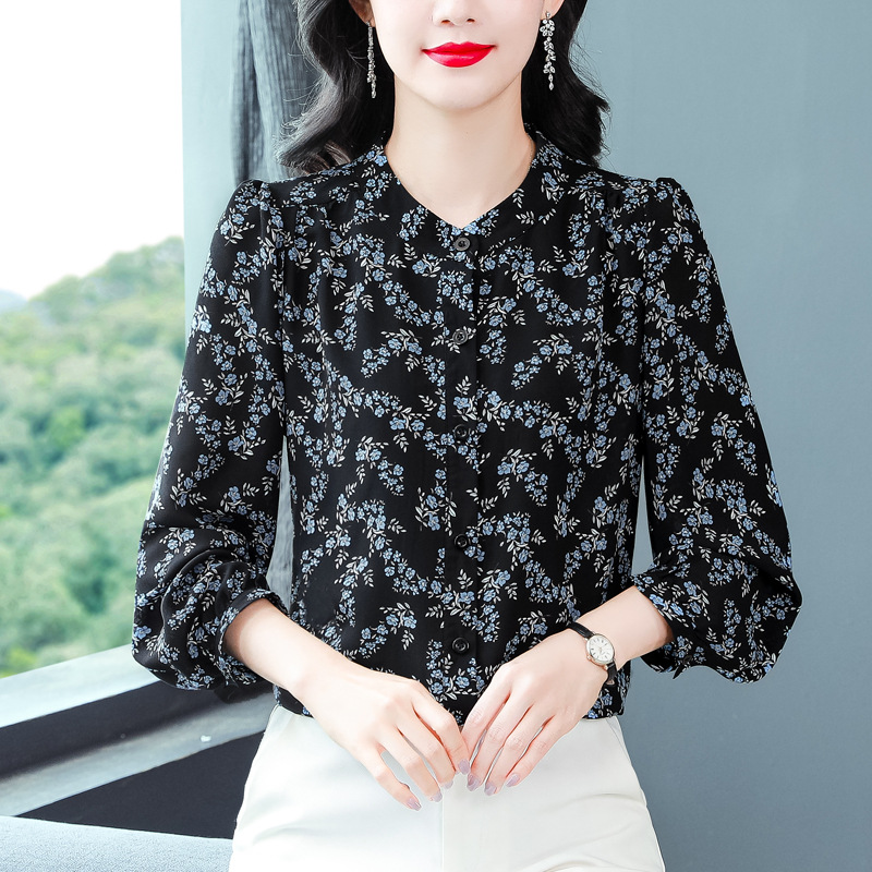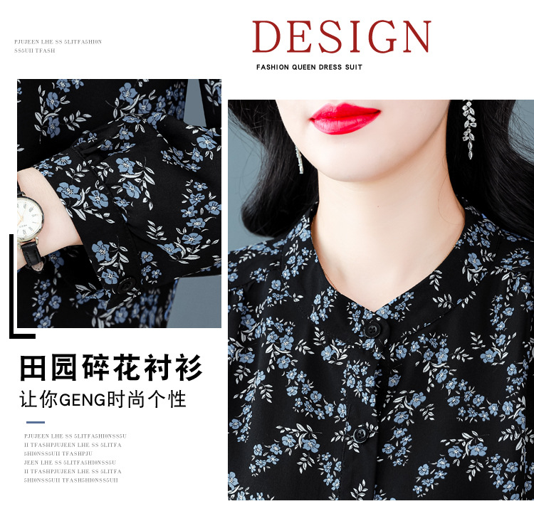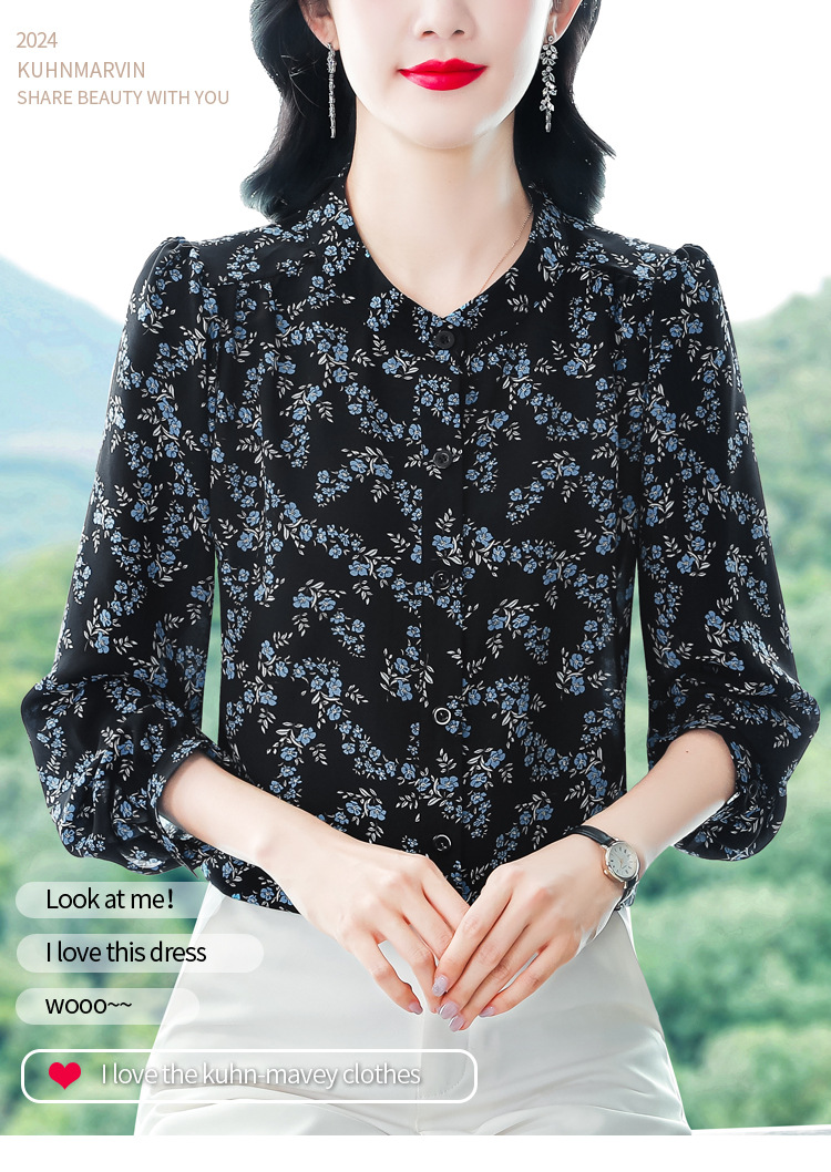 프랑스 스타일 레트로 우아한 긴 소매 꽃 셔츠 여성의 2024 새로운 패션 서양 스타일 어머니의 나이를 줄이는 시폰 탑