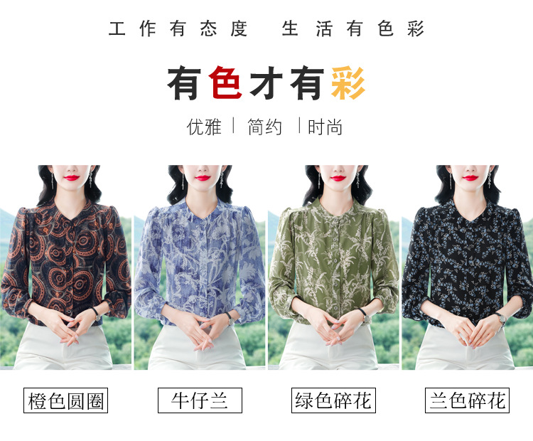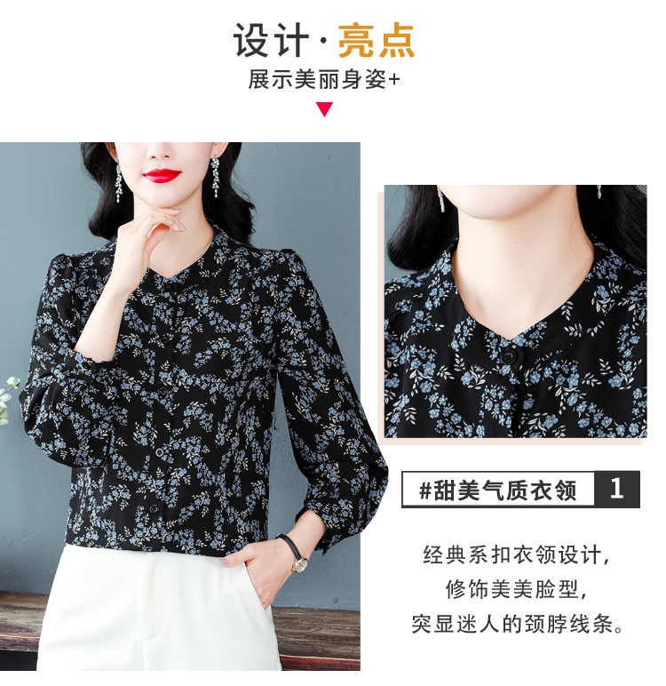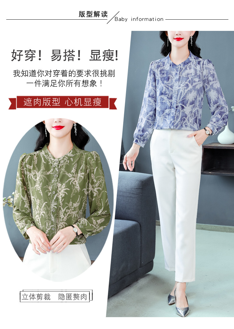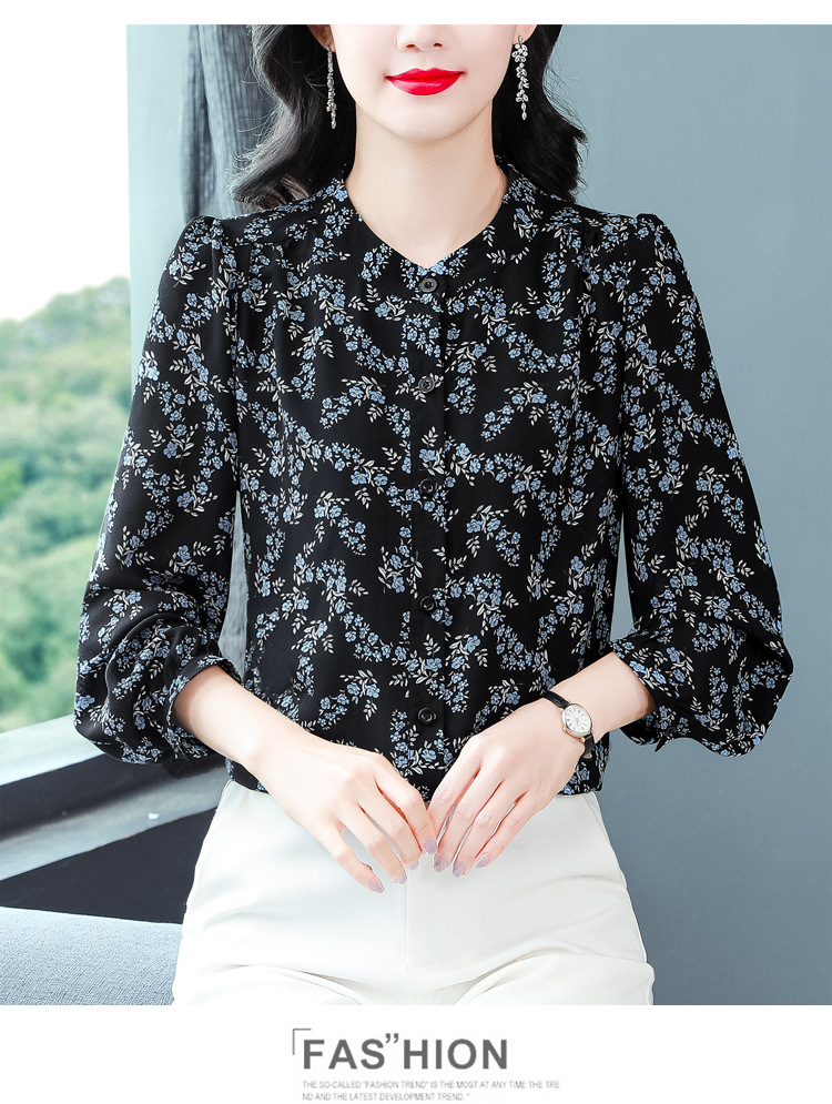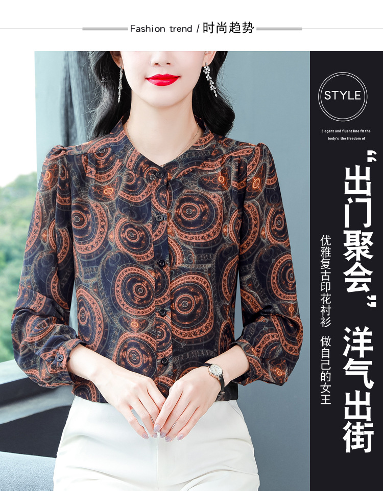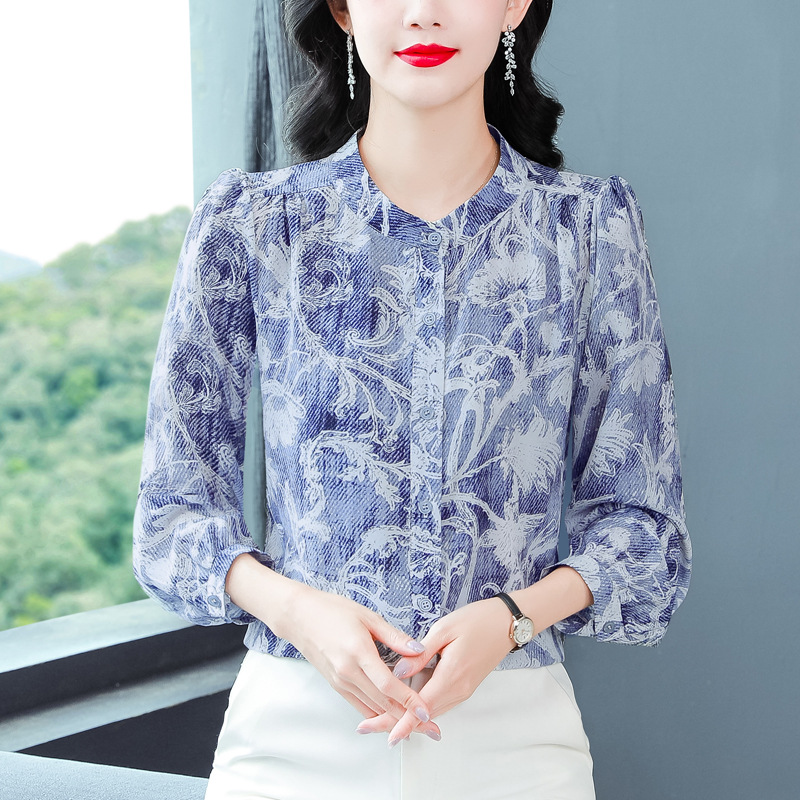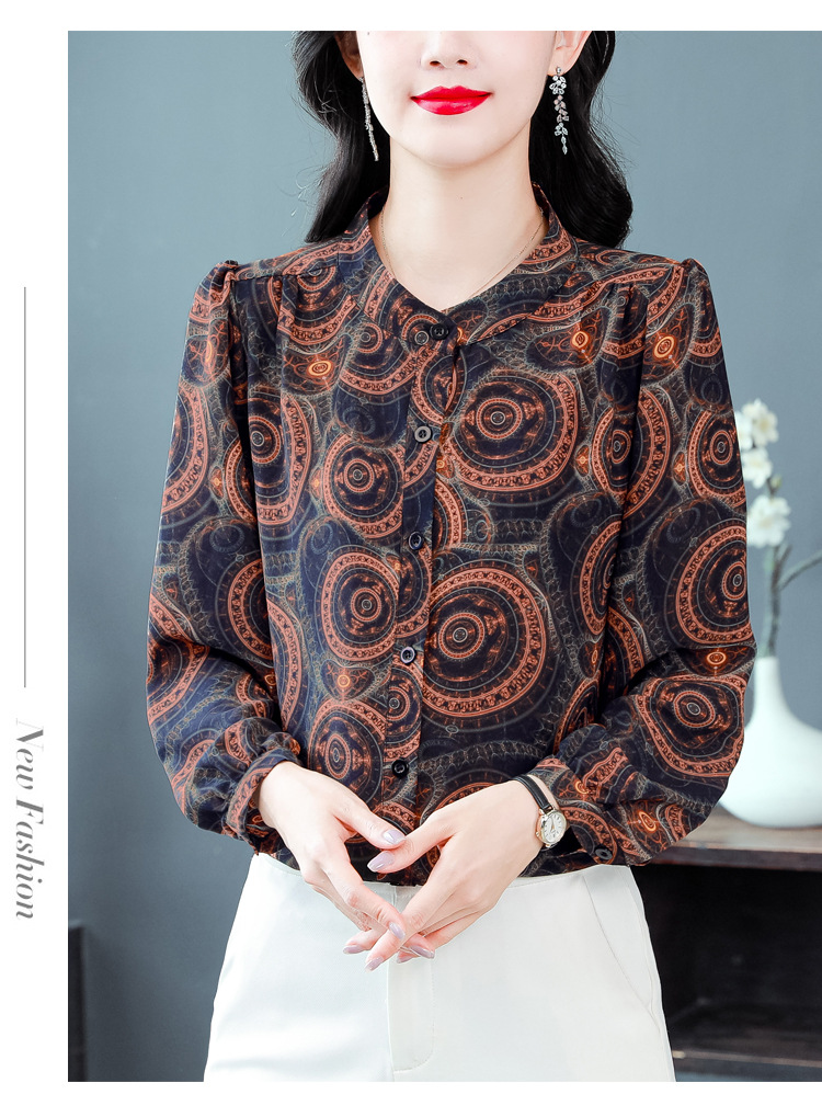 프랑스 스타일 레트로 우아한 긴 소매 꽃 셔츠 여성의 2024 새로운 패션 서양 스타일 어머니의 나이를 줄이는 시폰 탑
