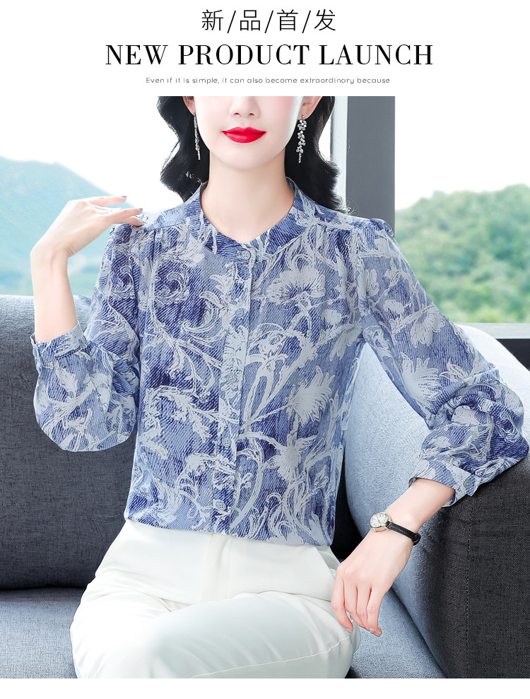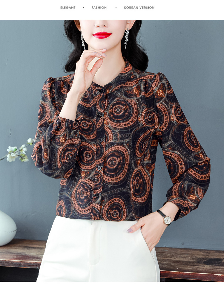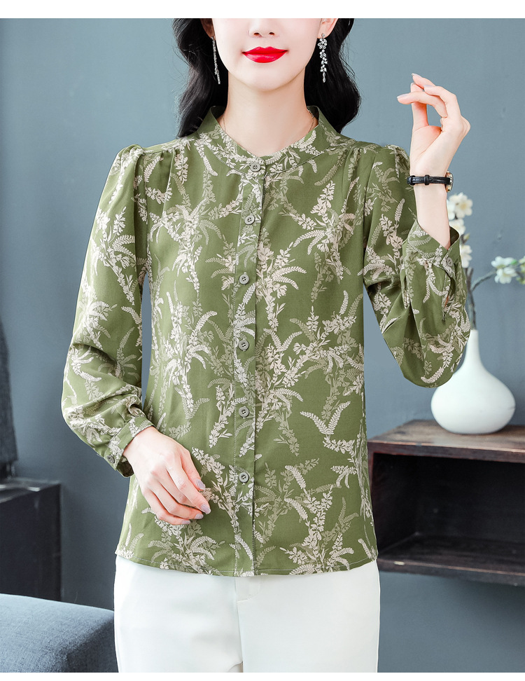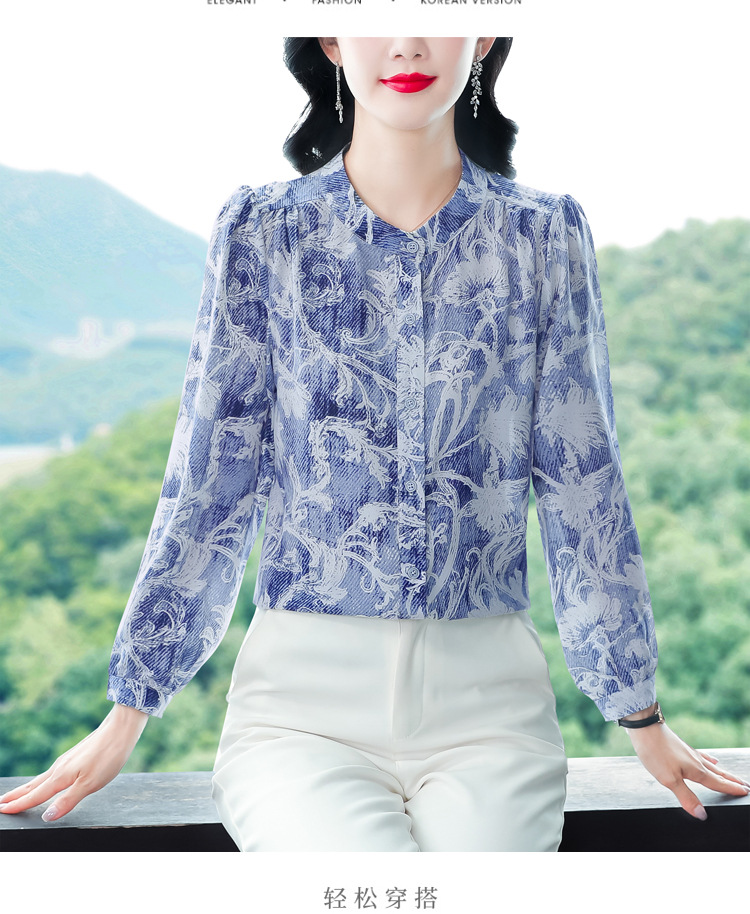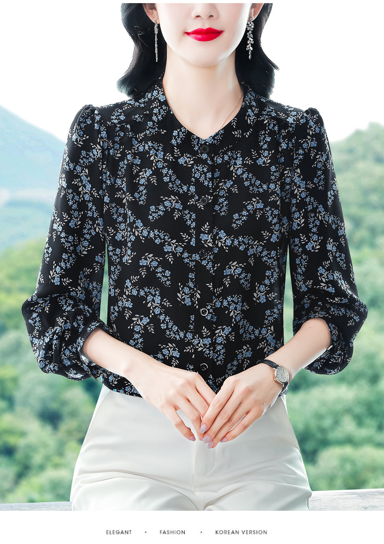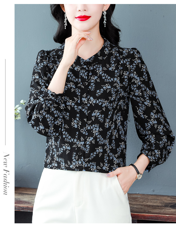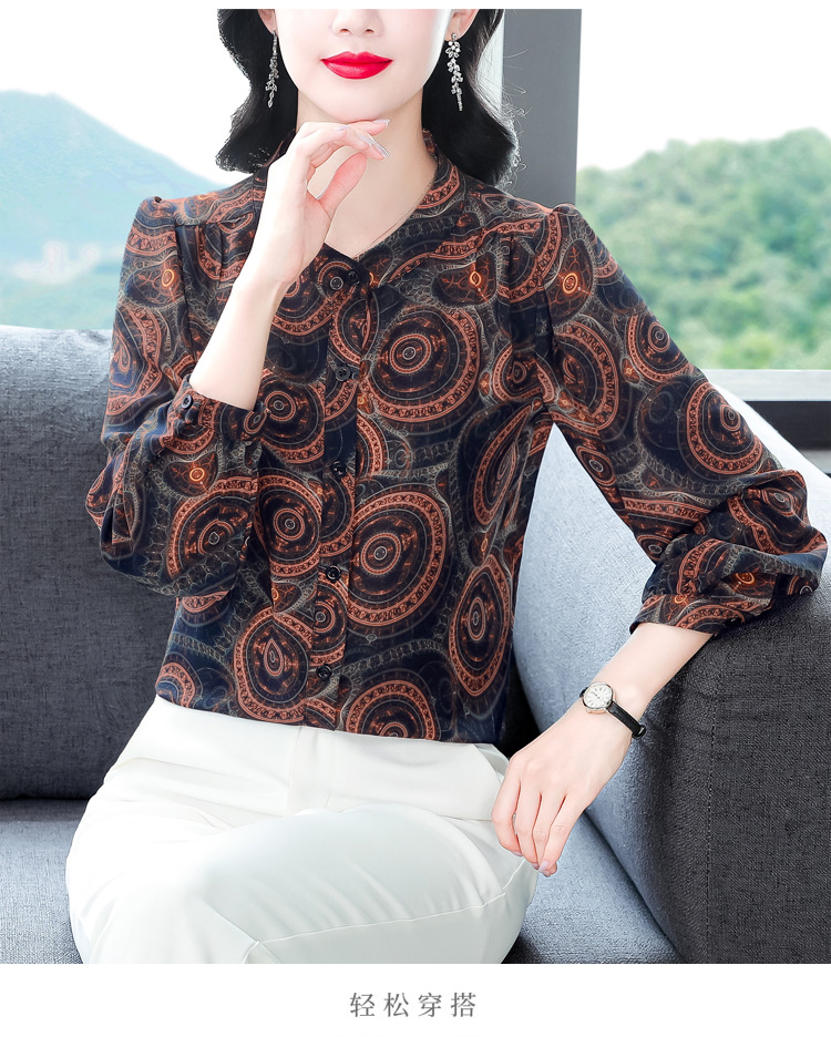프랑스 스타일 레트로 우아한 긴 소매 꽃 셔츠 여성의 2024 새로운 패션 서양 스타일 어머니의 나이를 줄이는 시폰 탑
