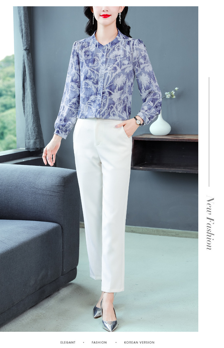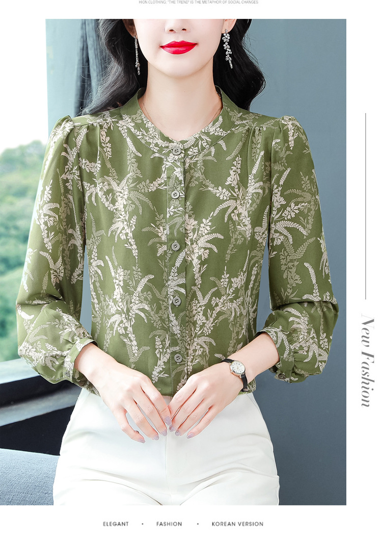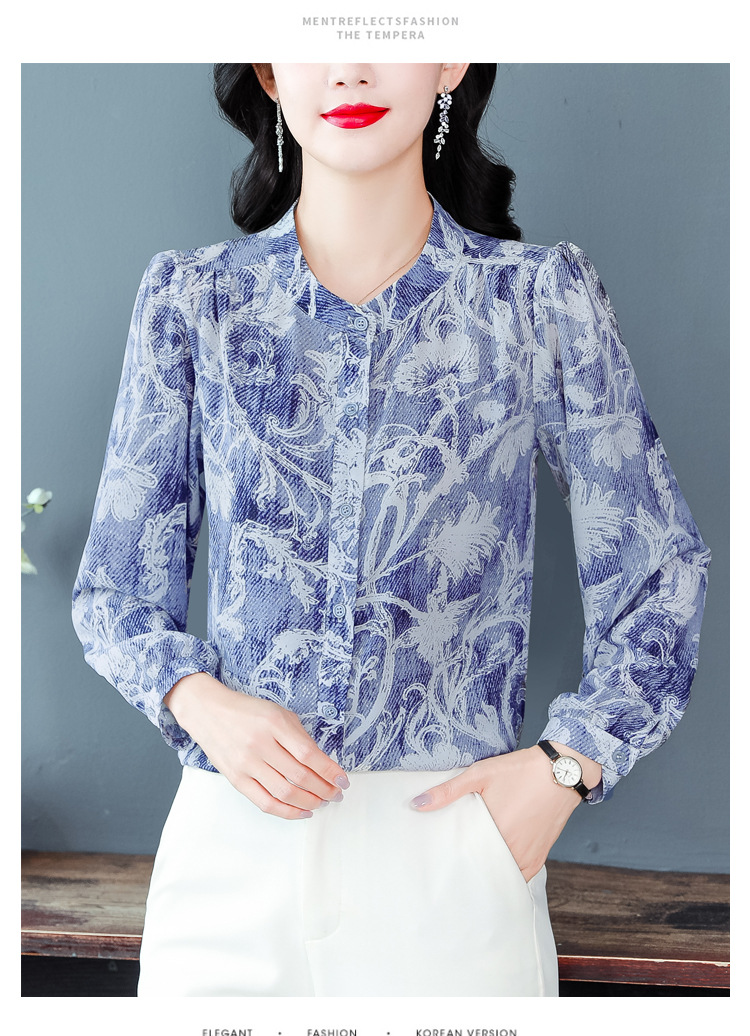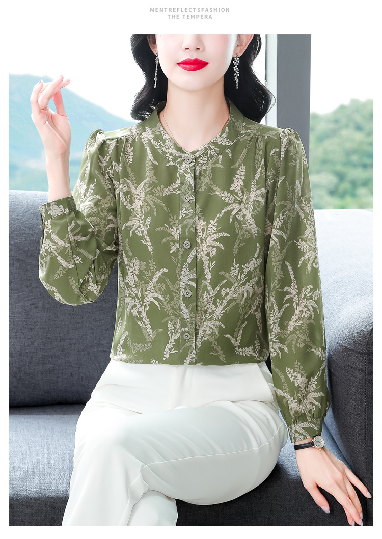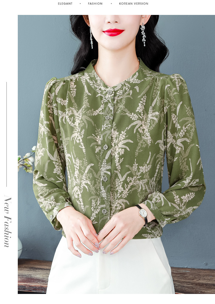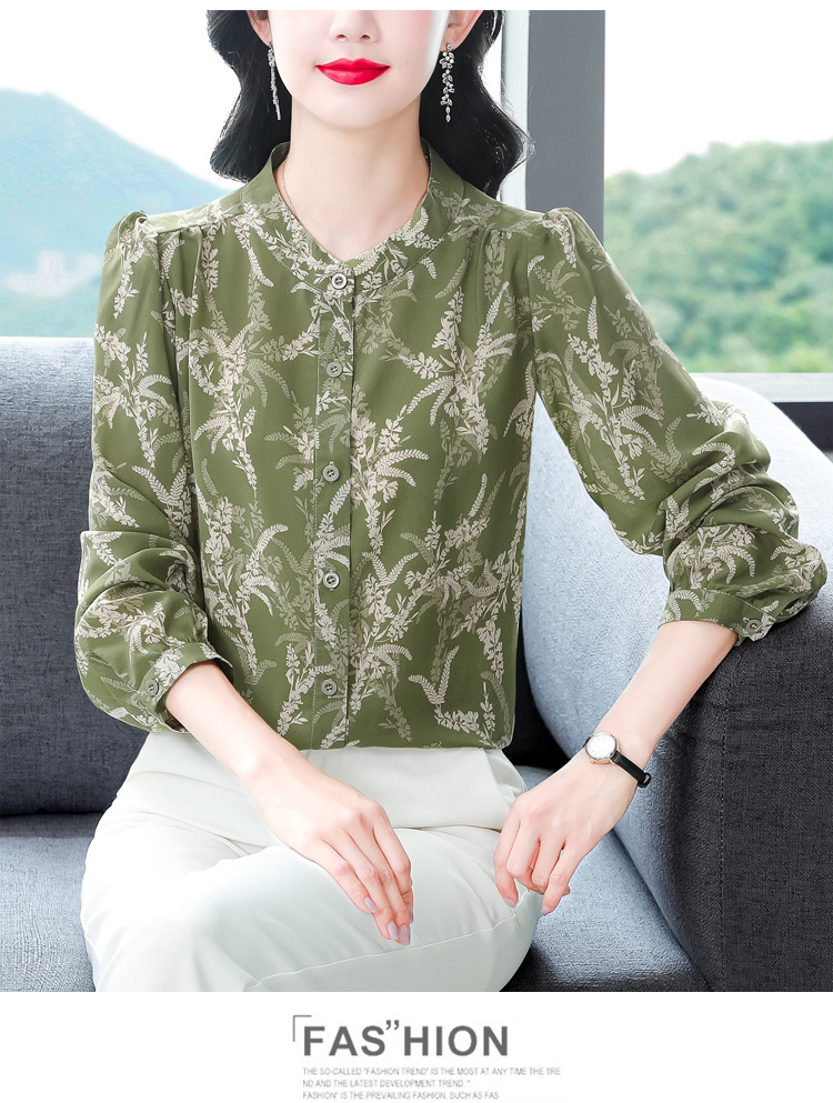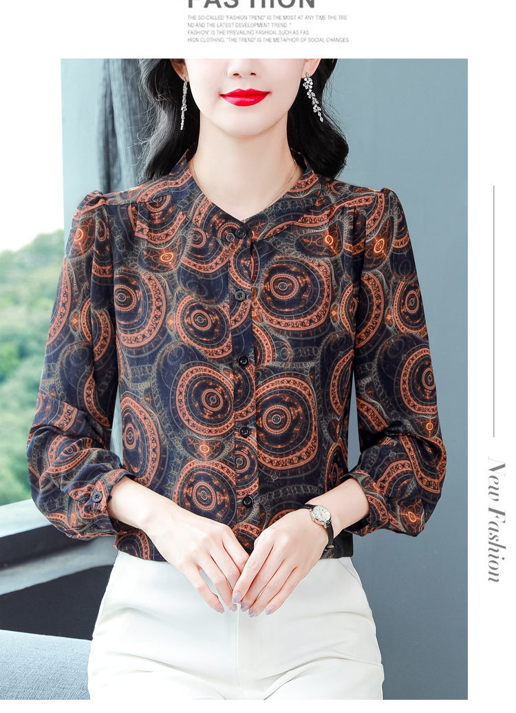 프랑스 스타일 레트로 우아한 긴 소매 꽃 셔츠 여성의 2024 새로운 패션 서양 스타일 어머니의 나이를 줄이는 시폰 탑