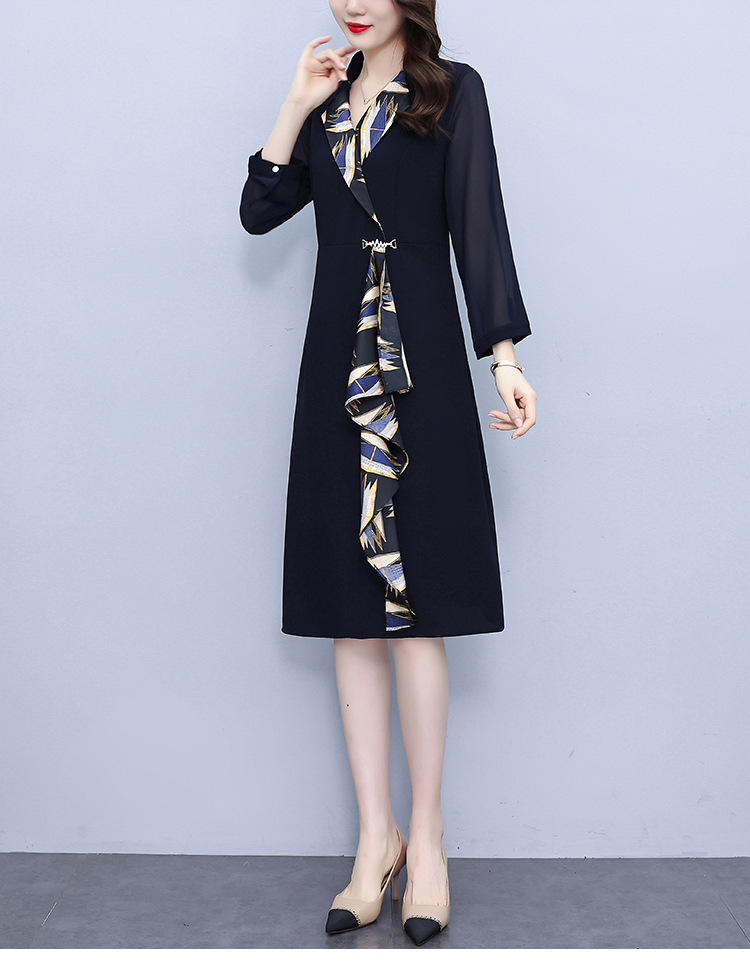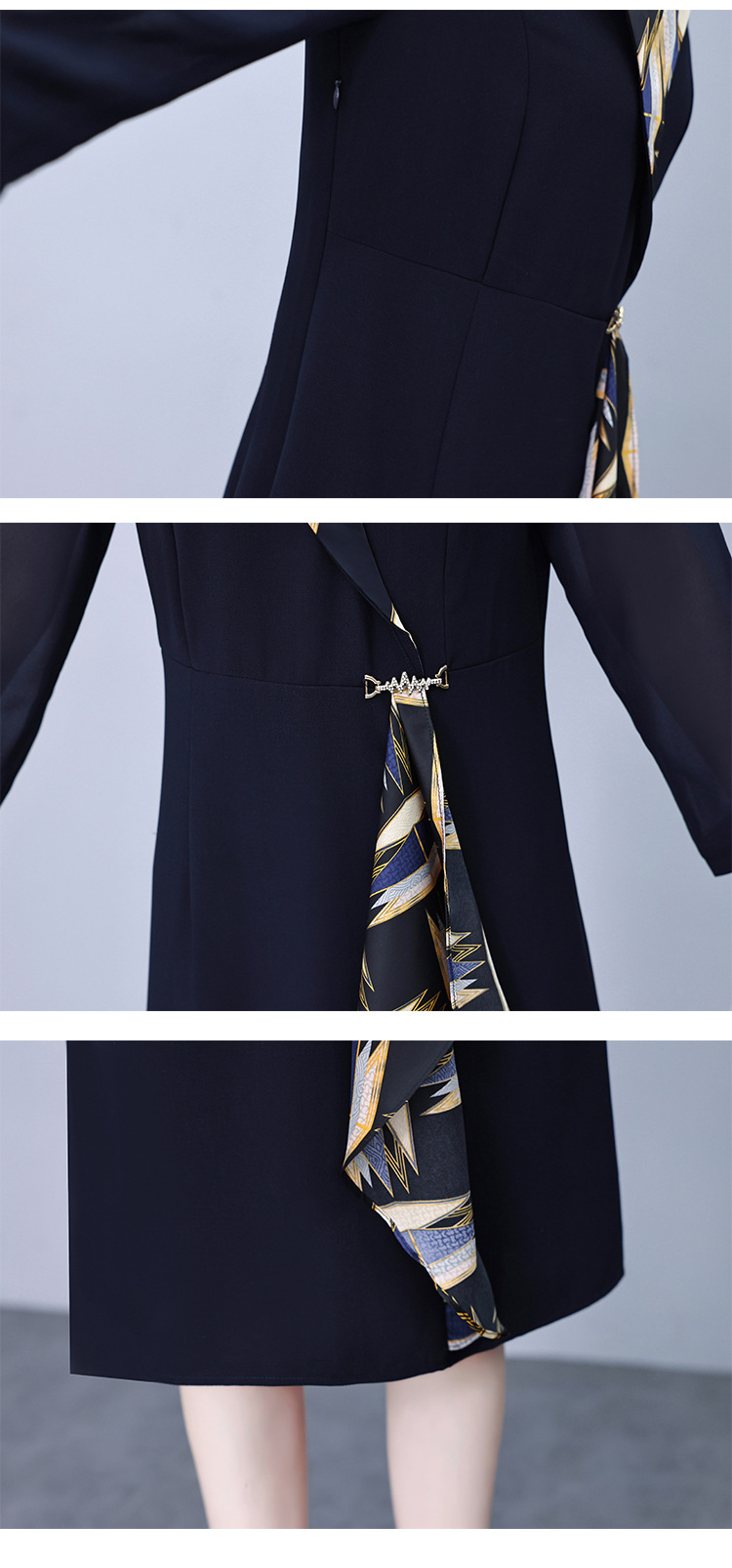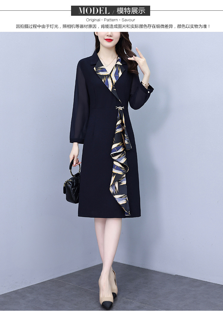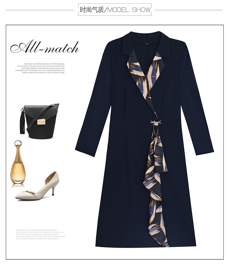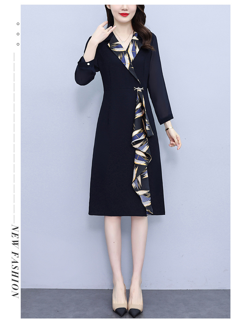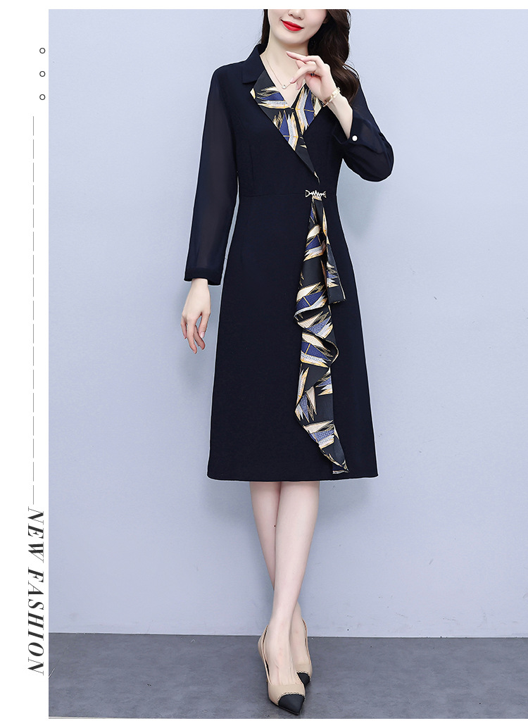 가을 2024 새로운 서양 스타일 우아한 우아한 원피스 칼라 패션 중년 어머니 대비 색상 스티칭 중간 길이 원피스스토어 가기