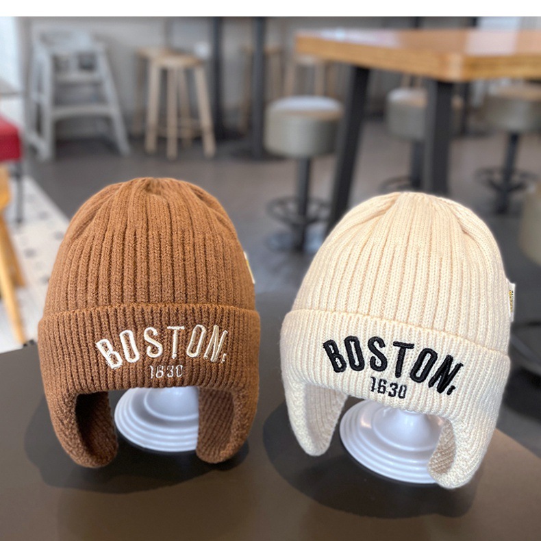 어린이 가을 겨울 한국식 따뜻한 니트 귀 모자 소년 소녀를위한 겨울 방풍 올매치 아기 풀오버 울 모자