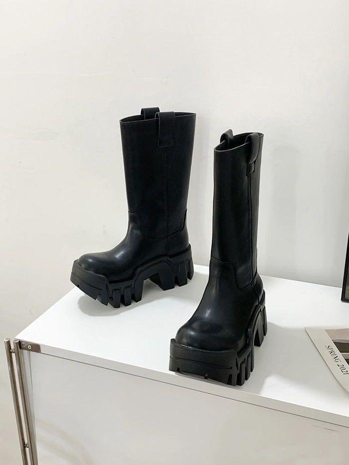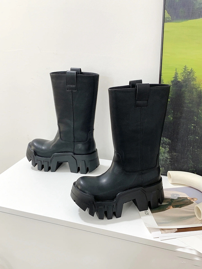 파리 홈 불도저 부츠 마틴 부츠 여성 2024 가을과 겨울 새로운 탱크 두꺼운 밑창 증가 소 가죽 미드 배럴 웨스턴 부츠