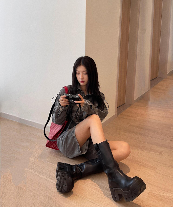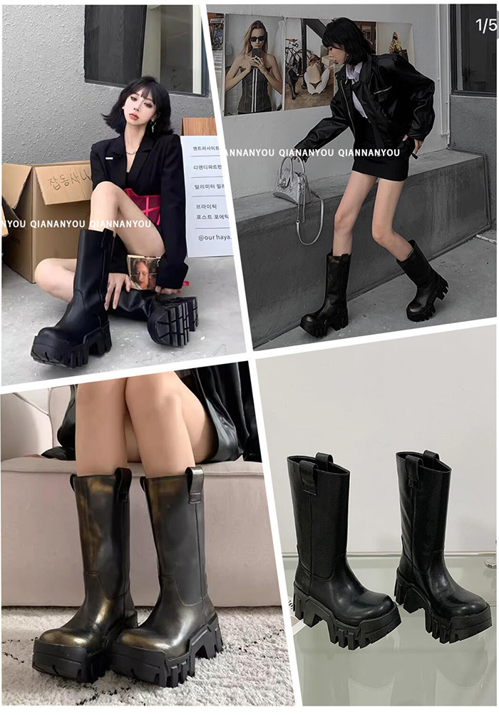 파리 홈 불도저 부츠 마틴 부츠 여성 2024 가을과 겨울 새로운 탱크 두꺼운 밑창 증가 소 가죽 미드 배럴 웨스턴 부츠스토어 가기