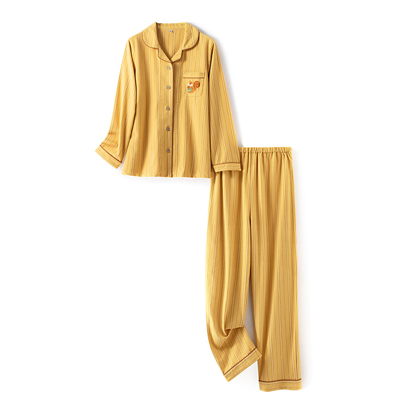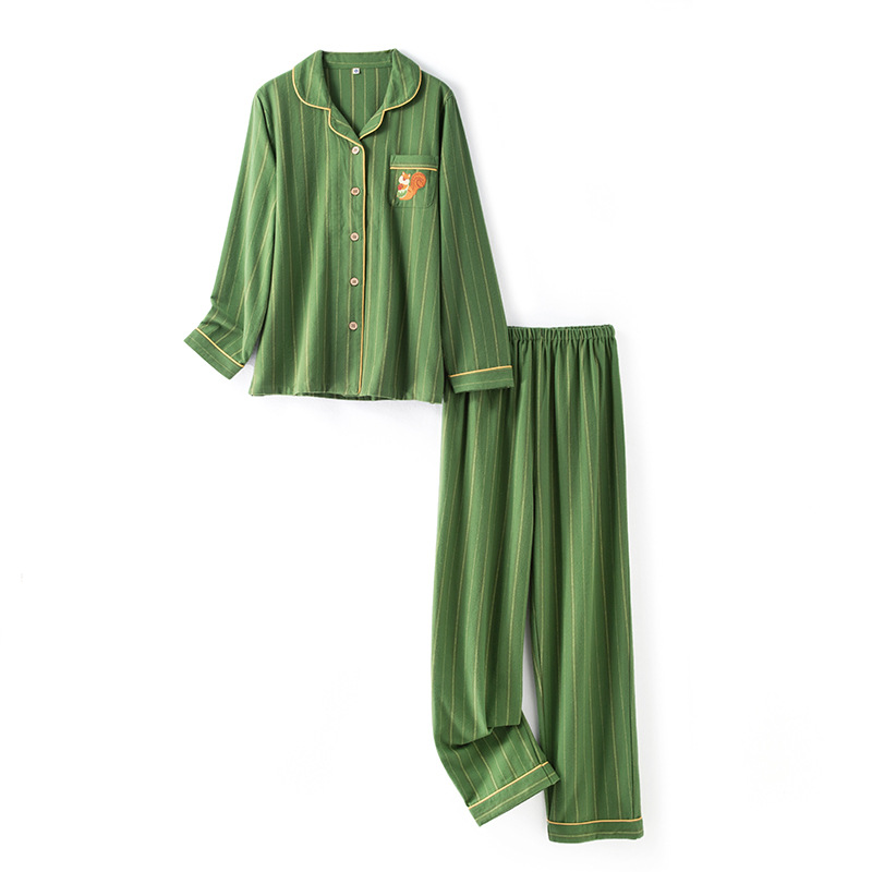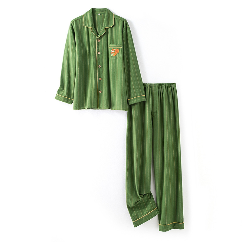 가을 겨울 남녀 커플용 네 가지 색상의 줄무늬 순면 기모 이중 벨벳 잠옷 세트 홈웨어 세트 도매스토어 가기