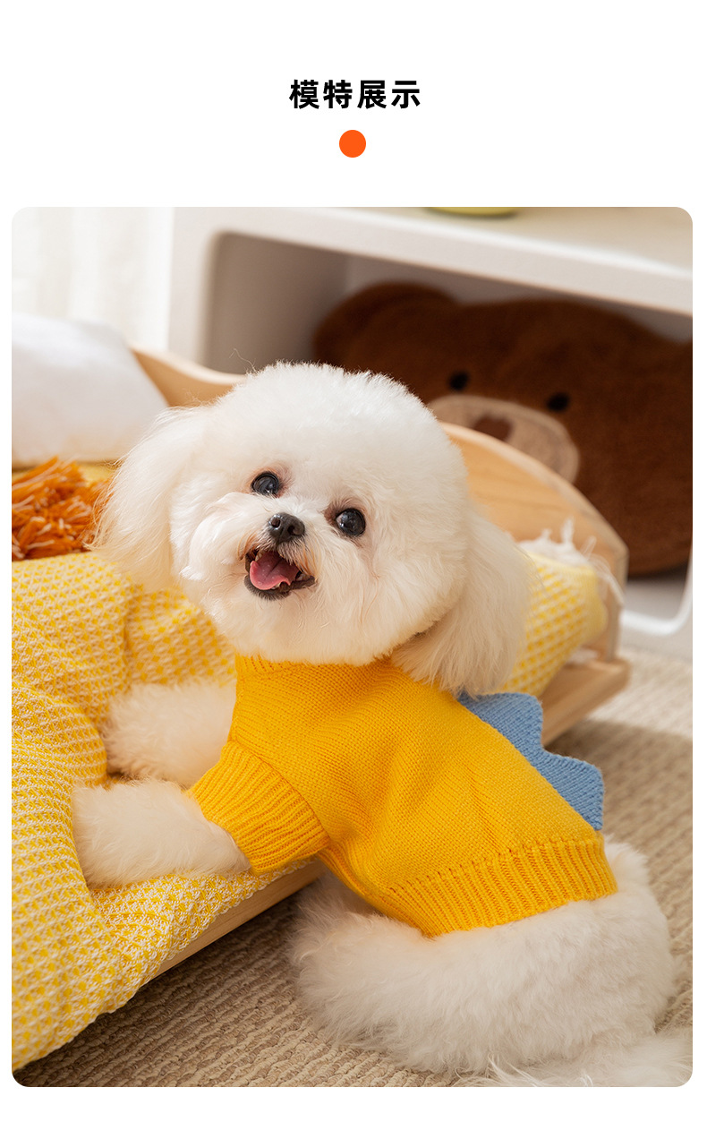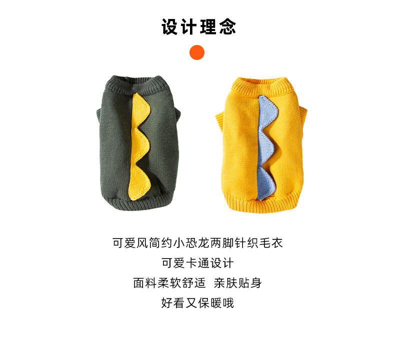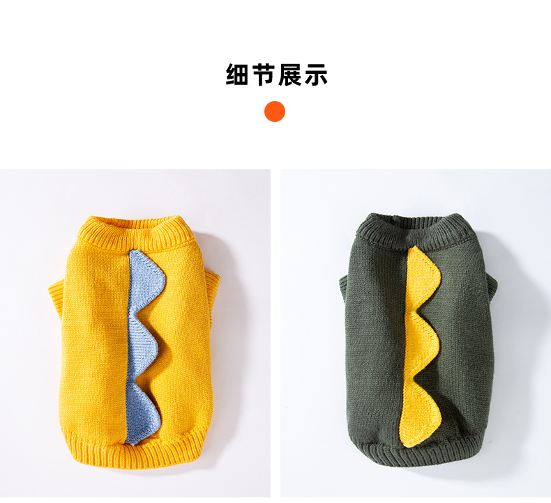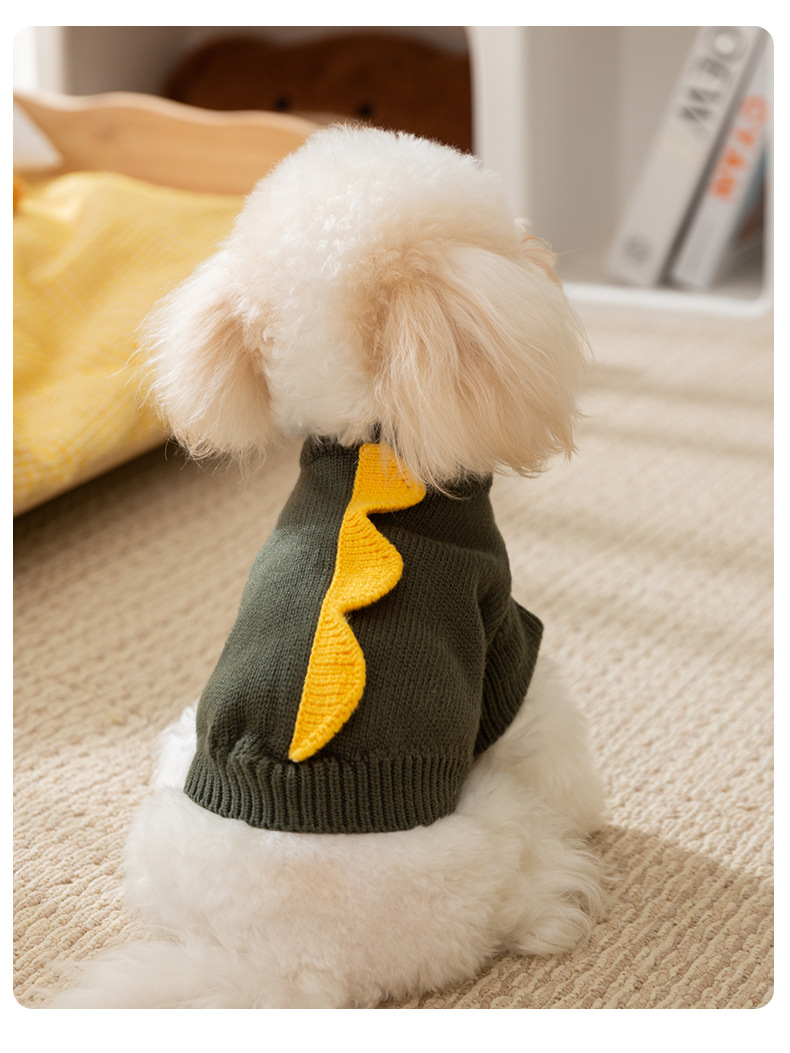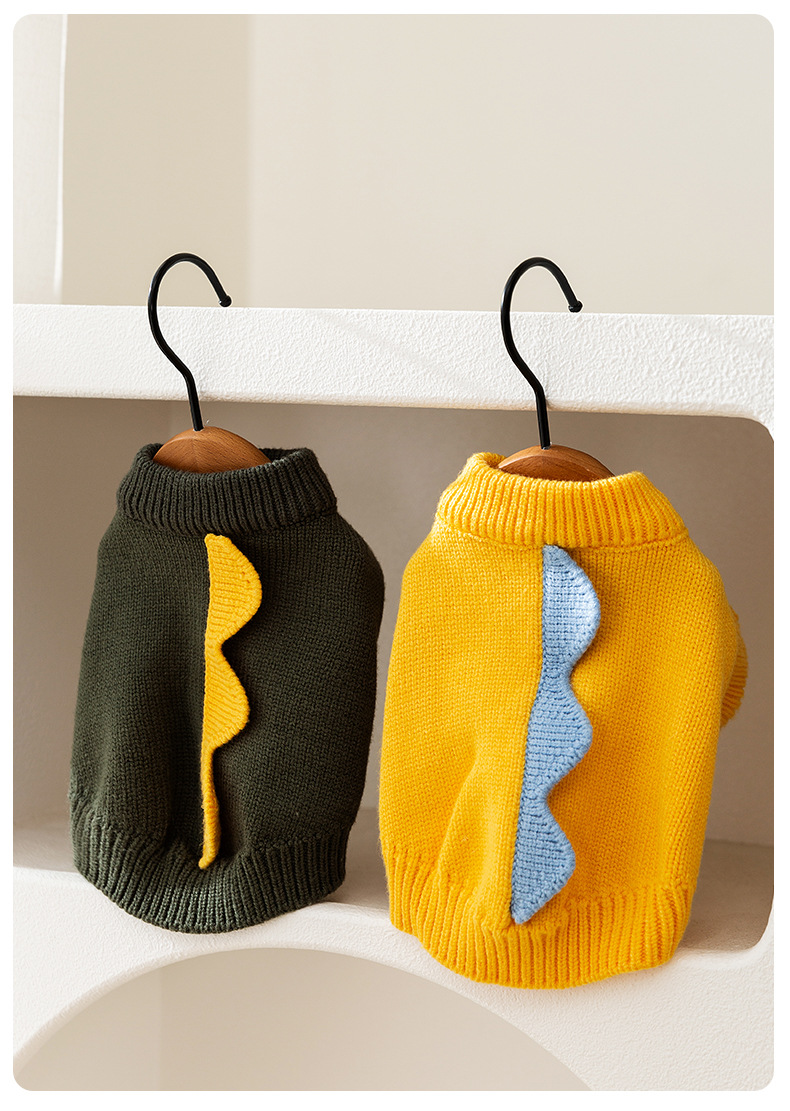 노란색 귀여운 바람 간단한 작은 공룡 두 다리 니트 스웨터 작은 개 고양이 개 개 옷 도매스토어 가기