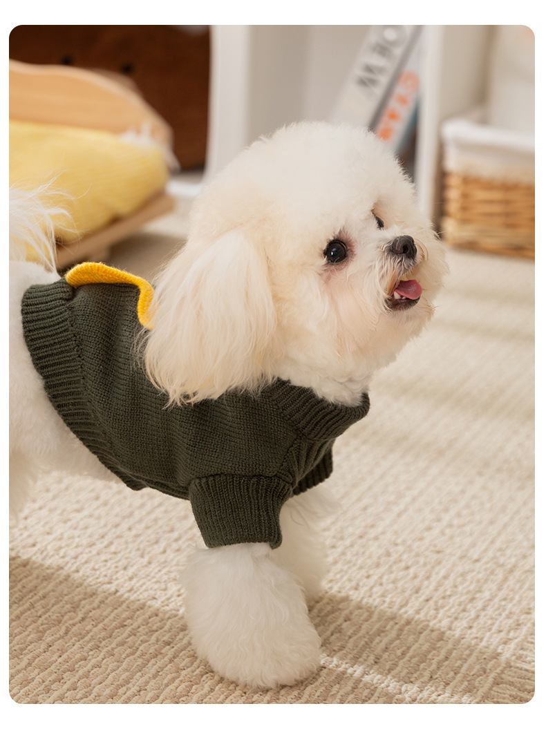 노란색 귀여운 바람 간단한 작은 공룡 두 다리 니트 스웨터 작은 개 고양이 개 개 옷 도매