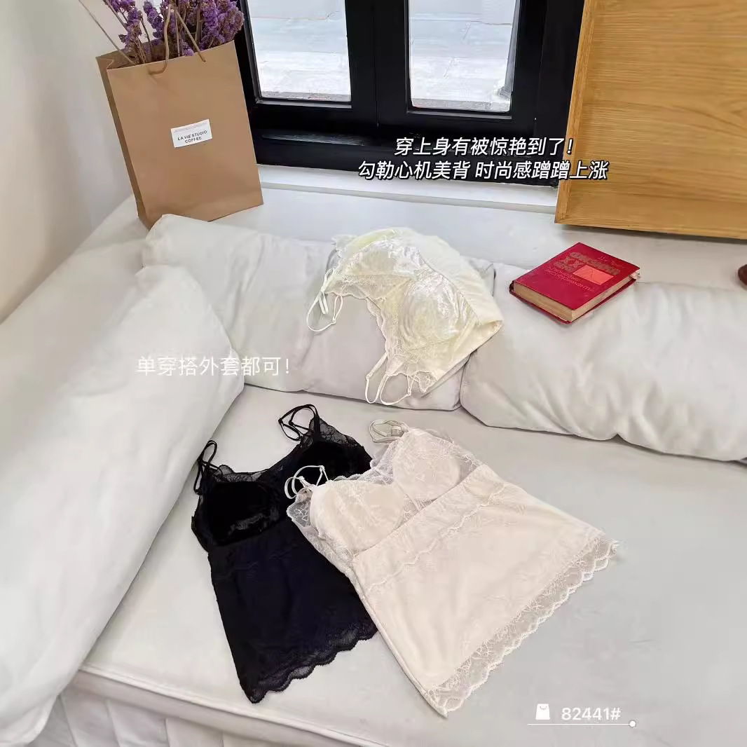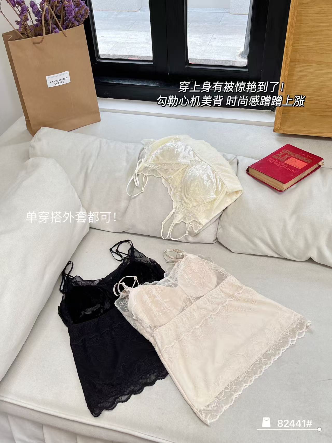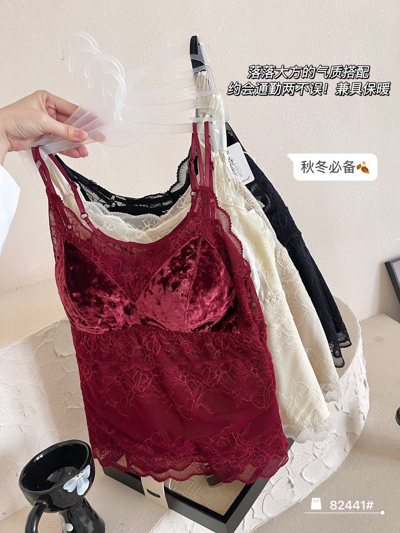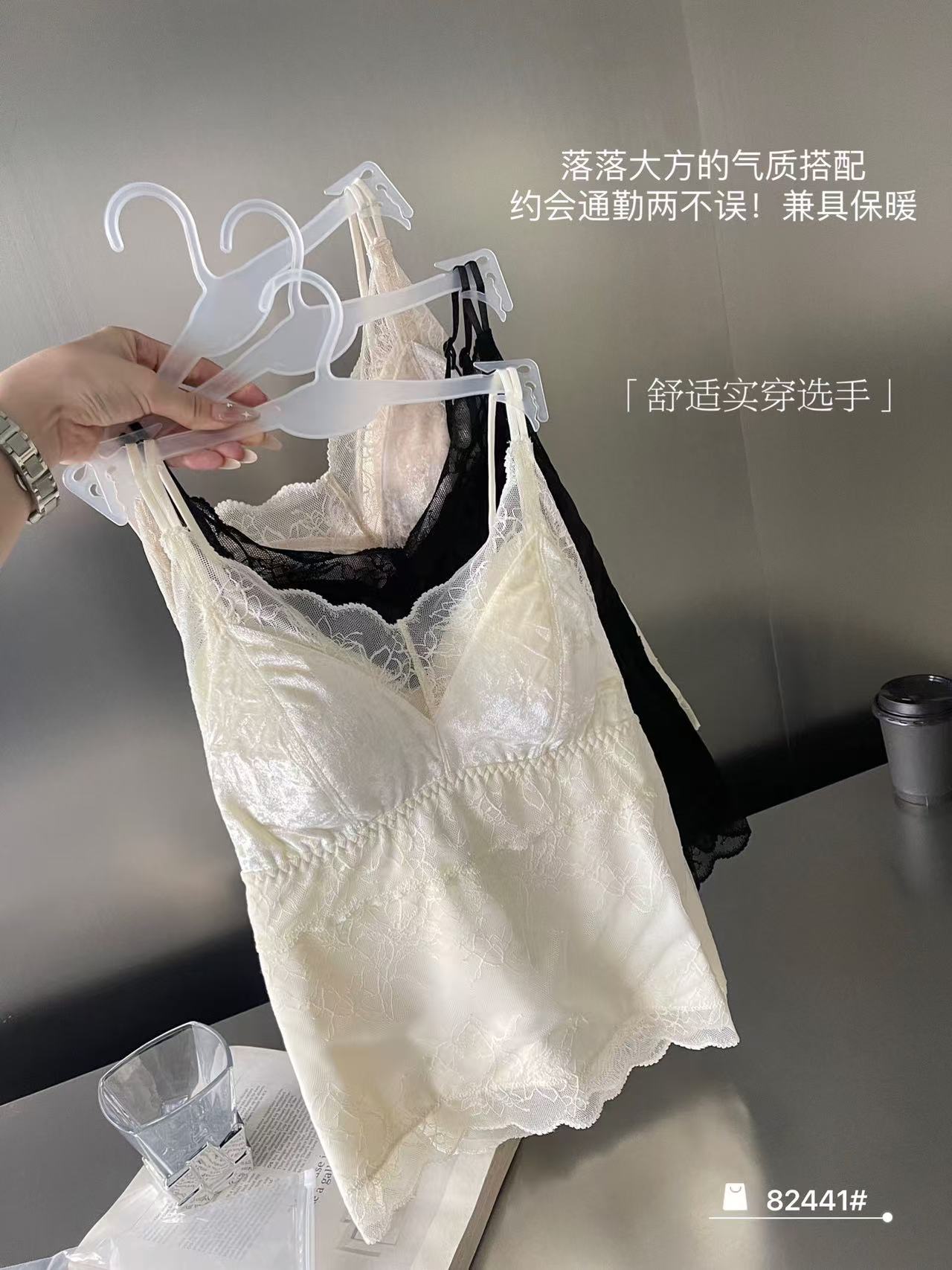 TikTok 82441 벨벳 레이스 아름다운 등 슬링 여성의 가을 겨울 새 조끼 가슴 패드 외부와 플러스 사이즈 속옷 착용스토어 가기