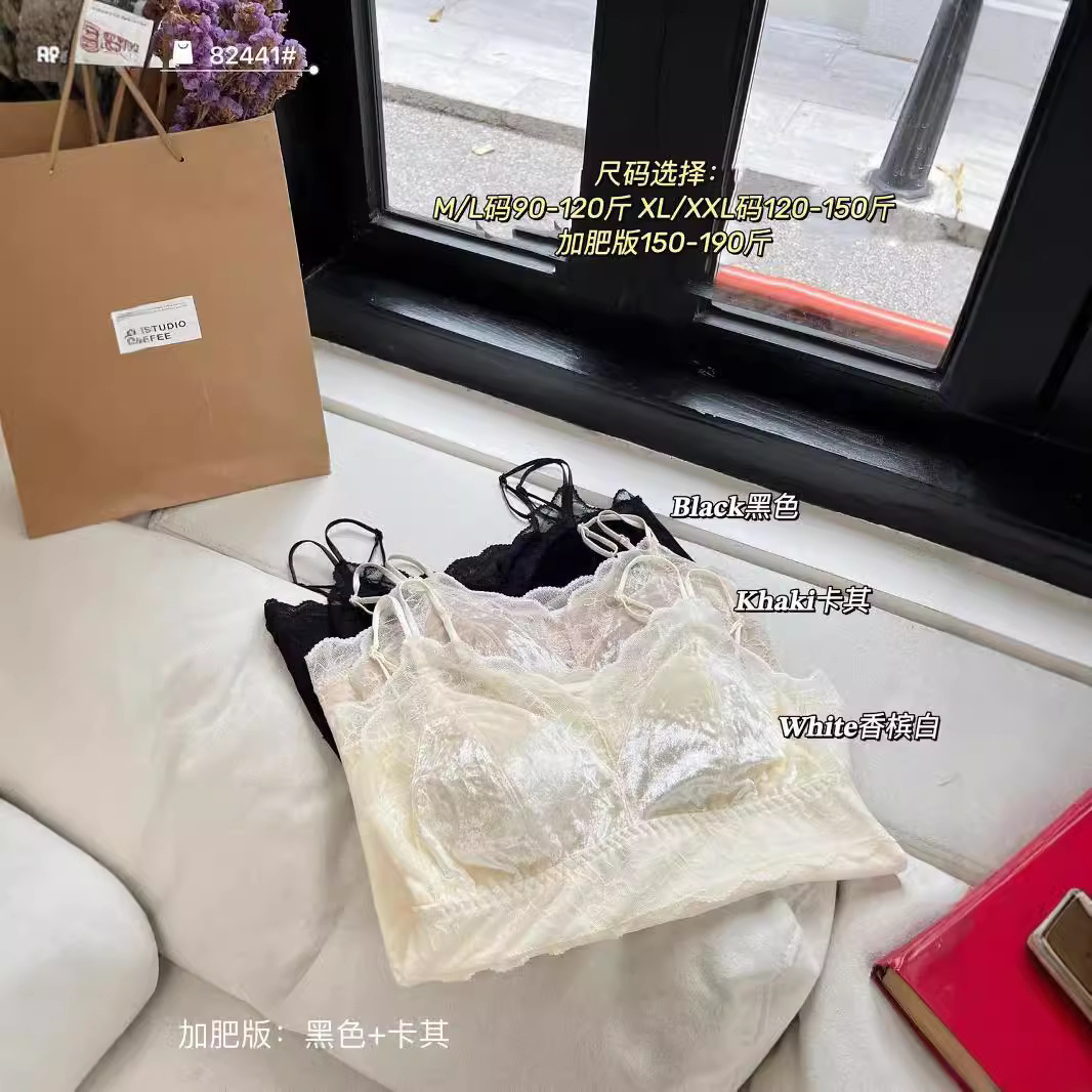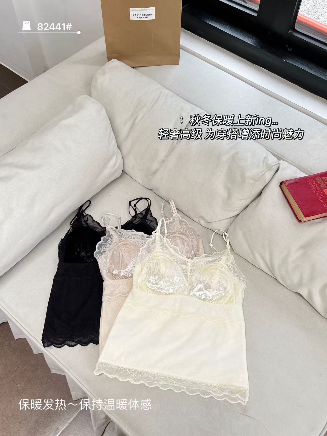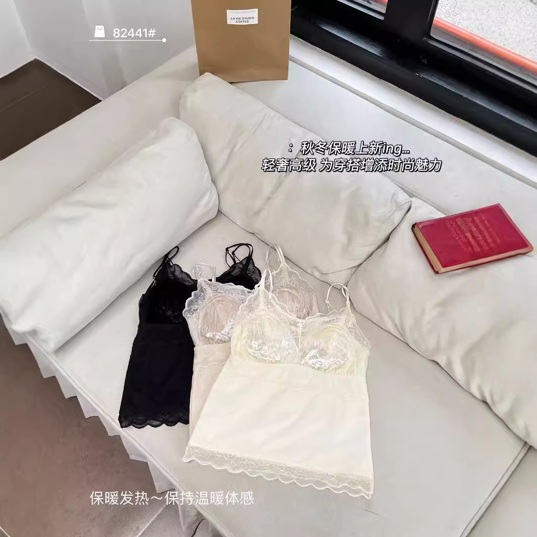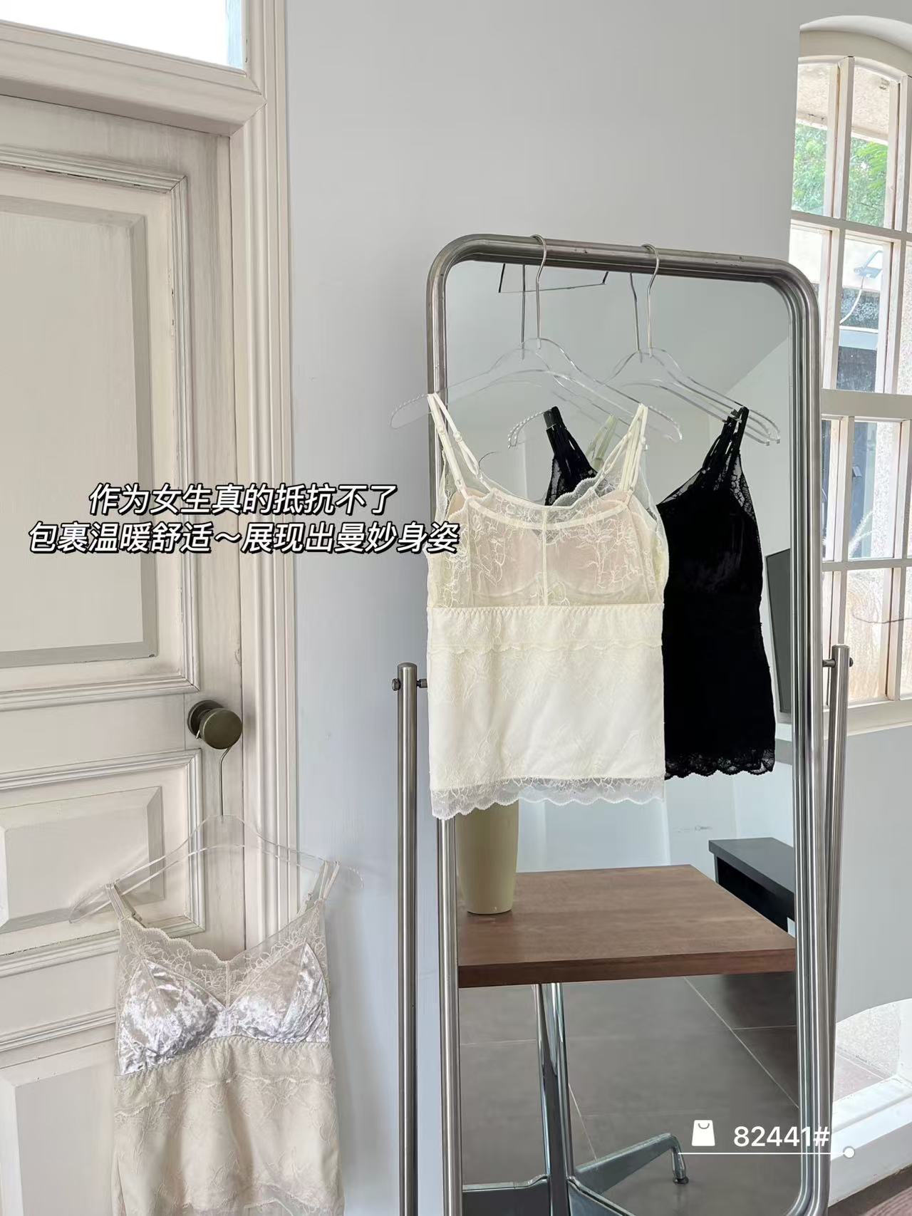 TikTok 82441 벨벳 레이스 아름다운 등 슬링 여성의 가을 겨울 새 조끼 가슴 패드 외부와 플러스 사이즈 속옷 착용스토어 가기
