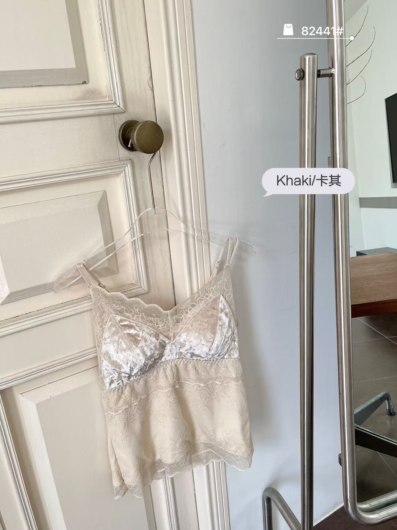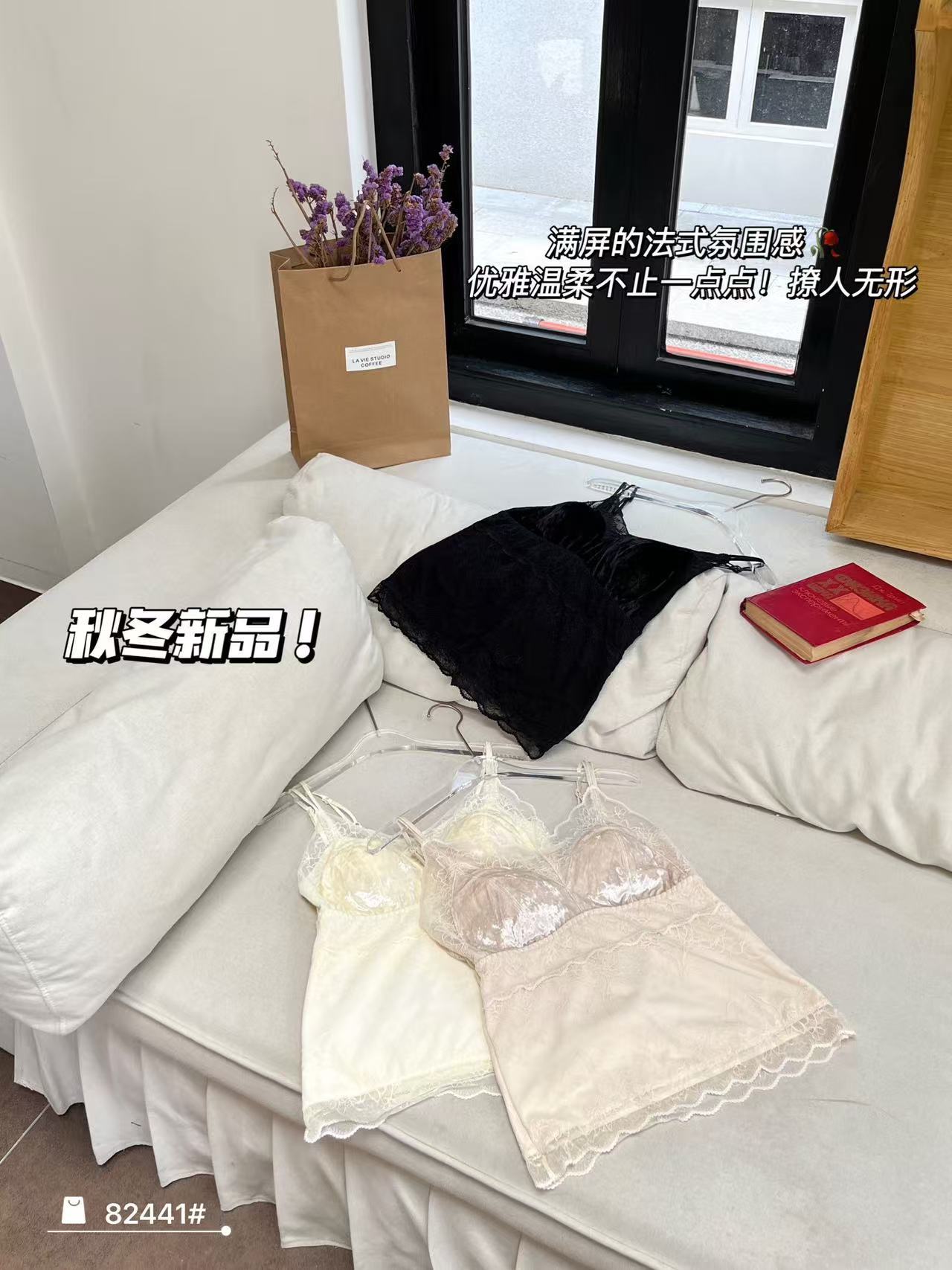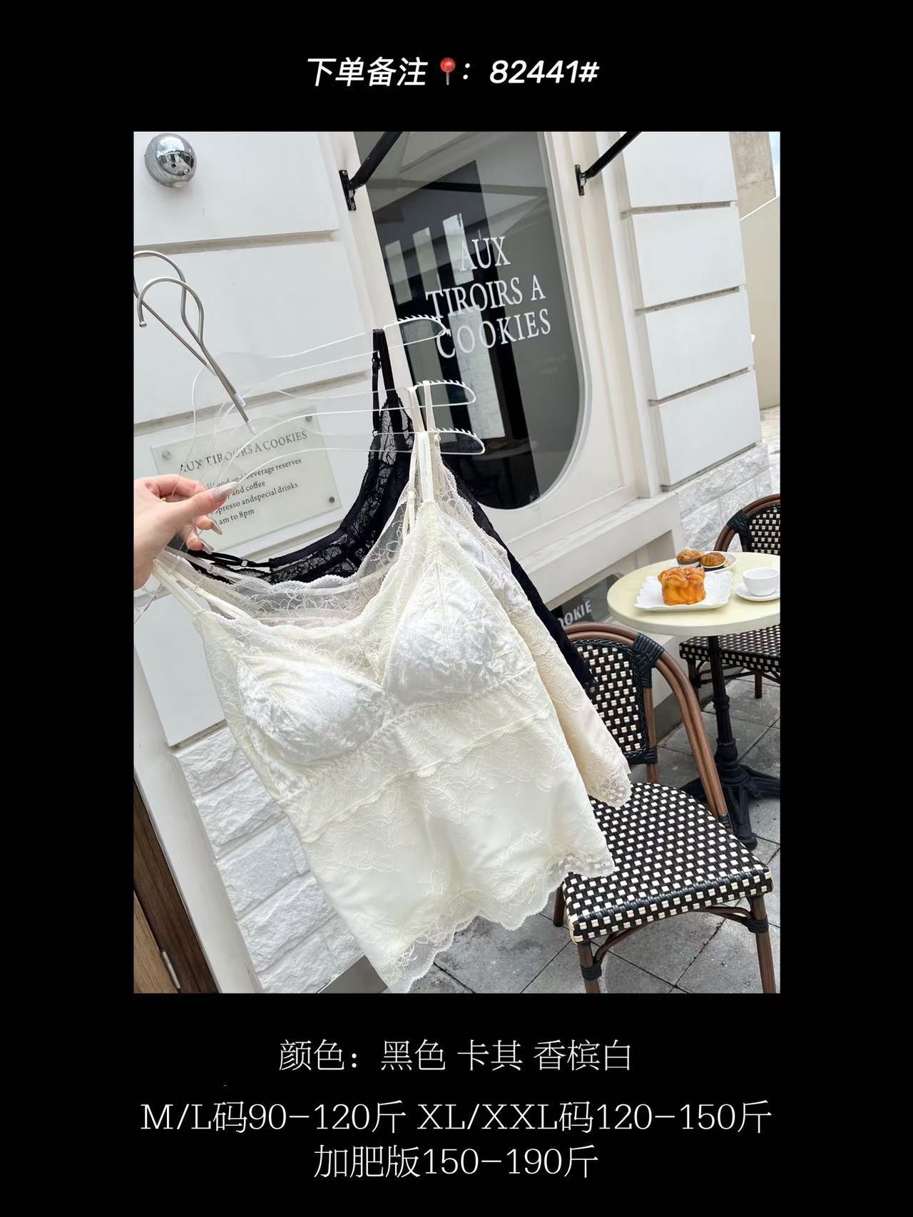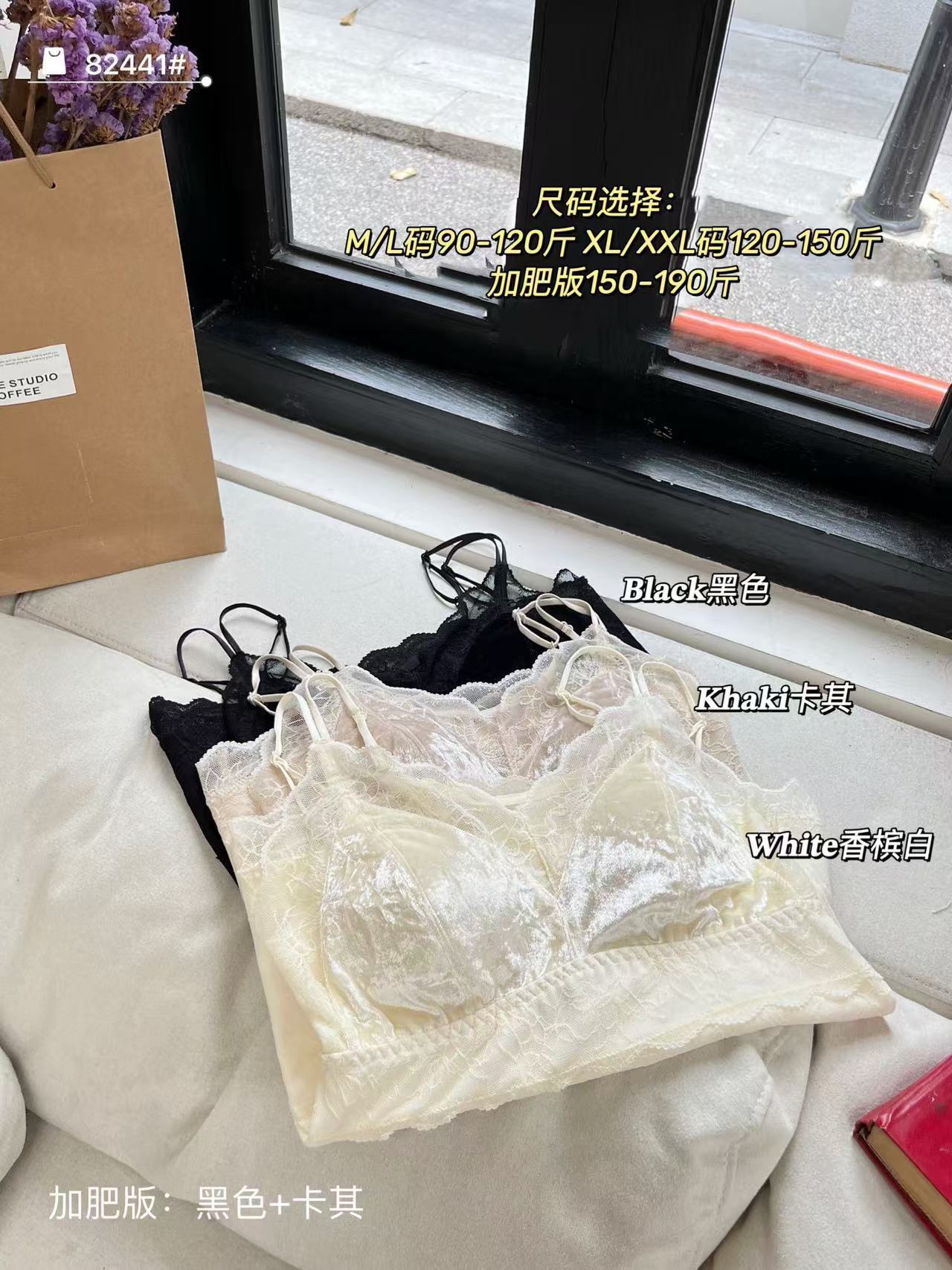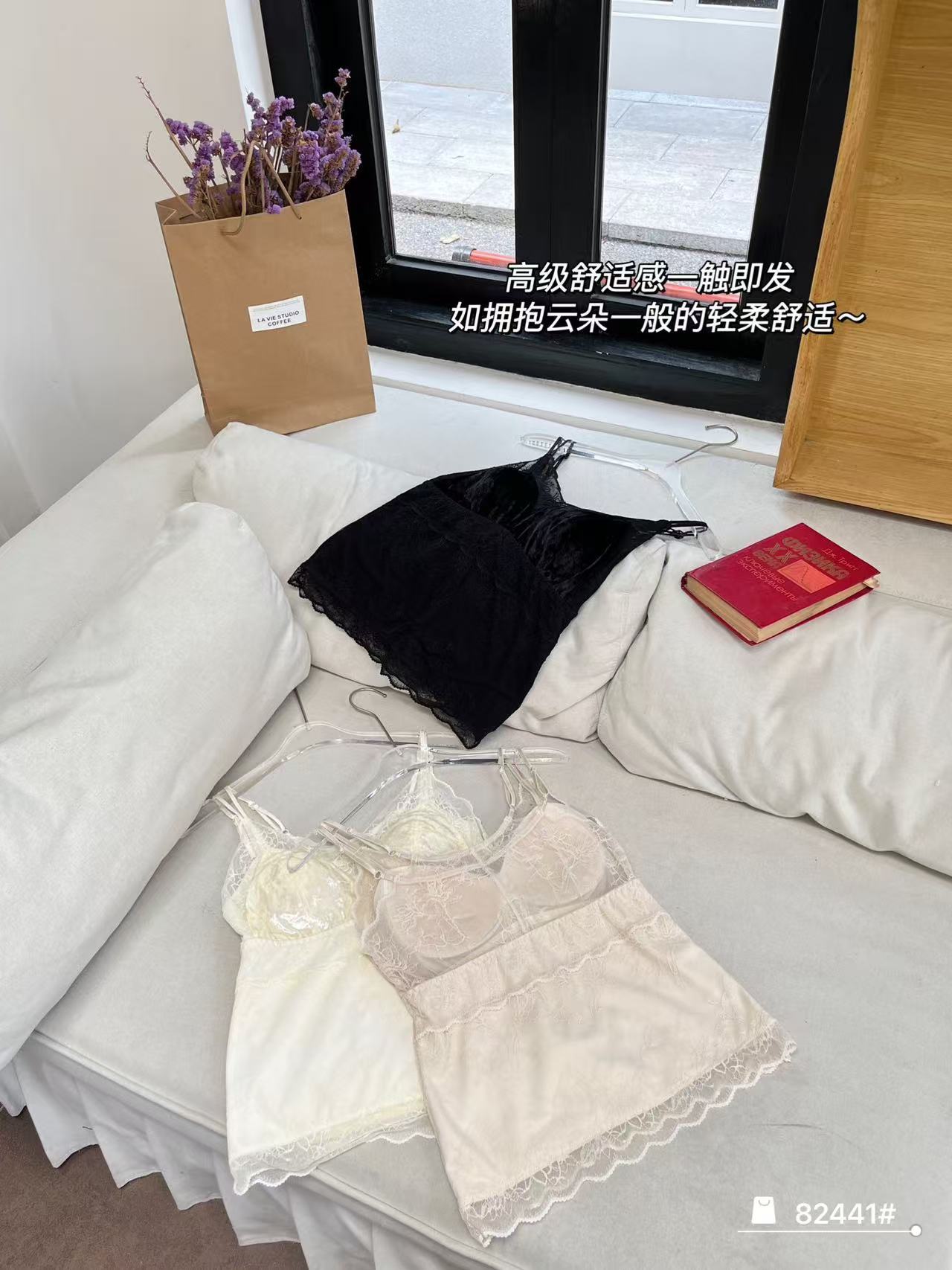 TikTok 82441 벨벳 레이스 아름다운 등 슬링 여성의 가을 겨울 새 조끼 가슴 패드 외부와 플러스 사이즈 속옷 착용스토어 가기