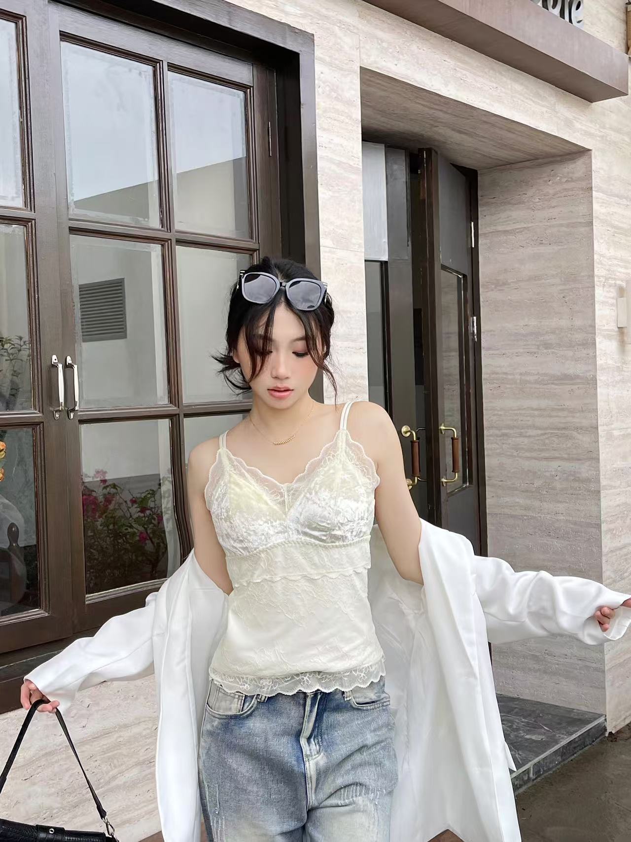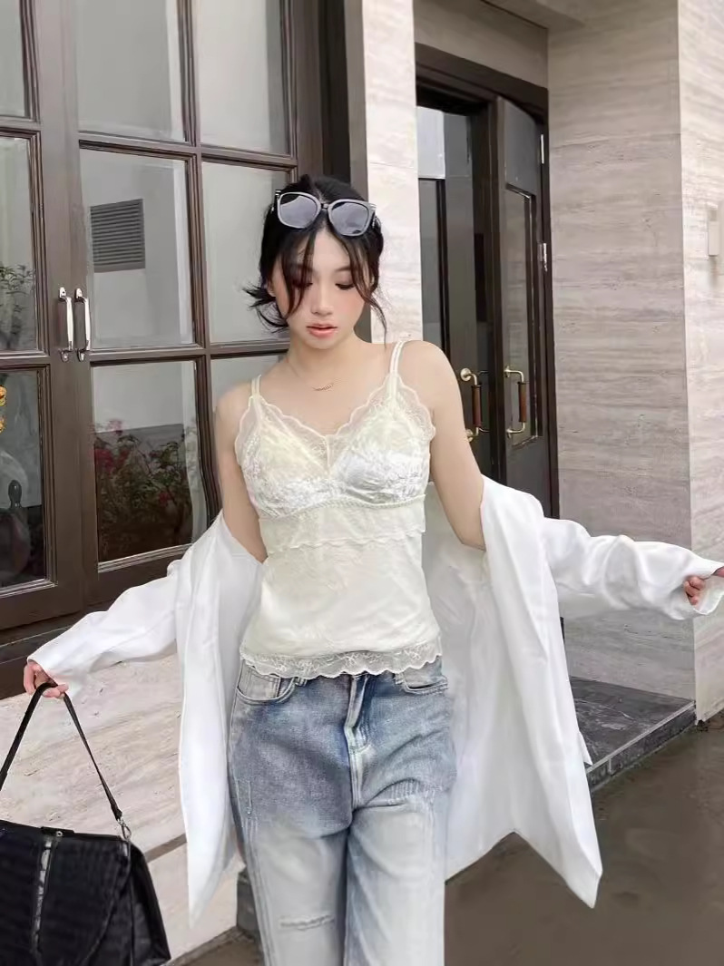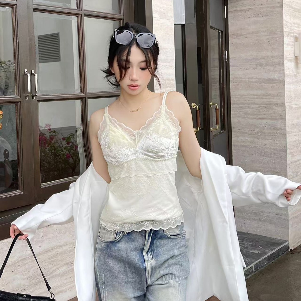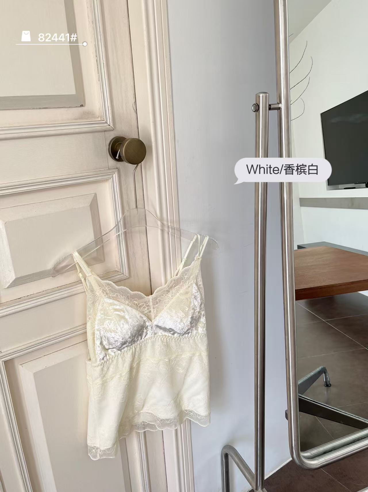 TikTok 82441 벨벳 레이스 아름다운 등 슬링 여성의 가을 겨울 새 조끼 가슴 패드 외부와 플러스 사이즈 속옷 착용스토어 가기