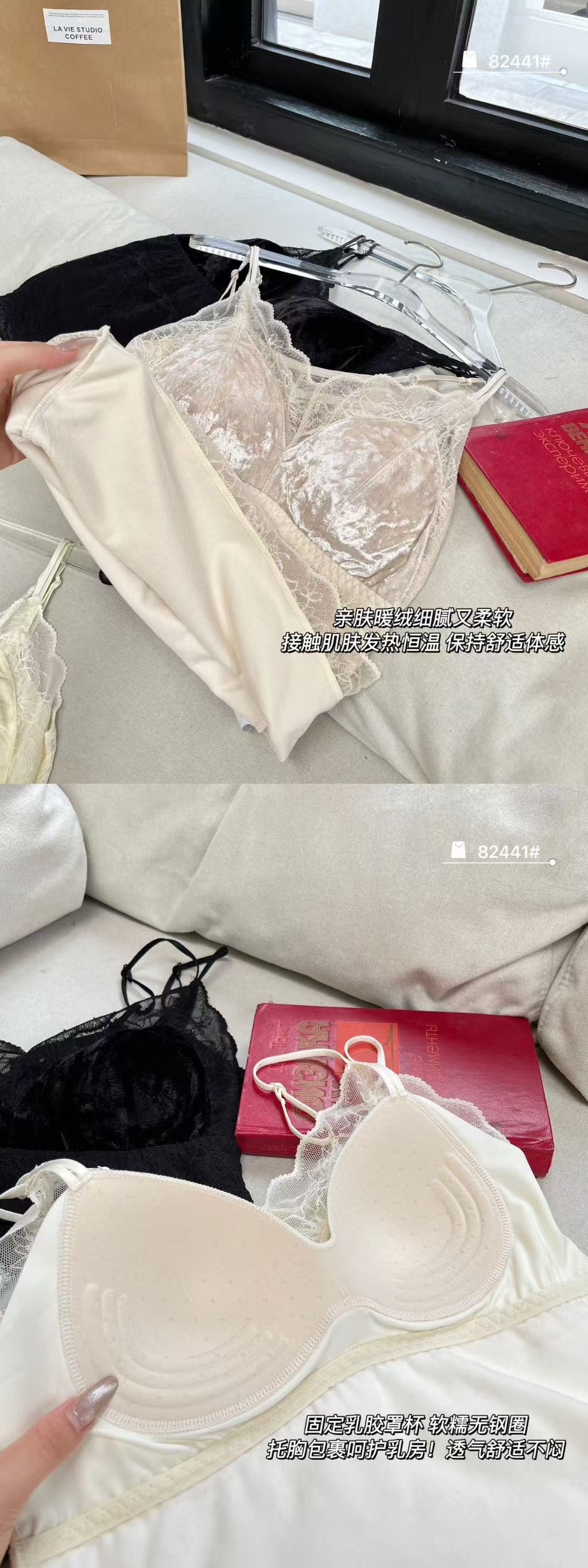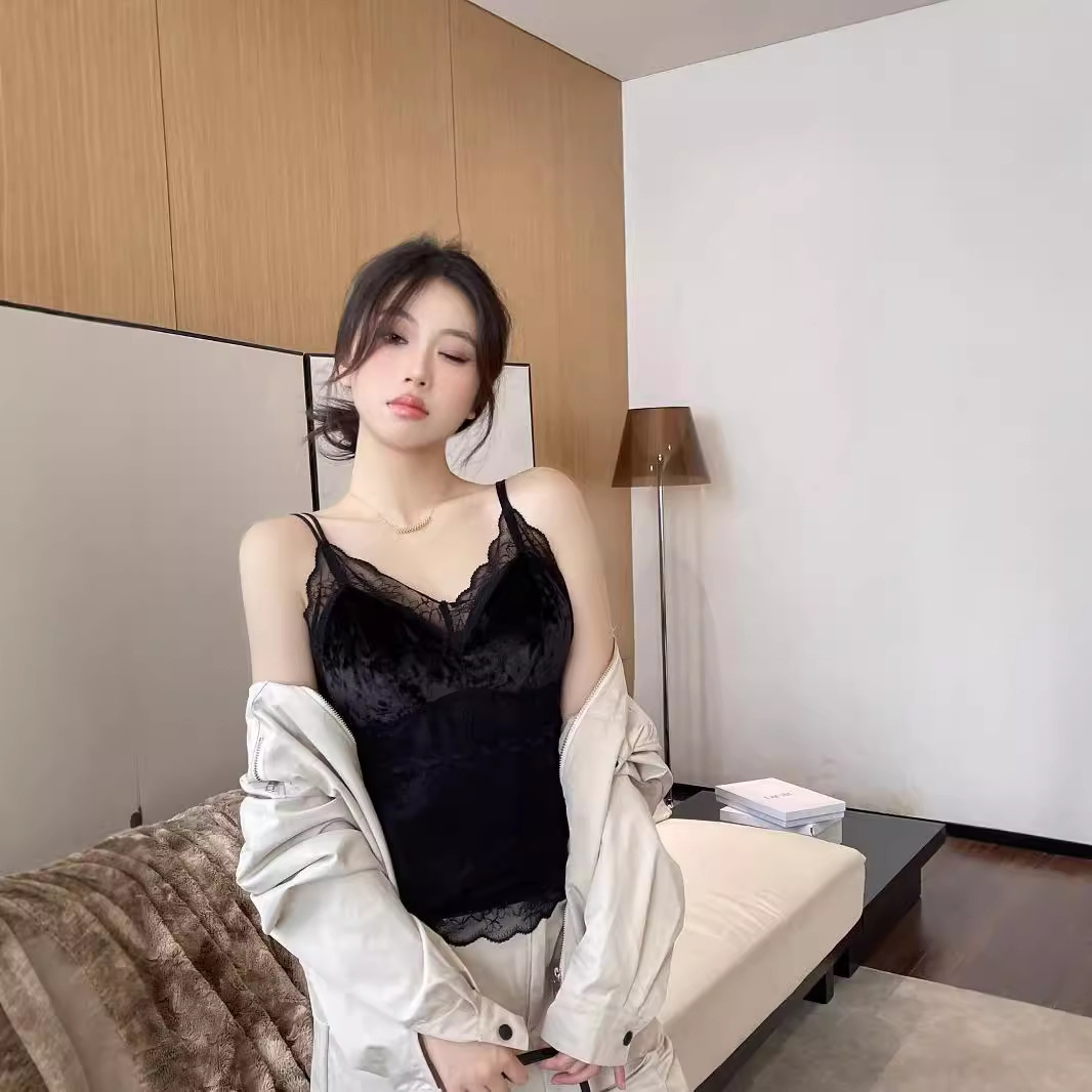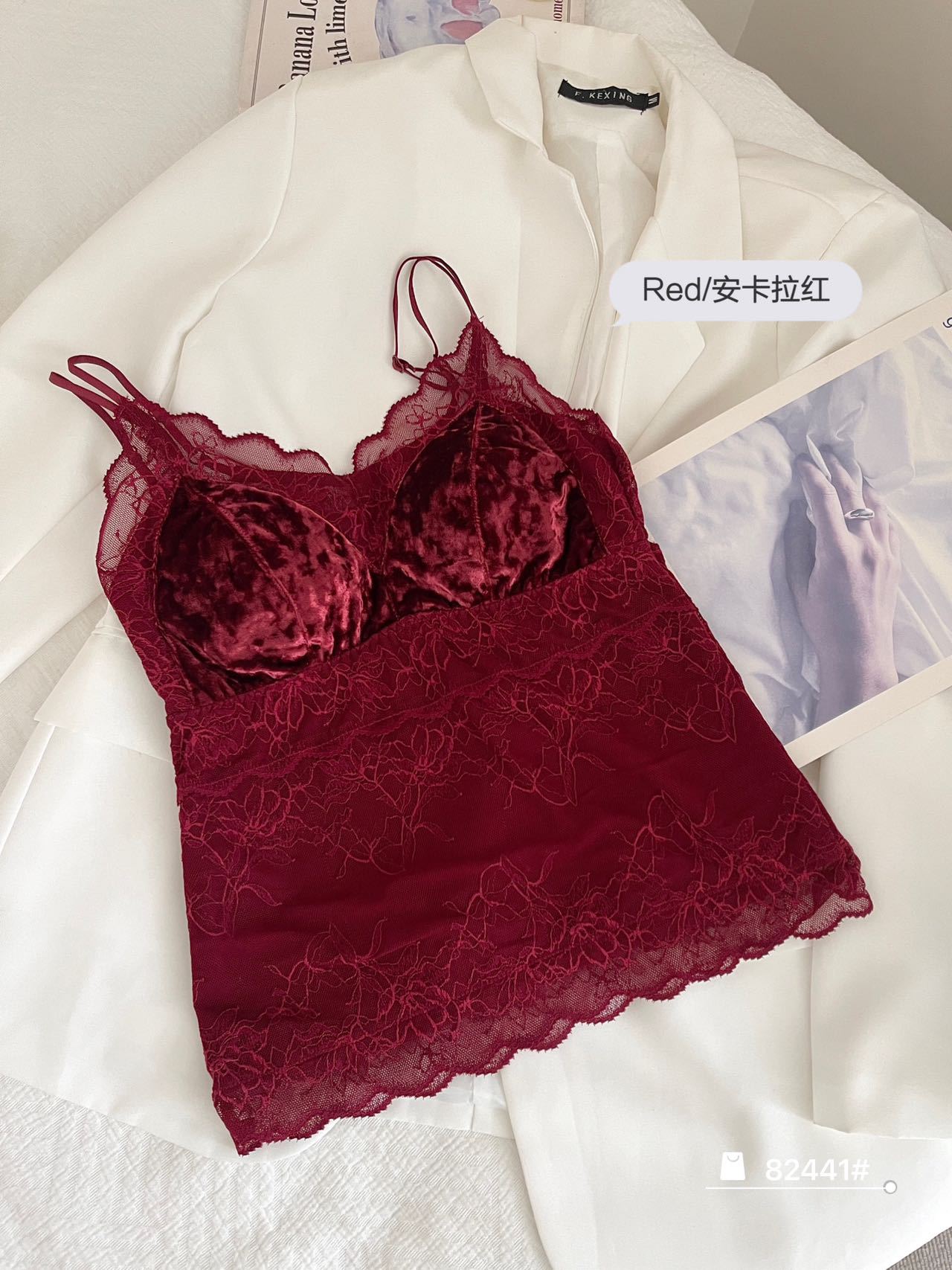 TikTok 82441 벨벳 레이스 아름다운 등 슬링 여성의 가을 겨울 새 조끼 가슴 패드 외부와 플러스 사이즈 속옷 착용