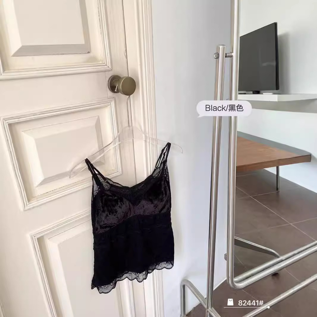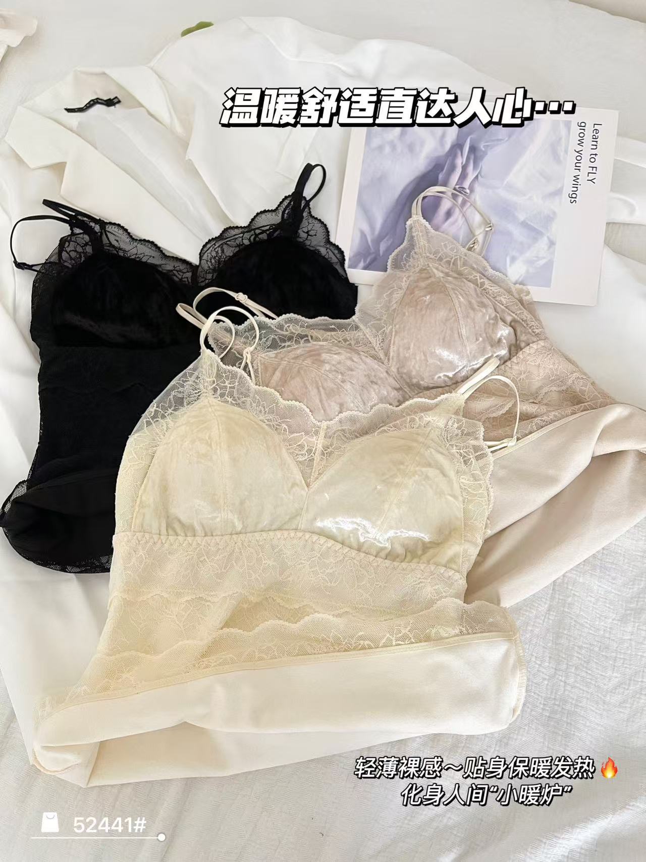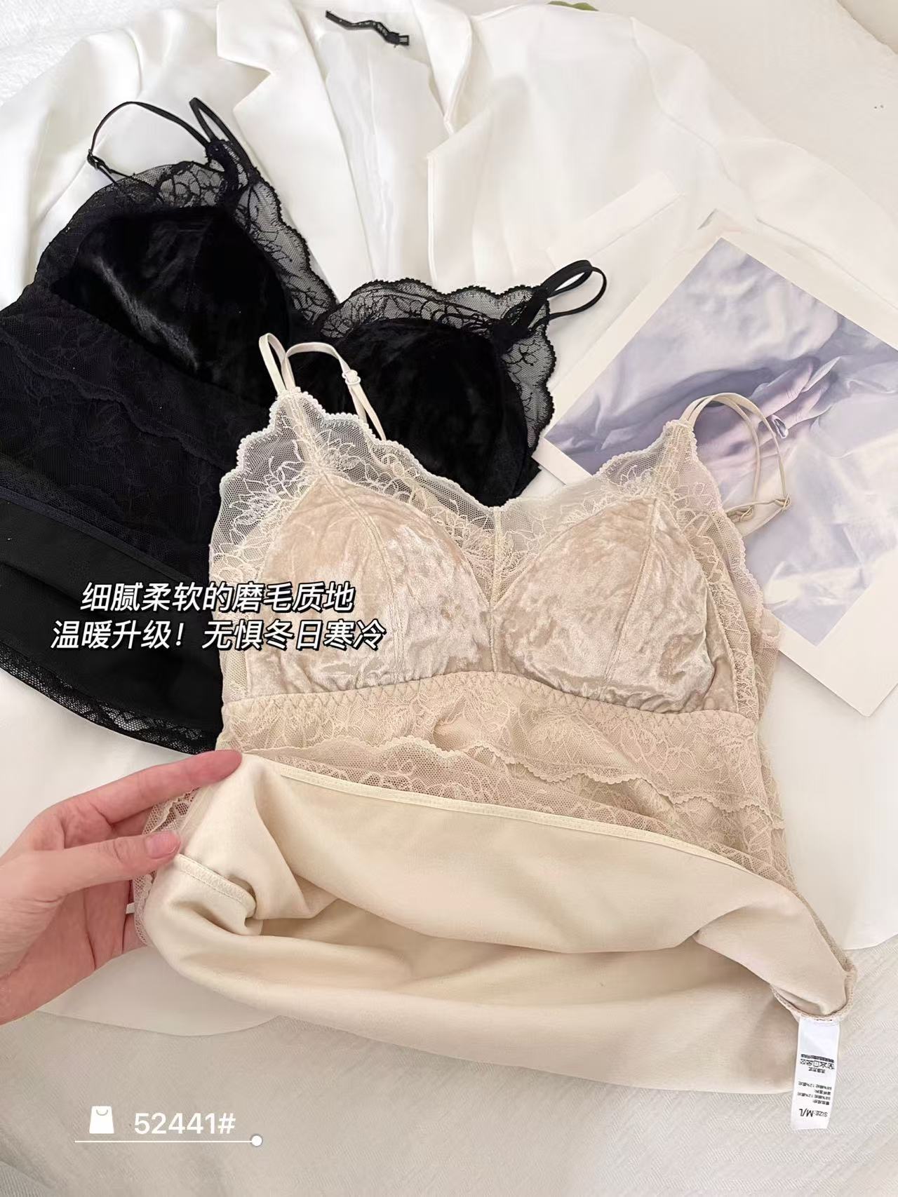 TikTok 82441 벨벳 레이스 아름다운 등 슬링 여성의 가을 겨울 새 조끼 가슴 패드 외부와 플러스 사이즈 속옷 착용