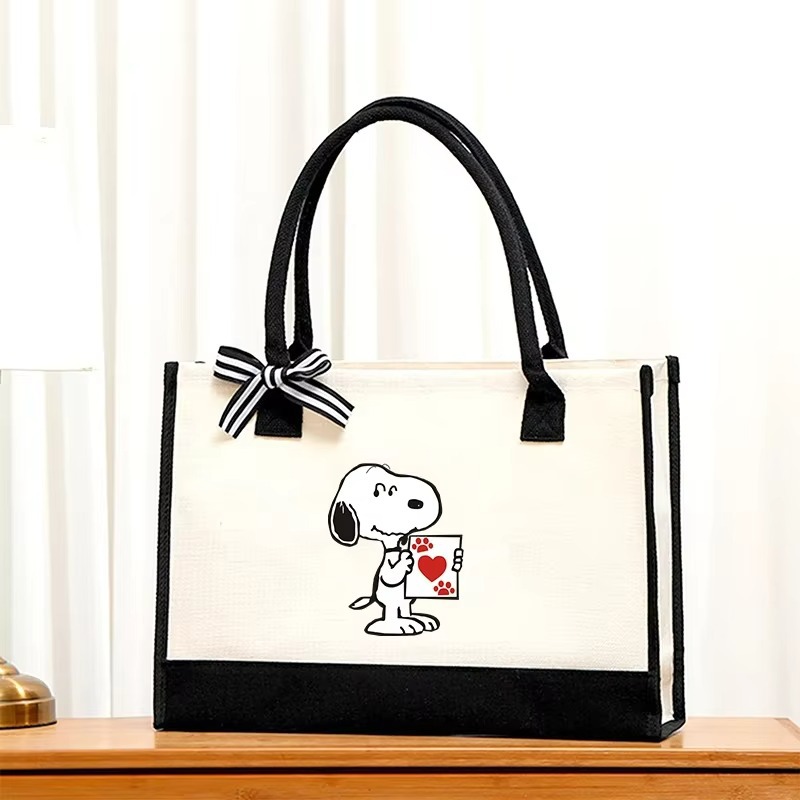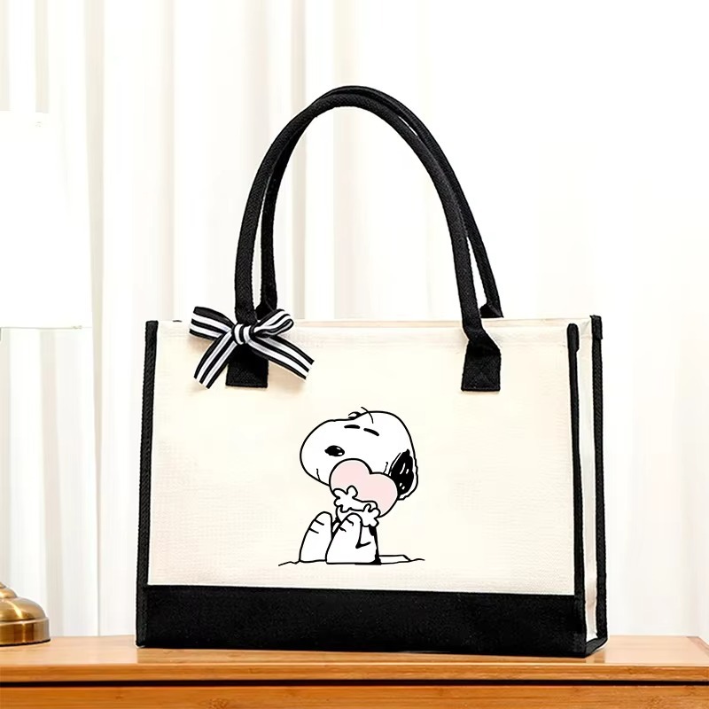 국경 간 핫 스누피 라이스 화이트 만화 캔버스 가방 여성 핸디 토트 백스토어 가기