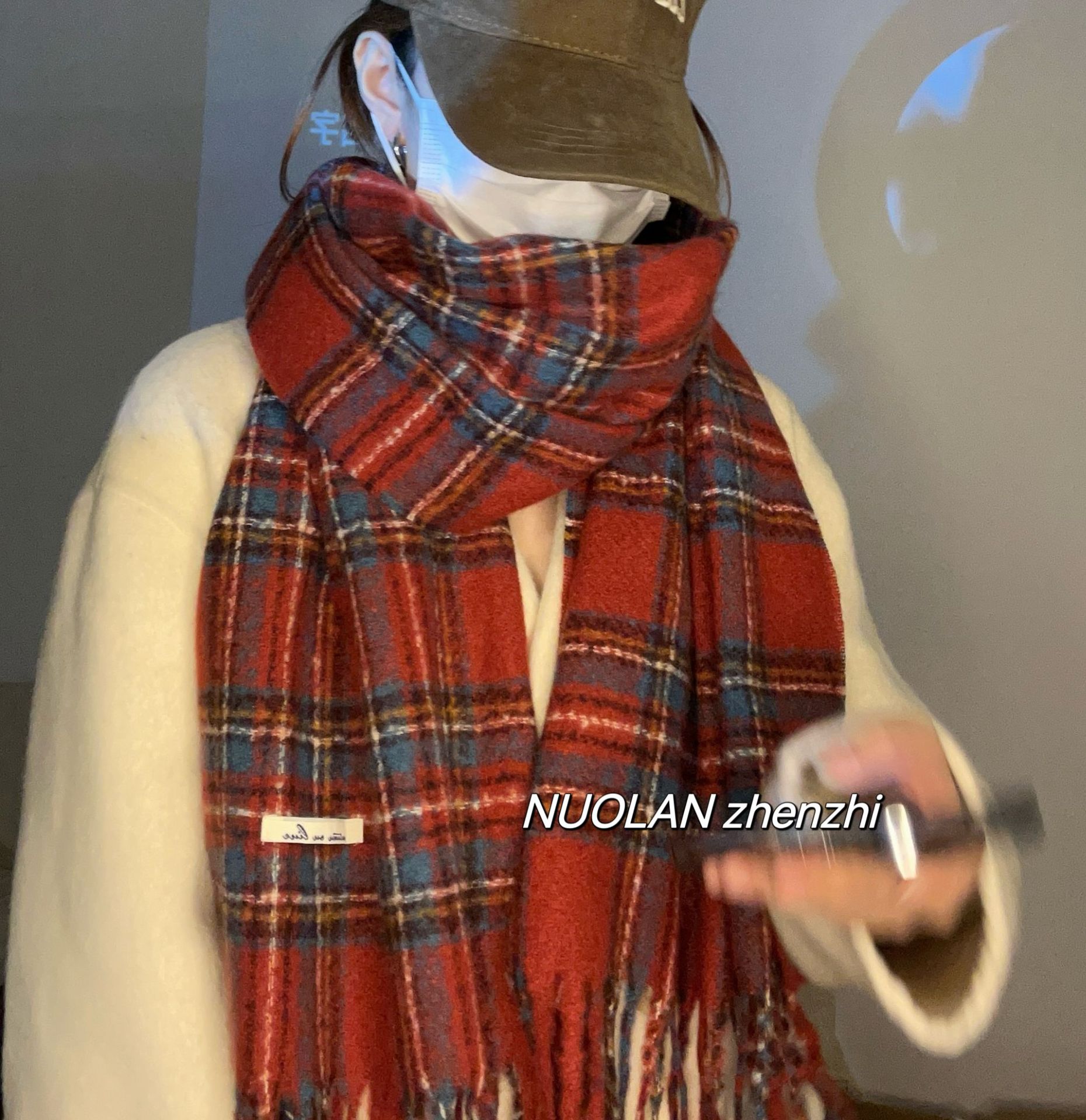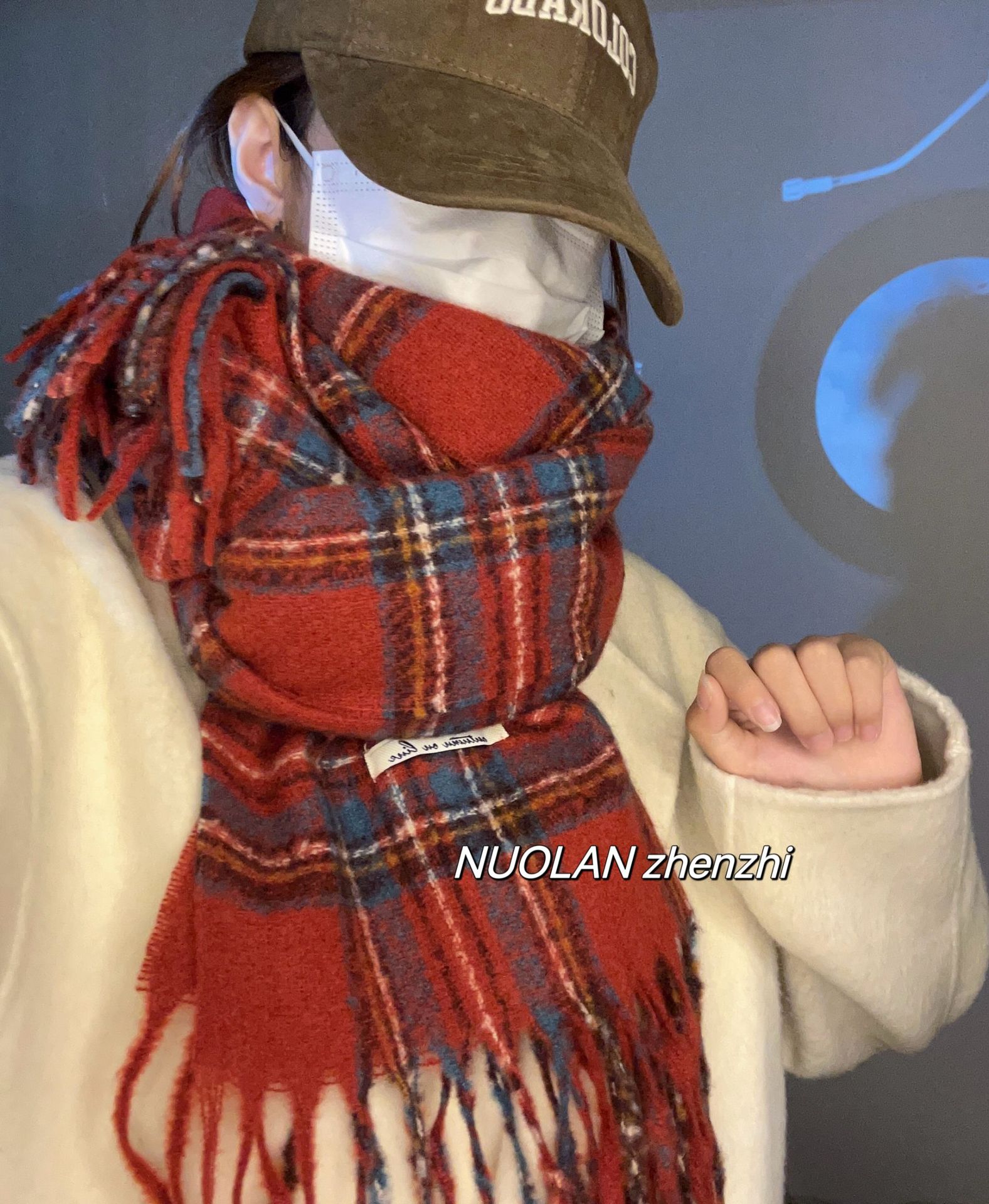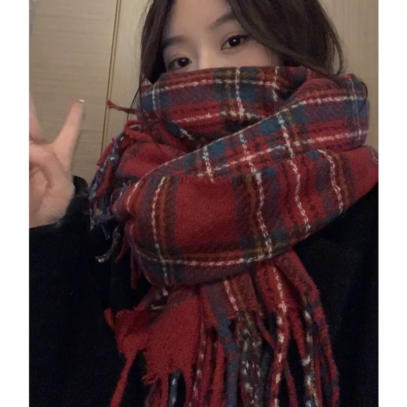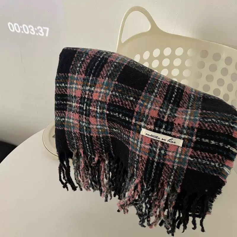 크리스마스 블랙 핑크 스카프 ~ 신년 레드 인 틈새 스카프 겨울 한국 조커 커플 남성 조커 학생 스카프스토어 가기