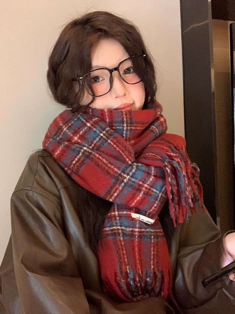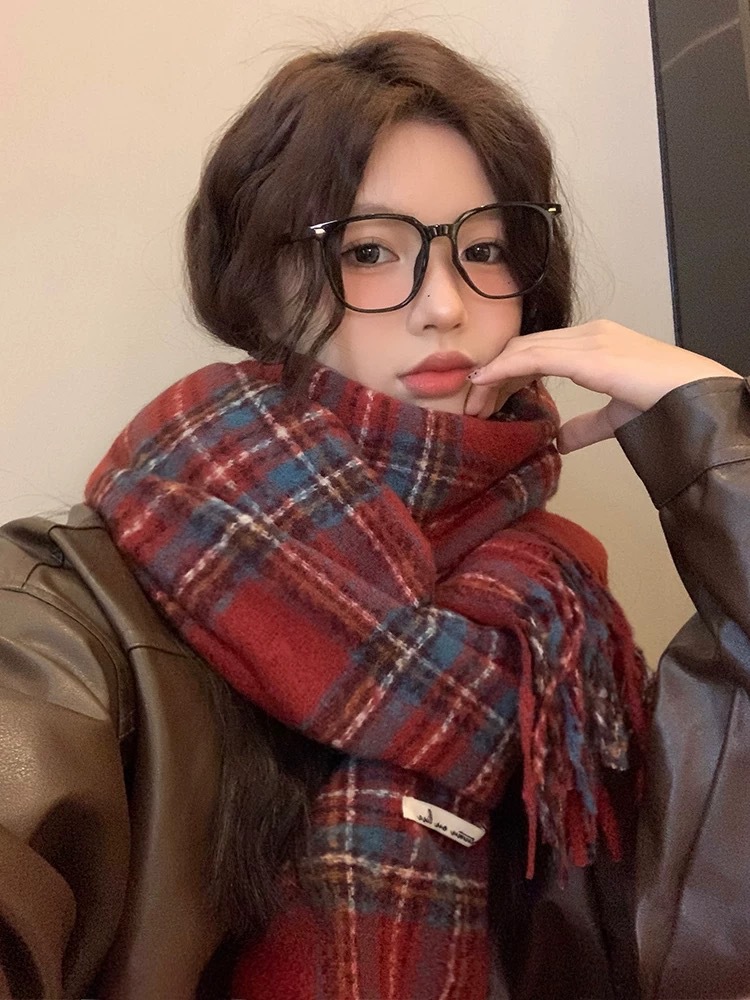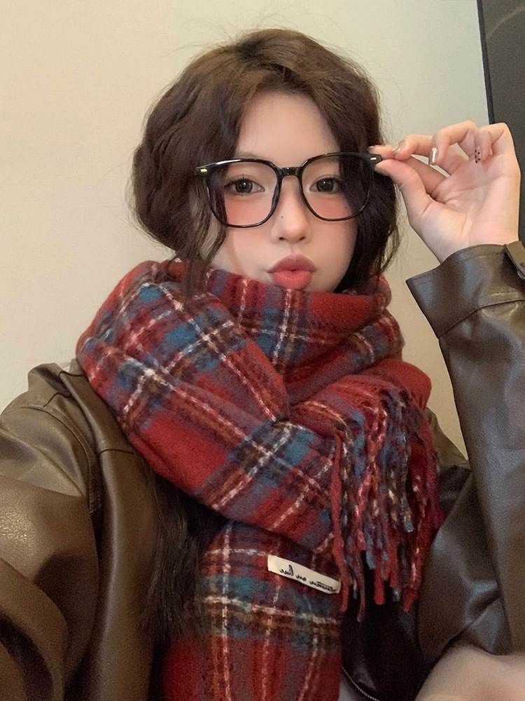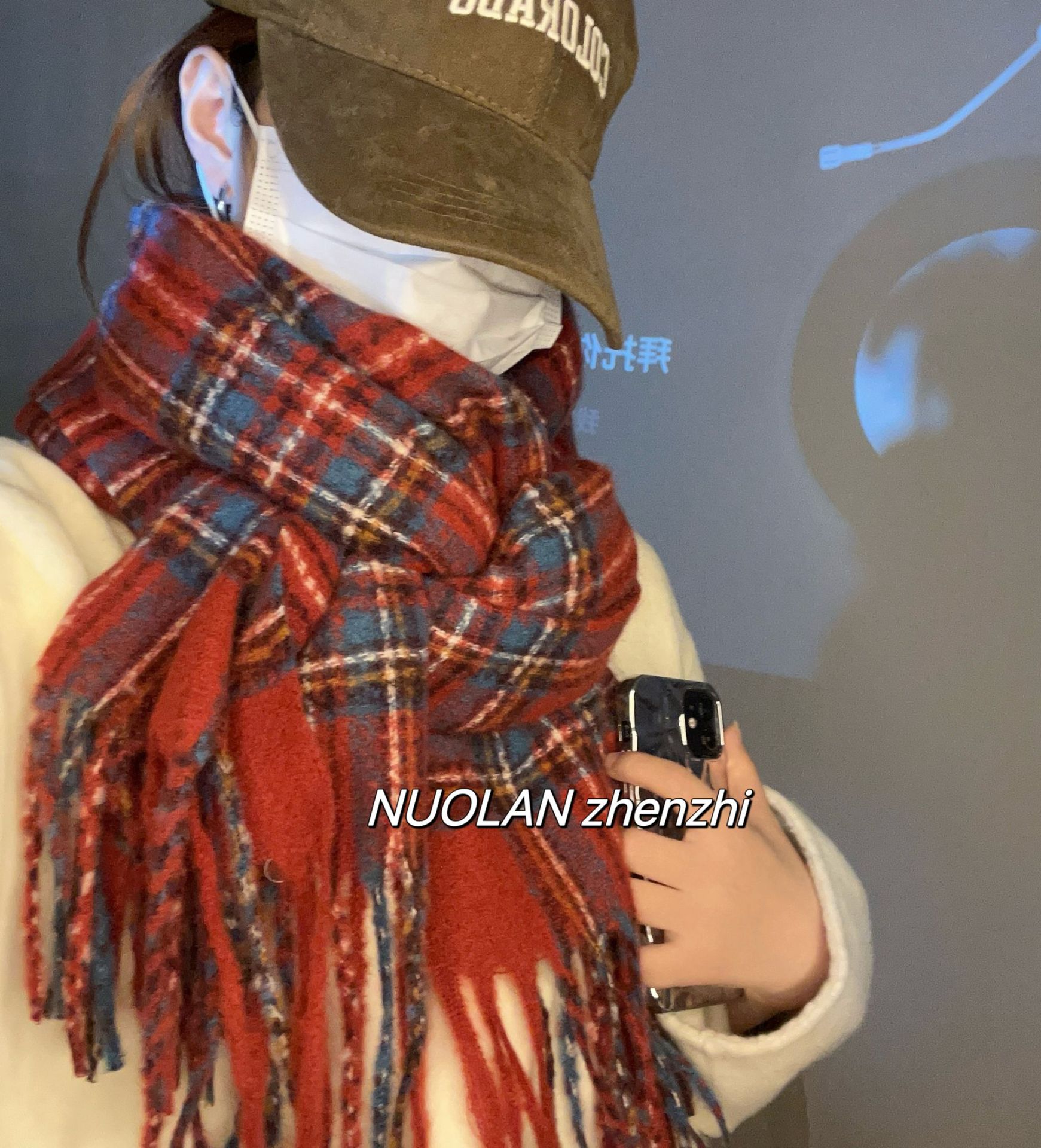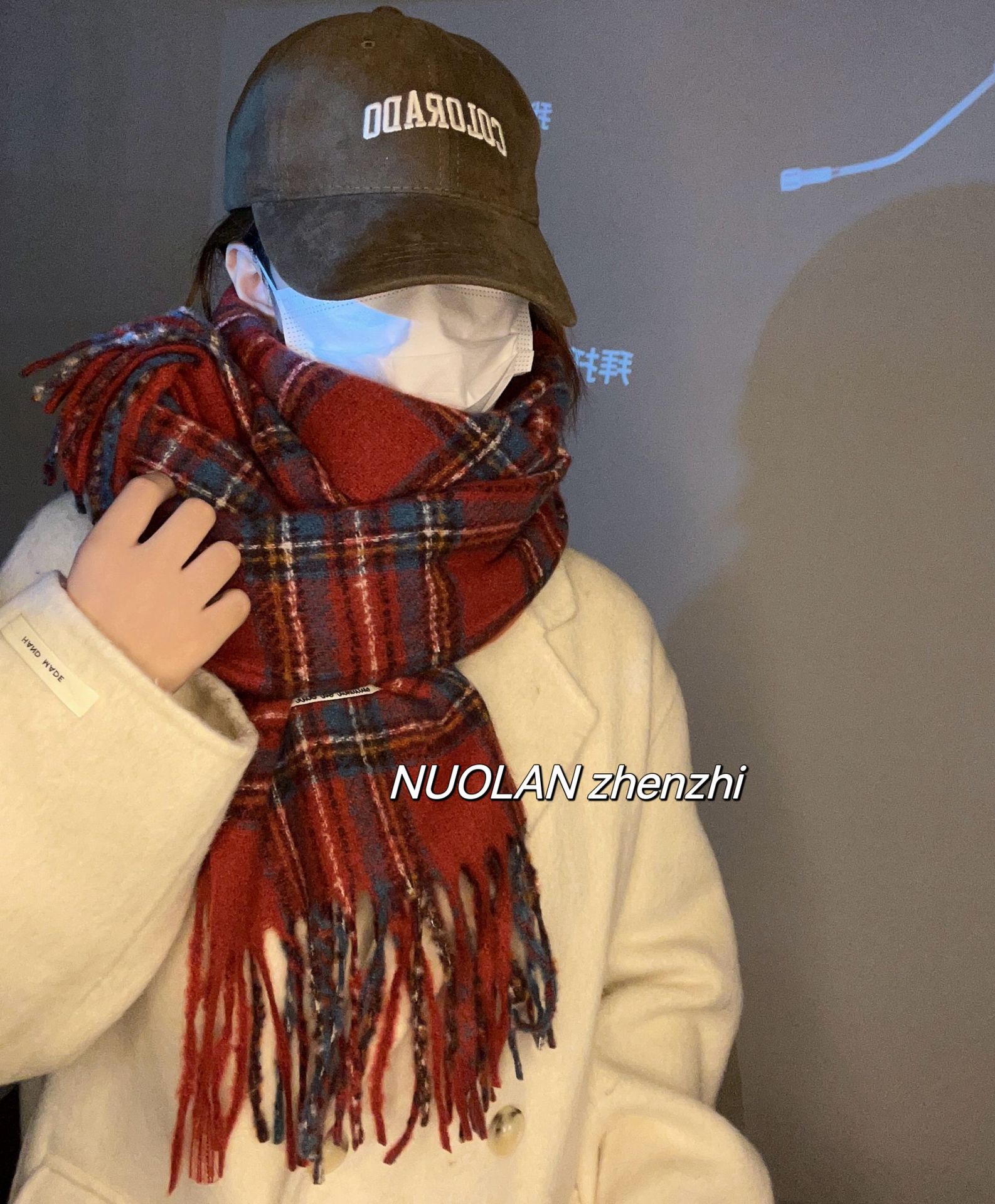 크리스마스 블랙 핑크 스카프 ~ 신년 레드 인 틈새 스카프 겨울 한국 조커 커플 남성 조커 학생 스카프스토어 가기