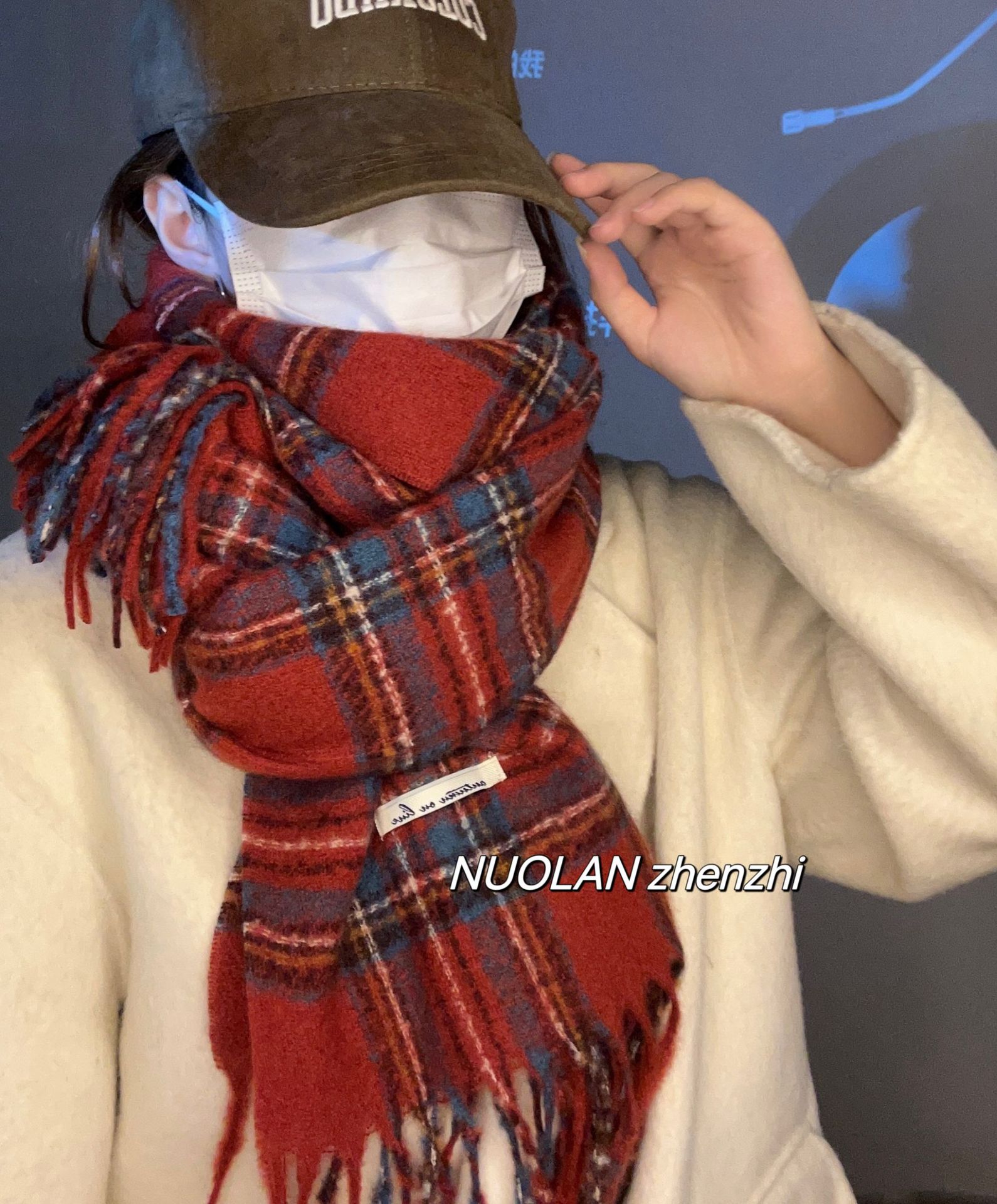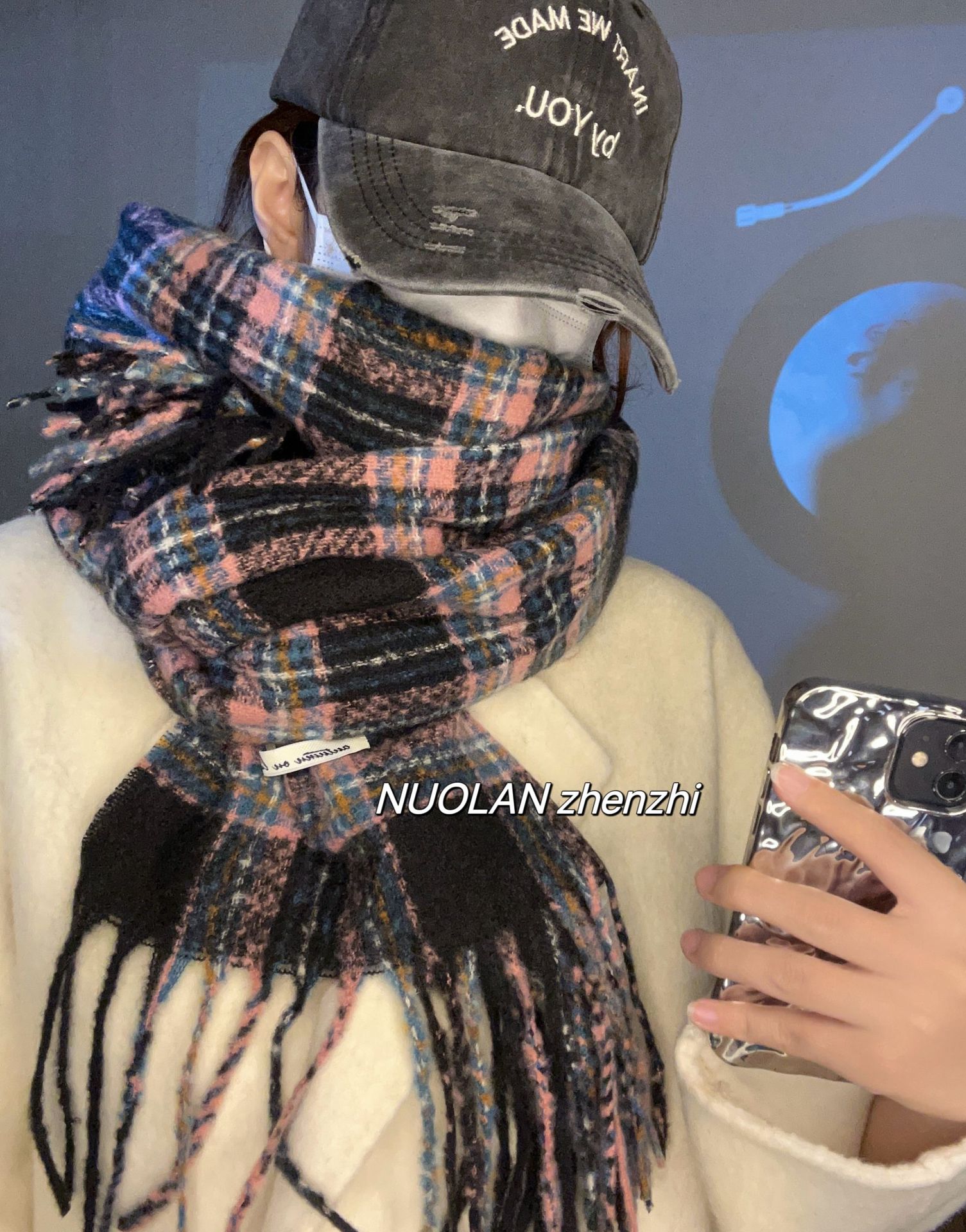 크리스마스 블랙 핑크 스카프 ~ 신년 레드 인 틈새 스카프 겨울 한국 조커 커플 남성 조커 학생 스카프