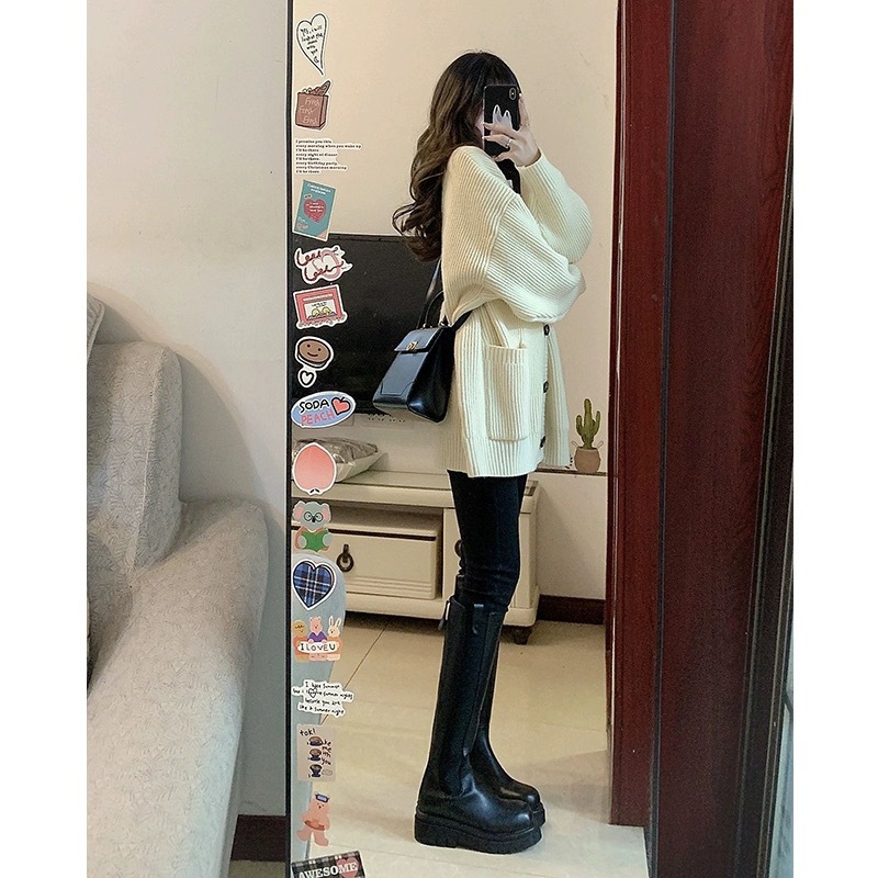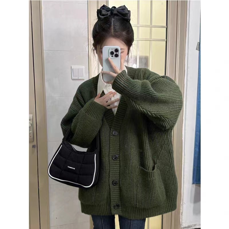 대외 무역 고급 센스 그레이 게으른 스타일 니트 스웨터 재킷 카디건 여성의 새로운 봄 및 가을 중간 길이 최고 트렌디스토어 가기