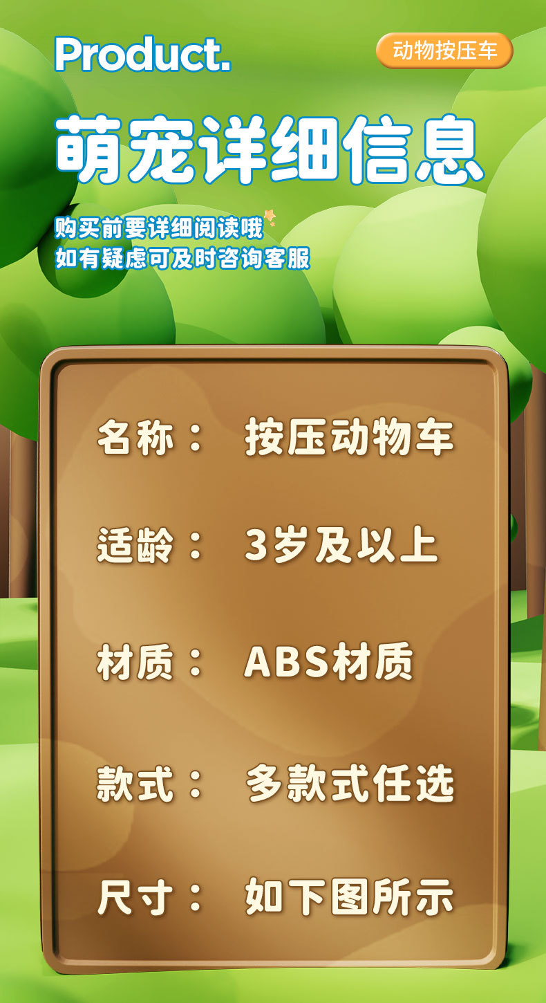 어린이 교육 재미 관성 장난감 자동차 프레스 만화 귀여운 애완 동물 모양 소년과 소녀 선물 유치원 장난감스토어 가기