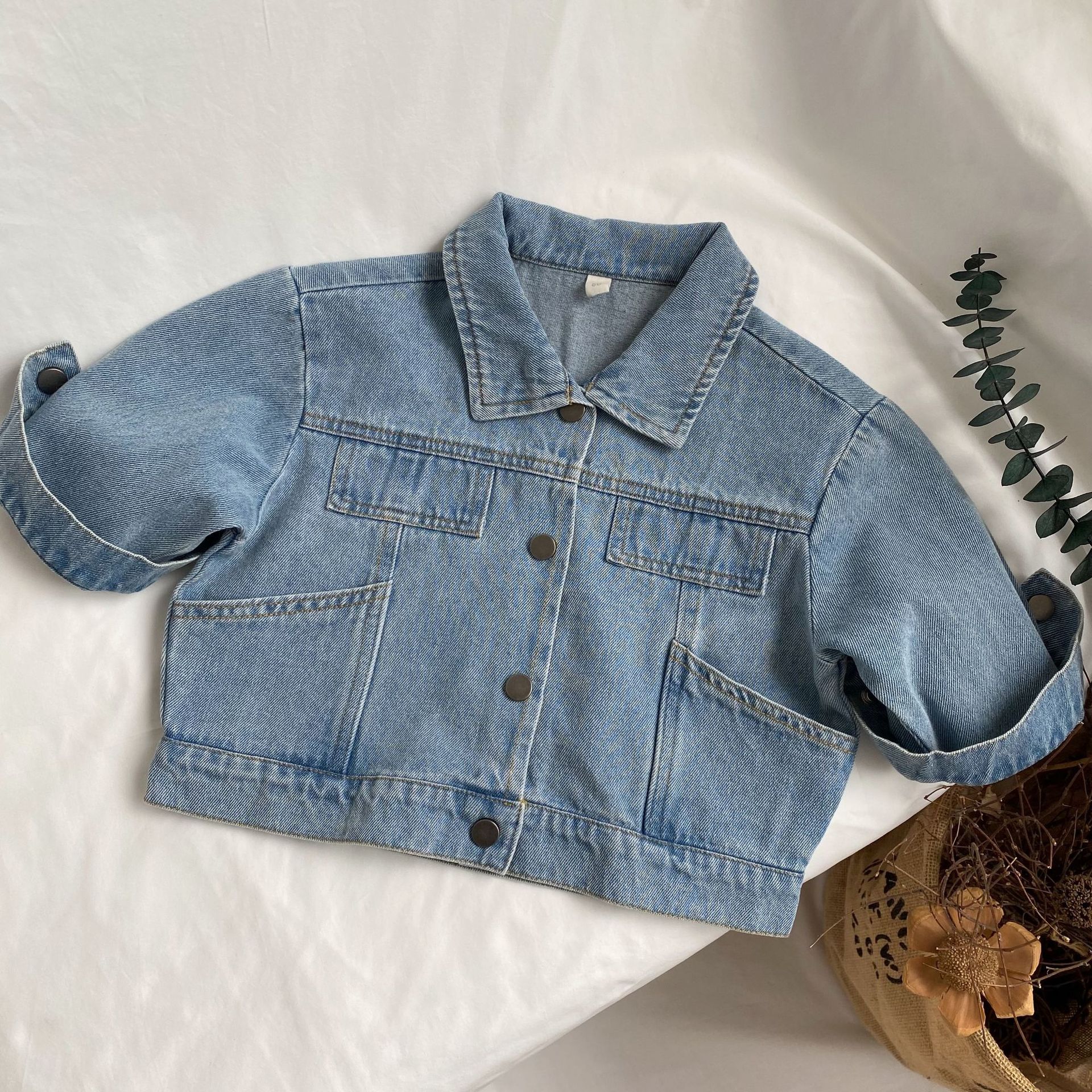GL-키즈 한국 가을 새 어린이 편지 인쇄 데님 코트 느슨한 아기 소년 소녀를위한 올매치 탑